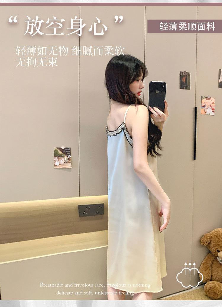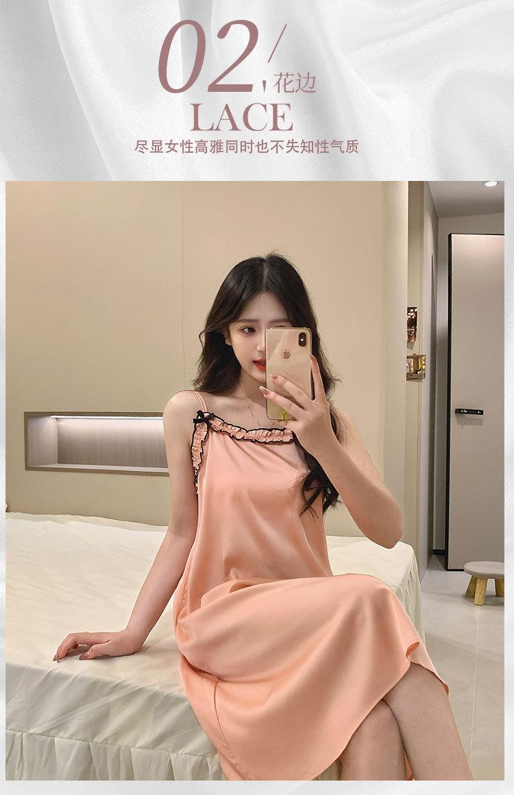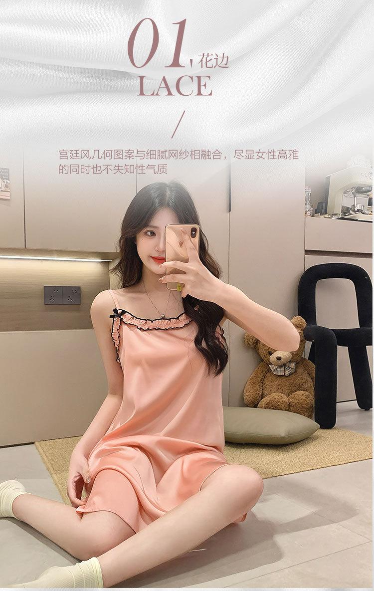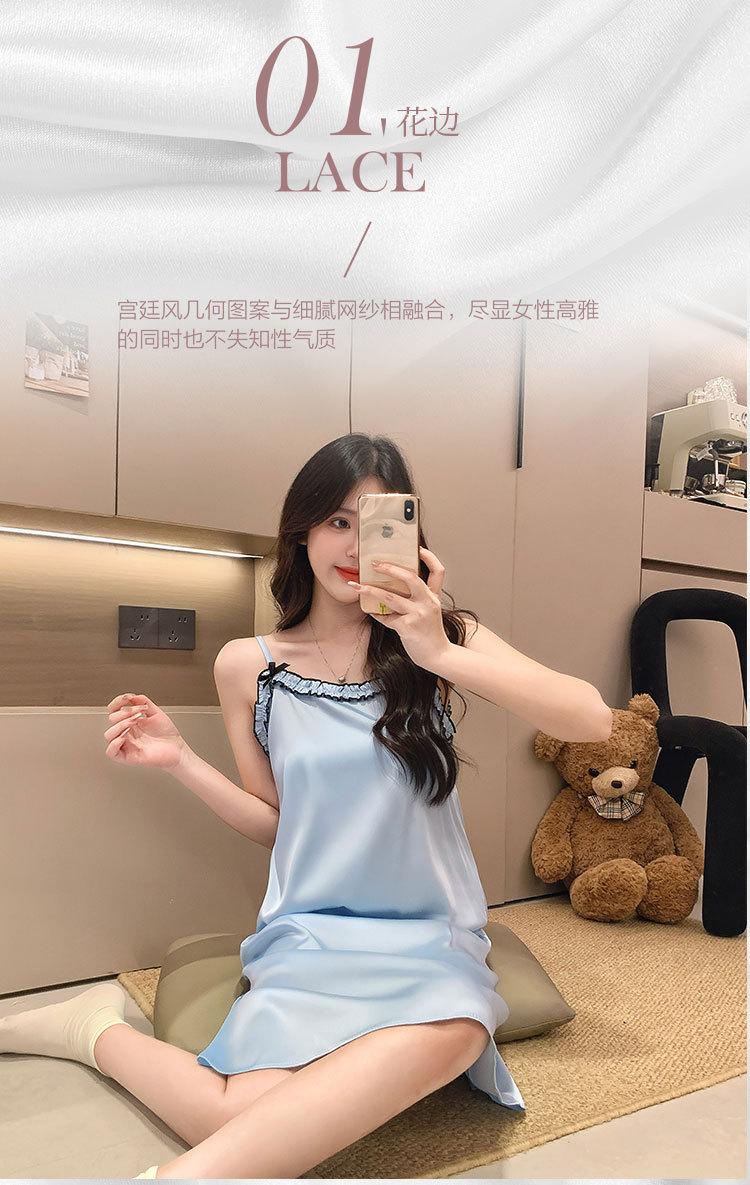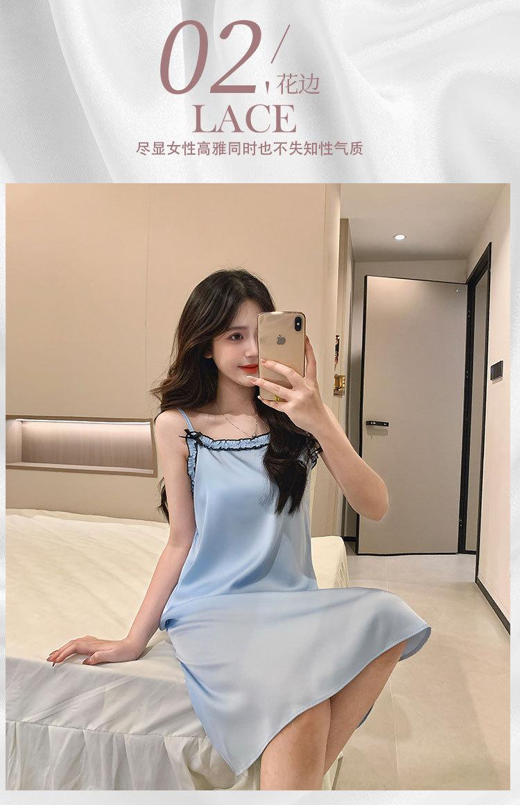 Pijama Nuevo para Mujer Verano Seda de Imitación Noble Camisón de Tirantes Delgado Dulce Vestido de Pijama Ropa para el Hogar