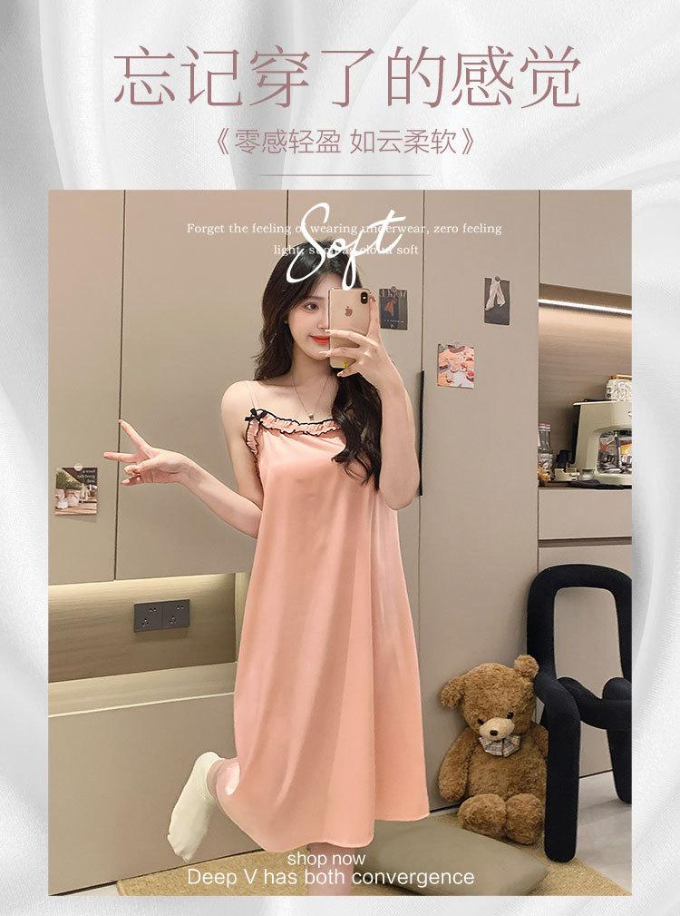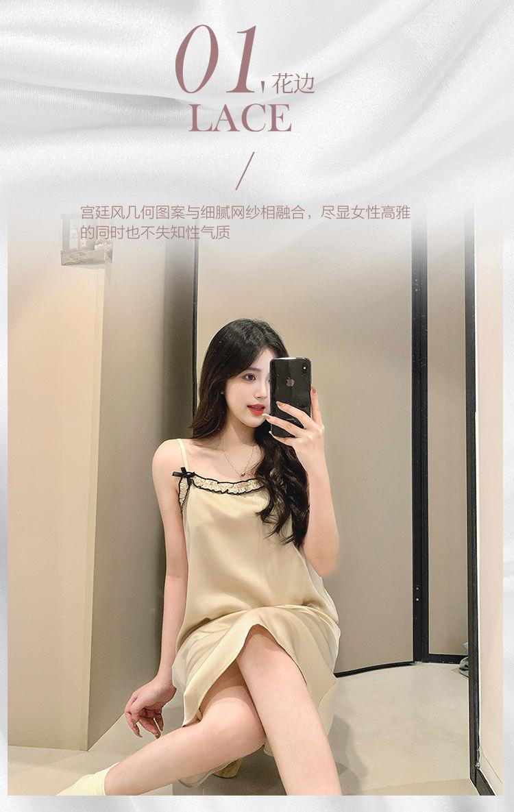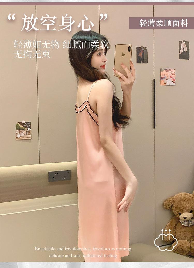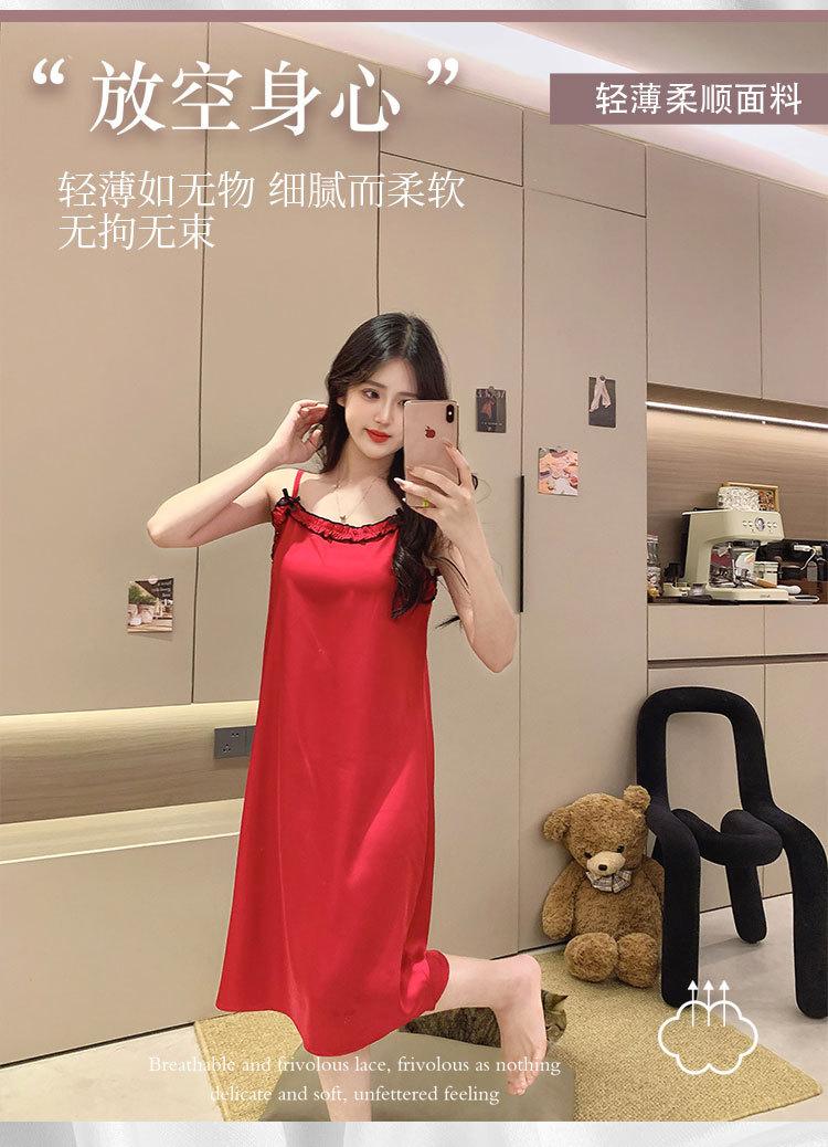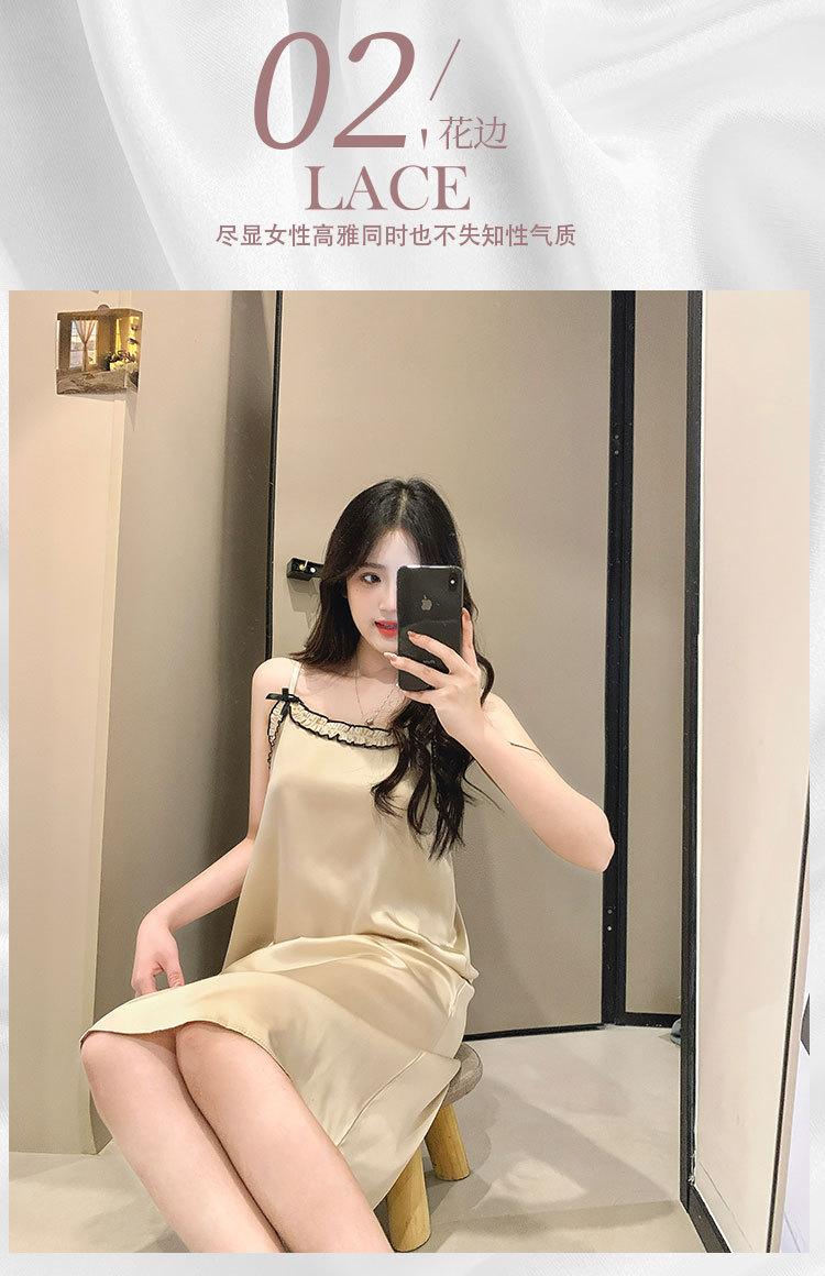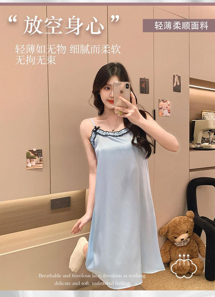 Pijama Nuevo para Mujer Verano Seda de Imitación Noble Camisón de Tirantes Delgado Dulce Vestido de Pijama Ropa para el Hogar