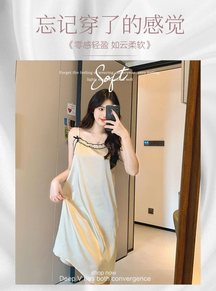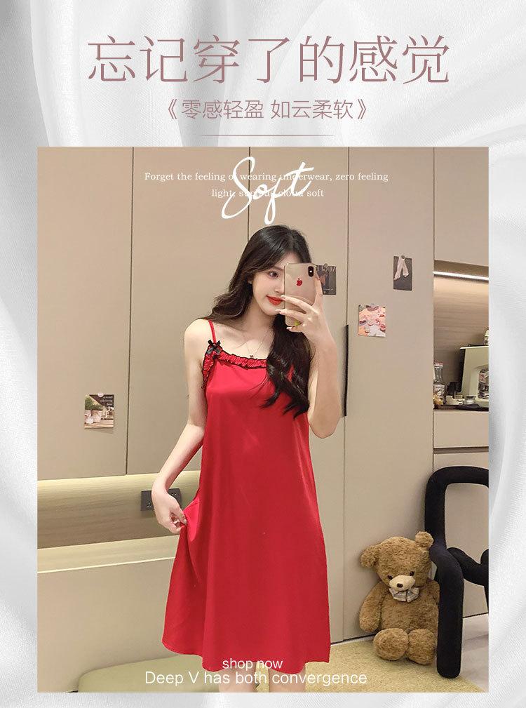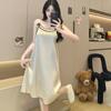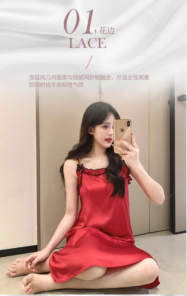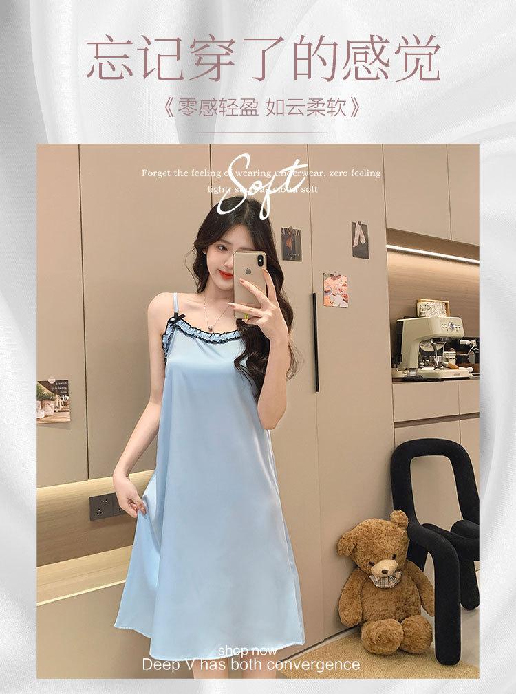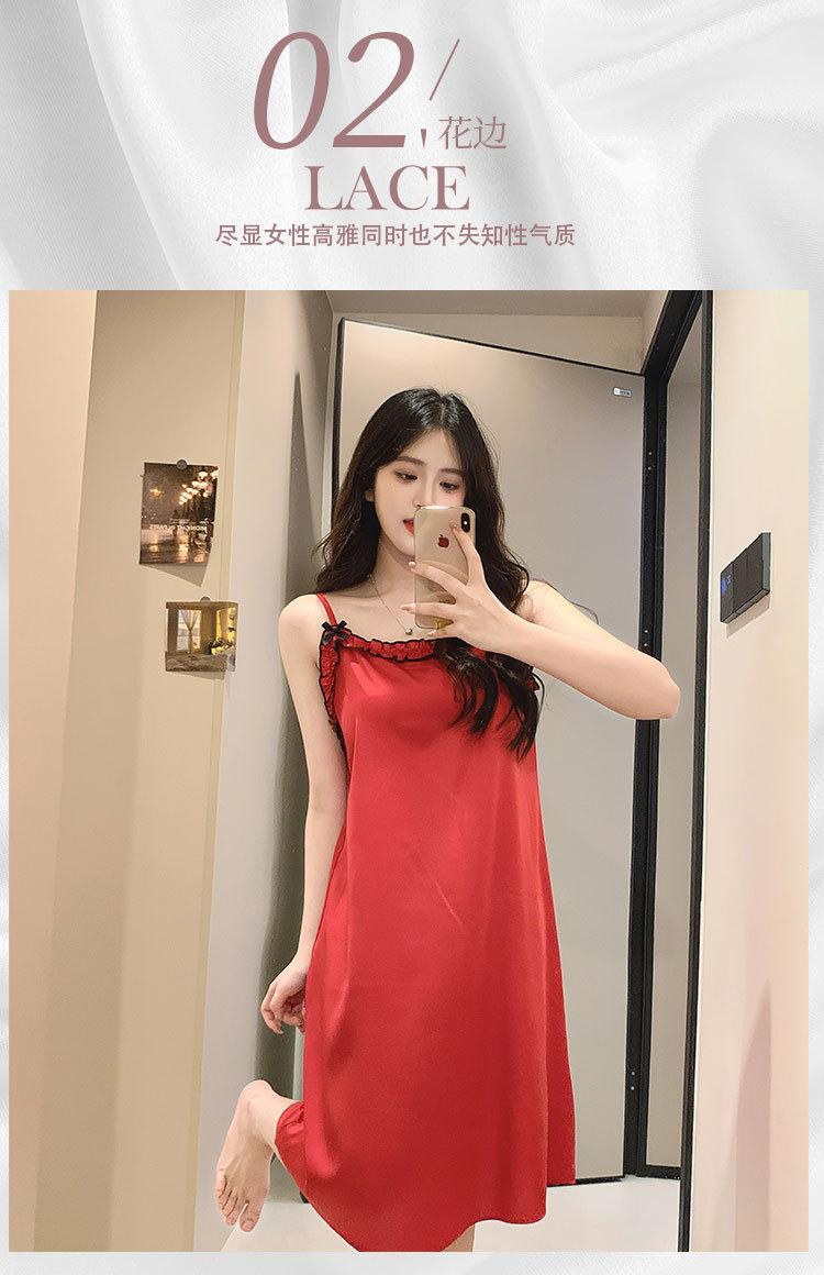 Pijama Nuevo para Mujer Verano Seda de Imitación Noble Camisón de Tirantes Delgado Dulce Vestido de Pijama Ropa para el Hogar