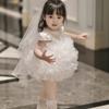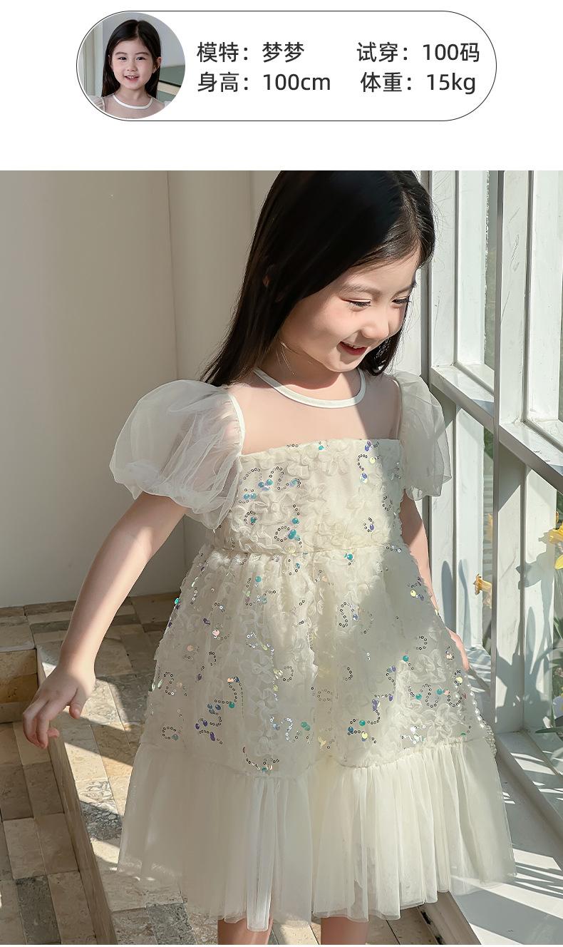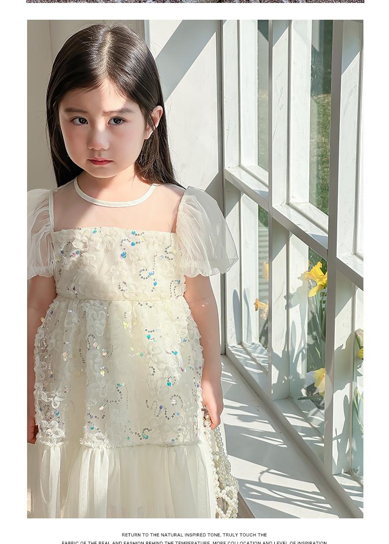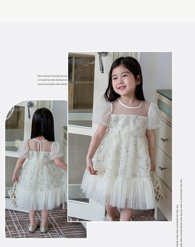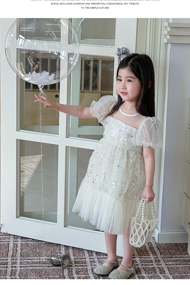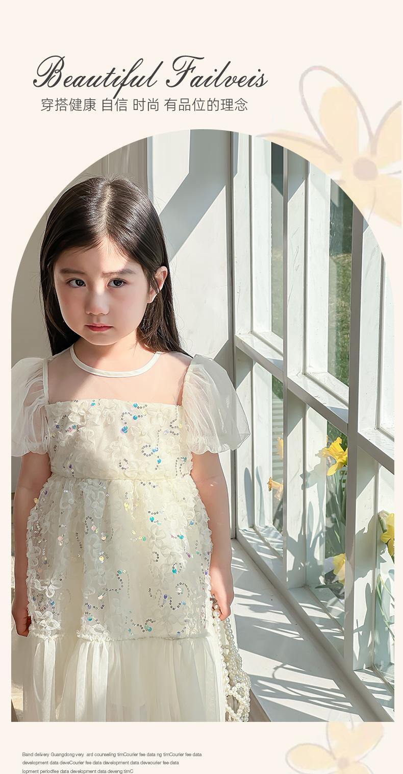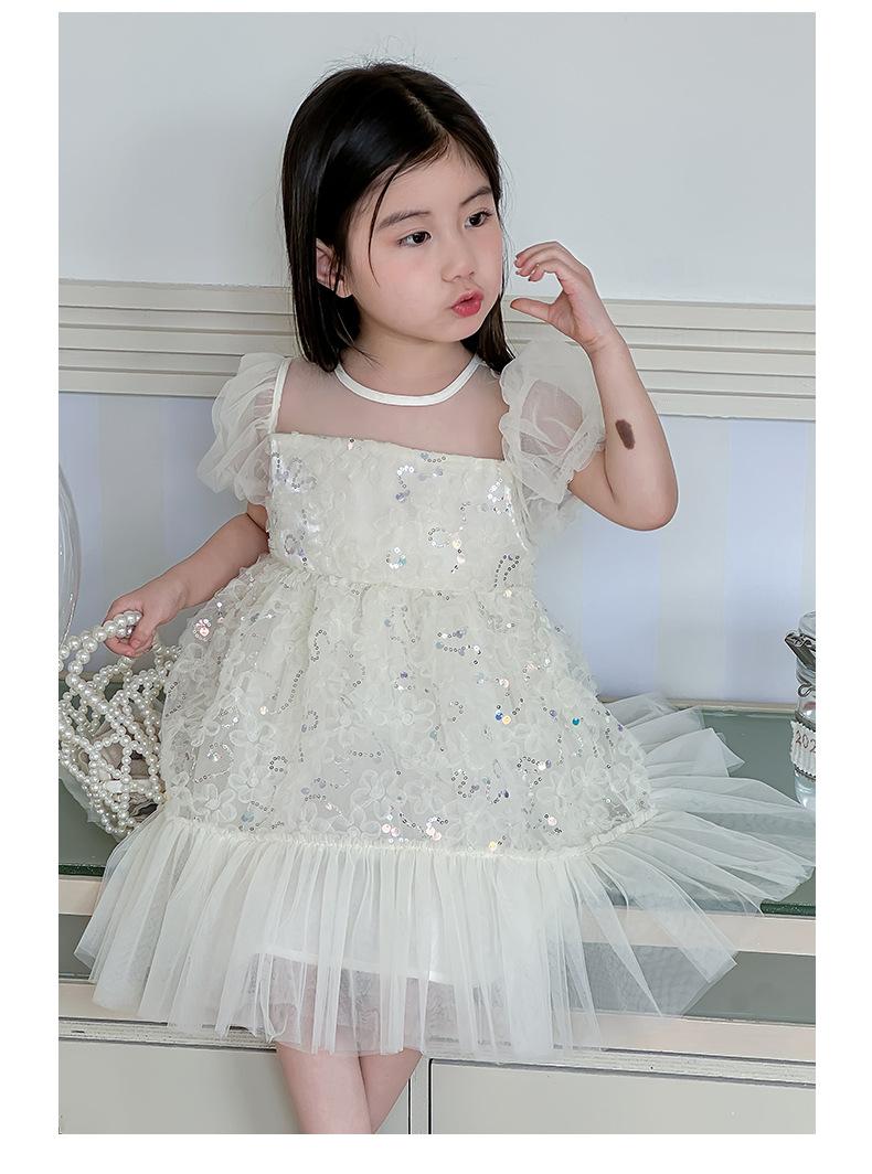 Vestido de Princesa para Niñas Verano Nuevo Vestido de Bebé Vestido de Cumpleaños Encaje Bordado Flor Falda de Malla para Niños Pequeños y Medianos