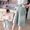 Shorts de mezclilla versátiles estilo occidental para niños y niñas, verano 2025, pantalones casuales para bebé, estilo coreano, pantalones capri para niños, modernos