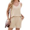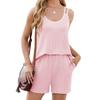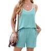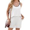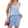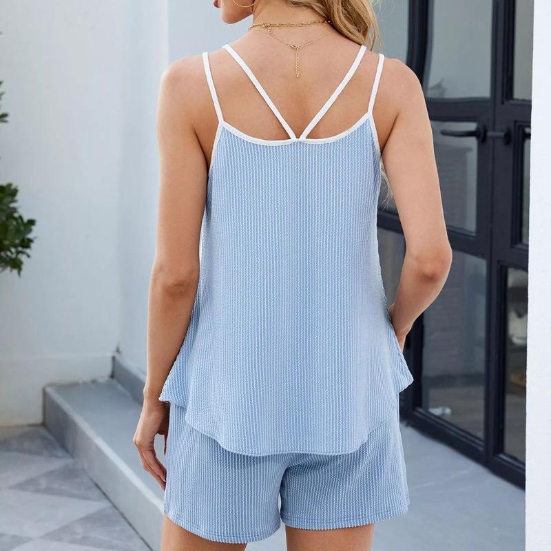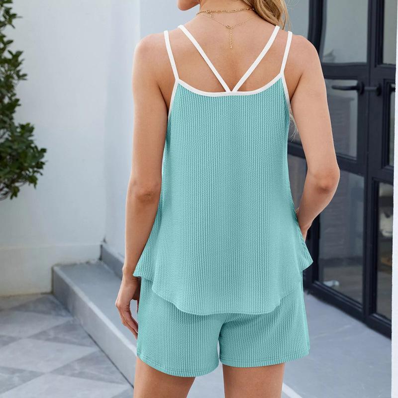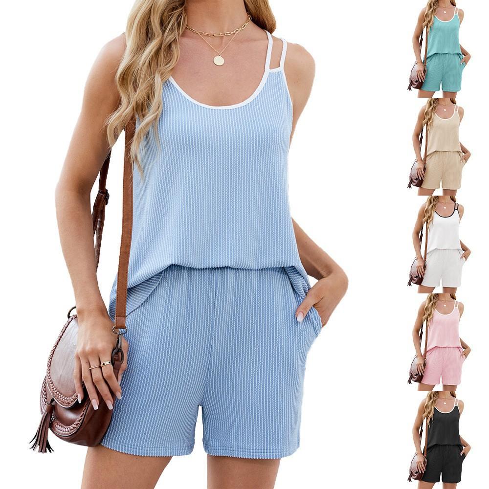 Comercio Exterior Amazon Ropa de Mujer Transfronteriza Europea y Americana Primavera y Verano Nuevo Contraste de Color Cuello Redondo Tirantes Bolsillo Shorts Traje Casual Mujer