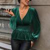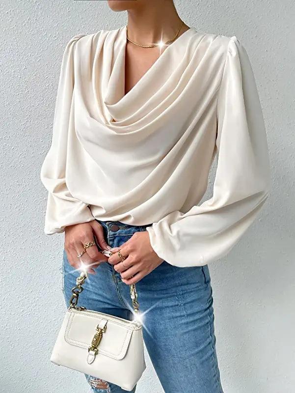 Comercio exterior transfronterizo deseo Amazon Nueva camisa de manga larga de gasa europea y americana Camiseta holgada con cuello en V drapeado Ropa de mujer