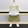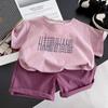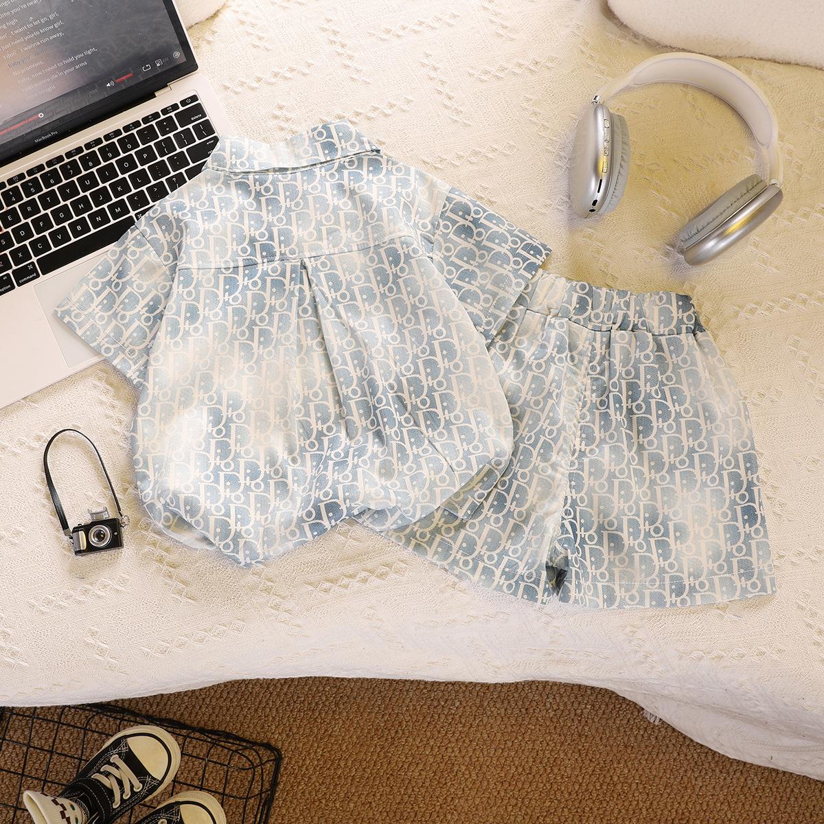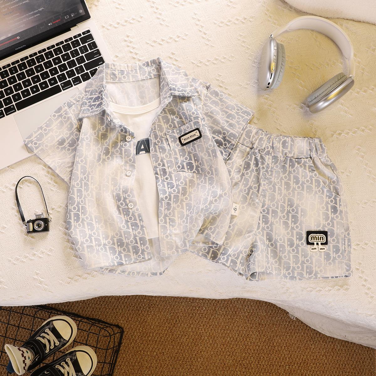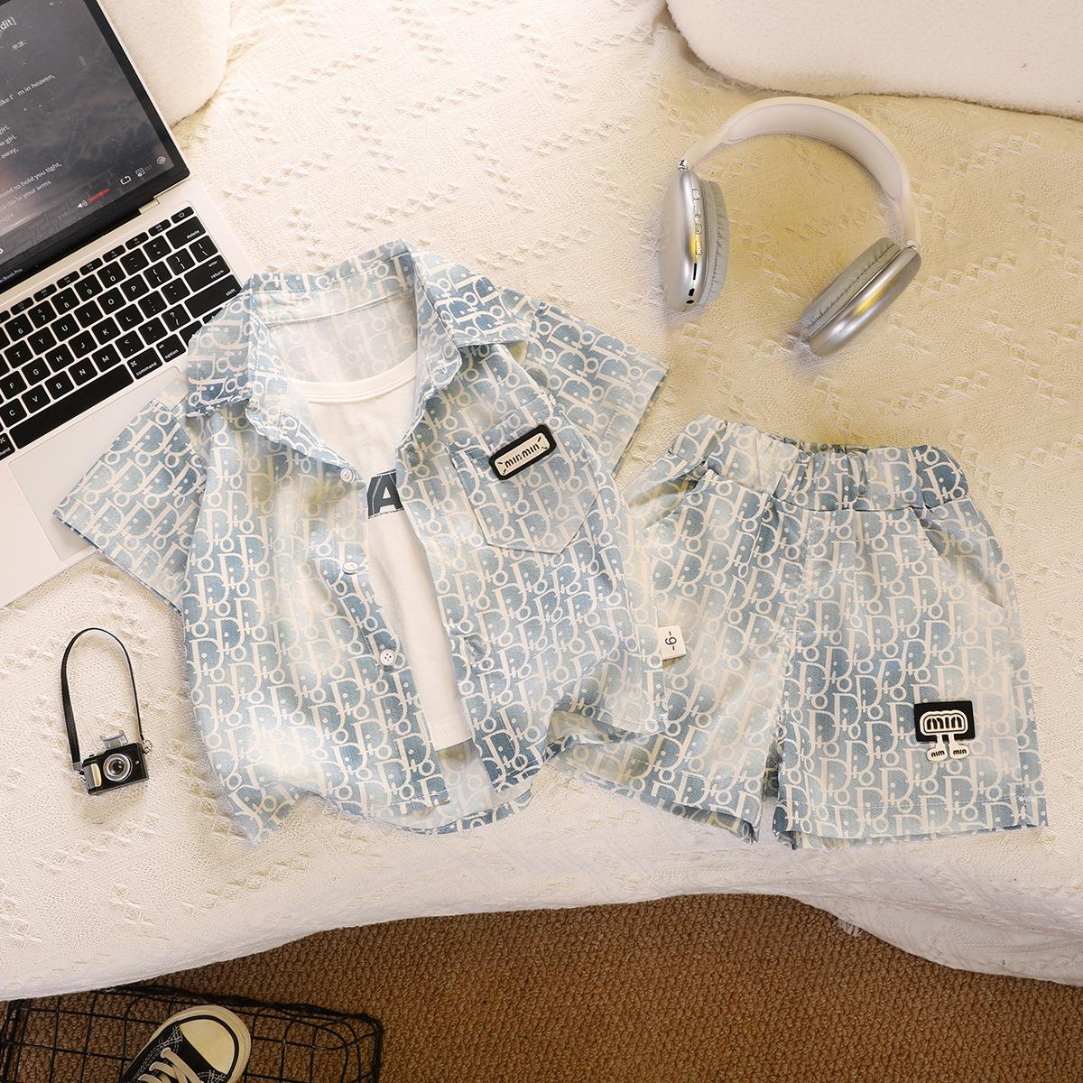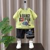 Guapo Niño Pequeño Camisa Delgada con Letras Estampadas Completas Ropa de Verano 2025 Nuevo Estilo de Verano Estilo Infantil Conjunto de Dos Piezas de Manga Corta