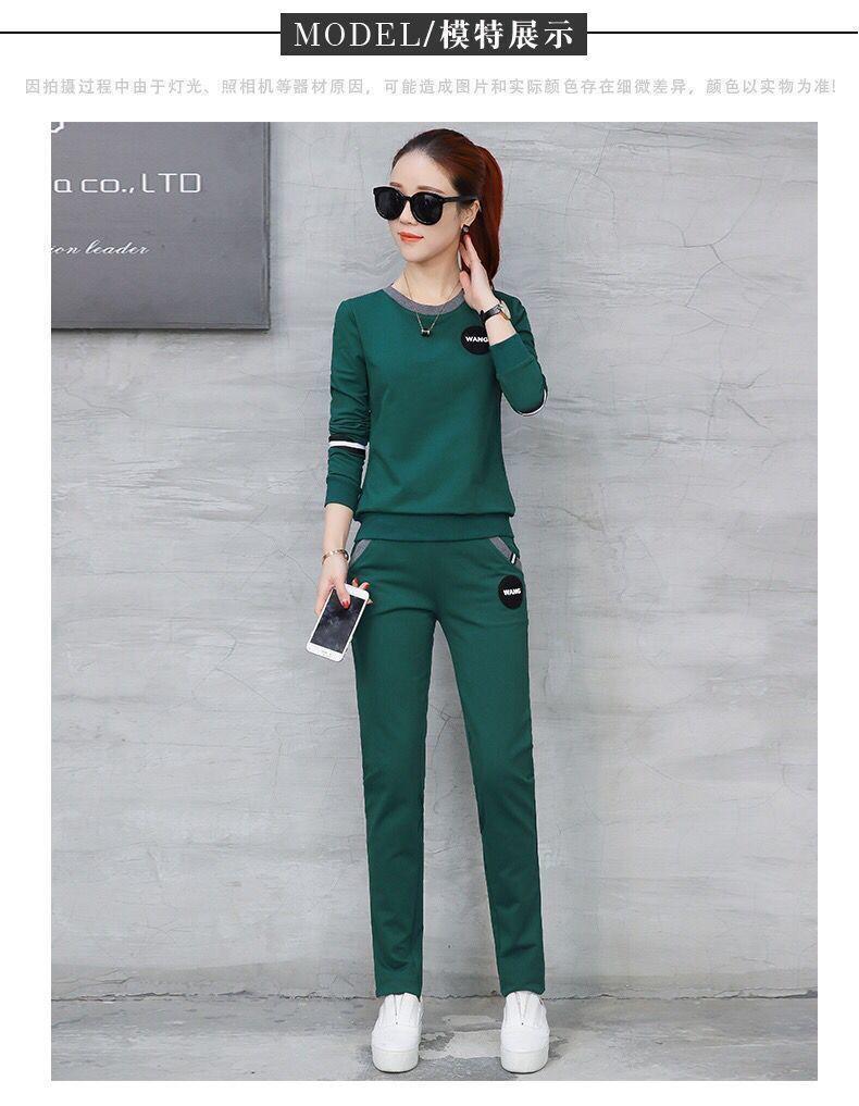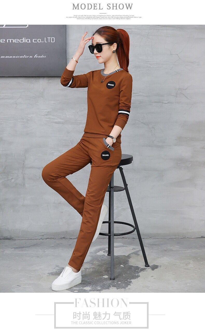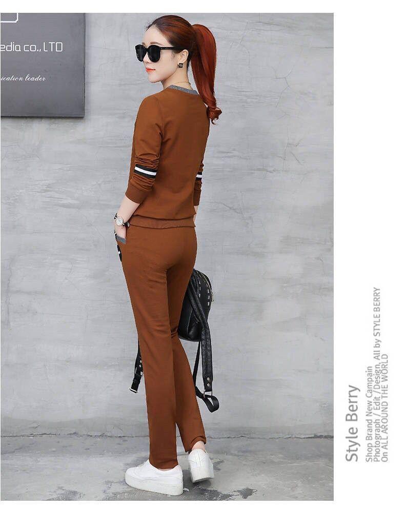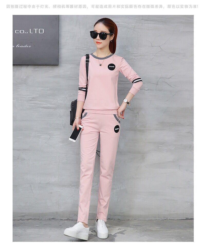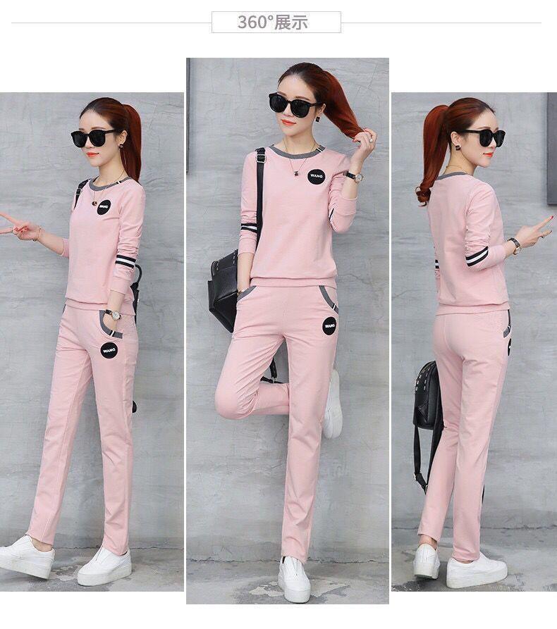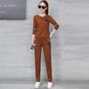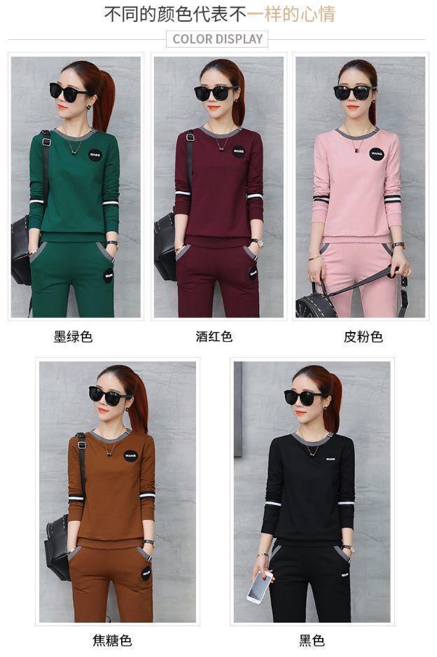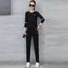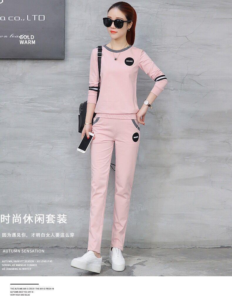 Traje deportivo de estilo coreano para mujer, primavera y otoño, nueva moda, informal, cuello redondo, manga larga, pantalones ajustados, dos piezas, venta al por mayor