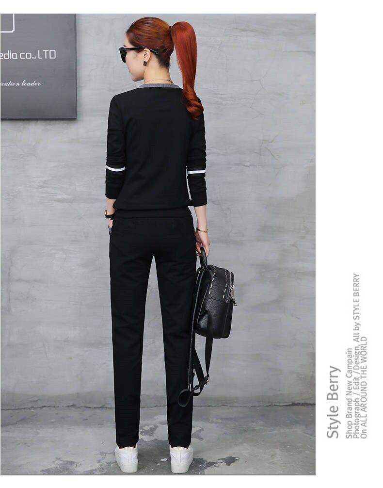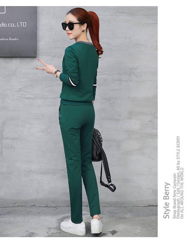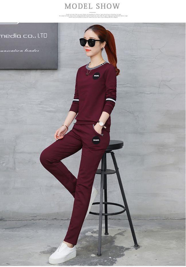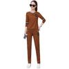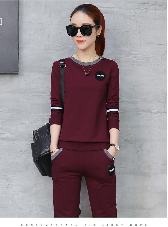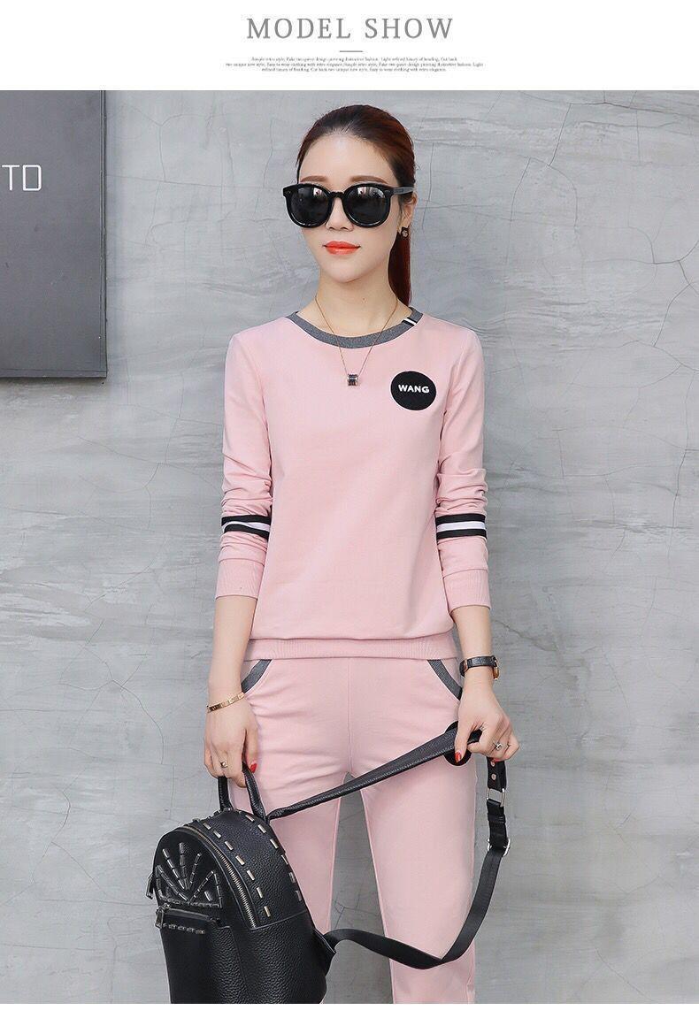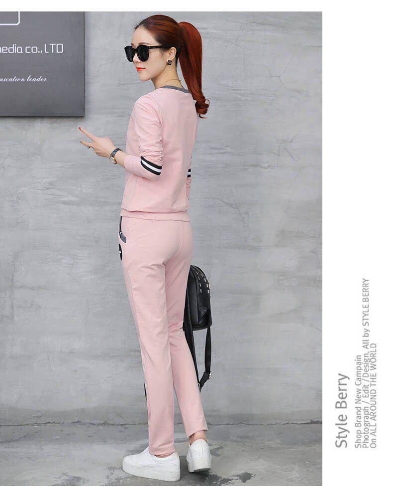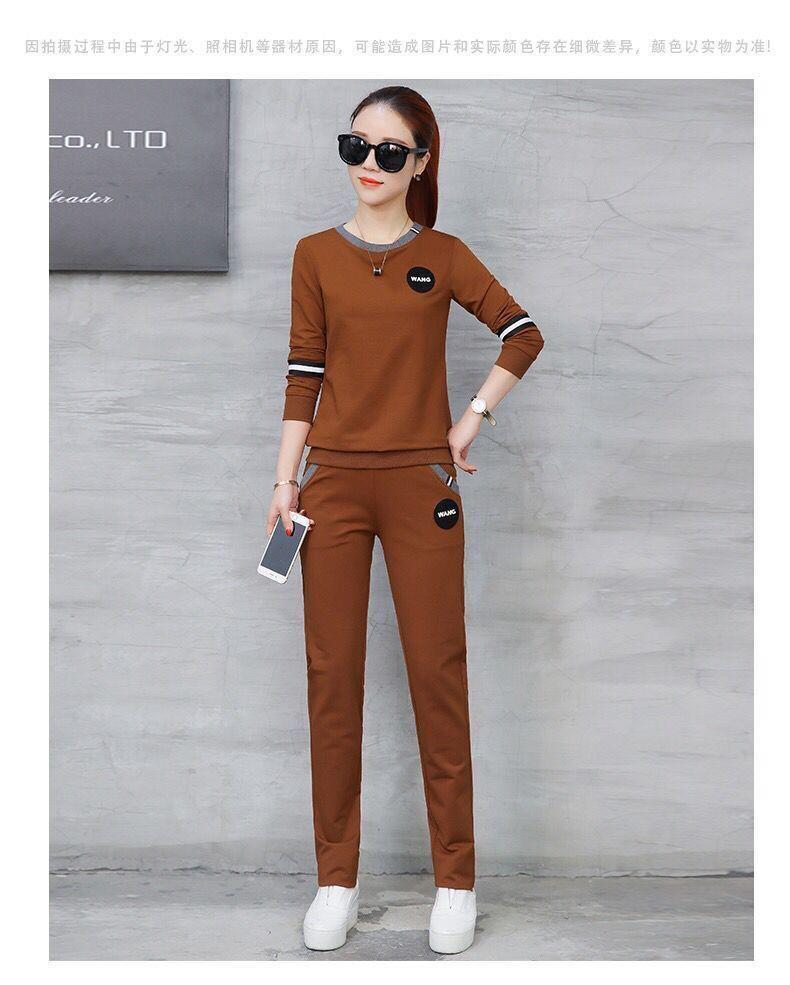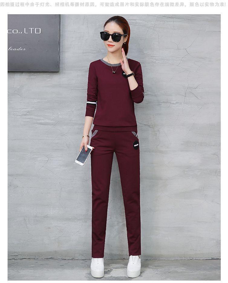 Traje deportivo de estilo coreano para mujer, primavera y otoño, nueva moda, informal, cuello redondo, manga larga, pantalones ajustados, dos piezas, venta al por mayor