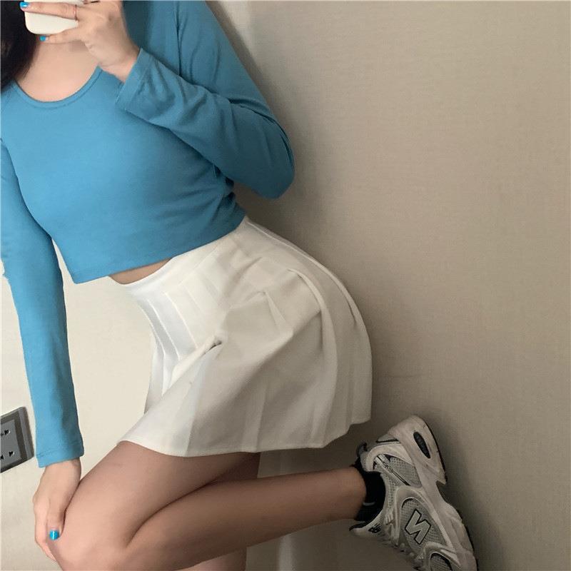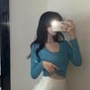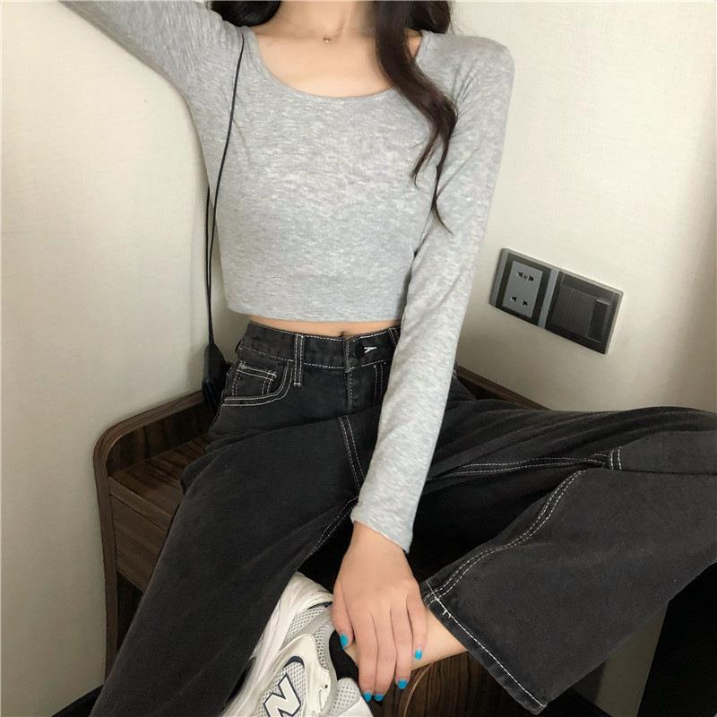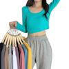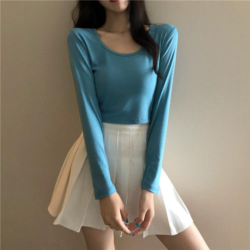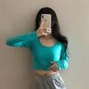 5 Colores 2025 Otoño Nuevo Slim Cuello Redondo Manga Corta Color Puro Camiseta de Manga Larga Tops de Estudiante Femenino Camiseta Básica para Mujer