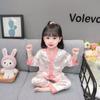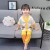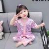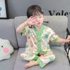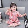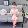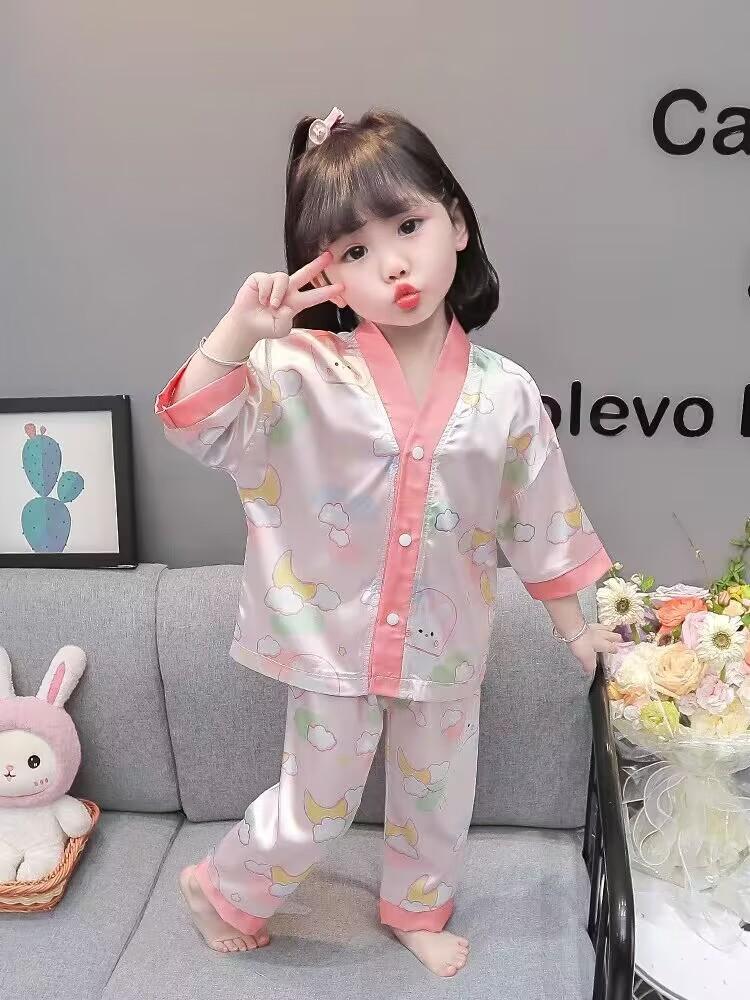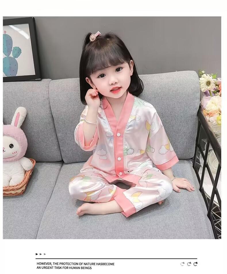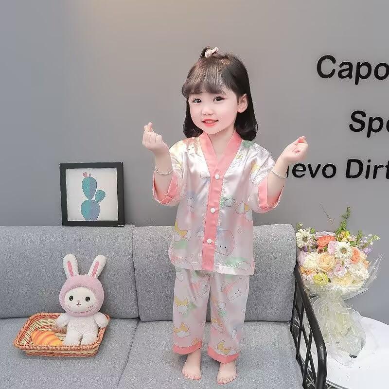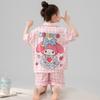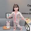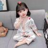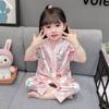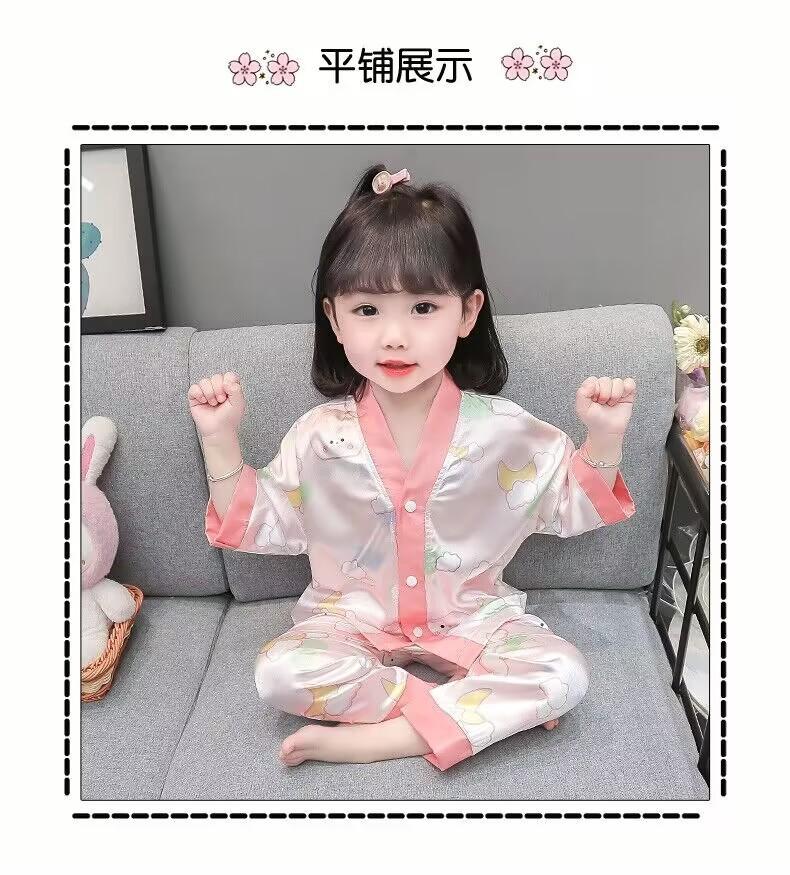 Pijama de Seda de Hielo de Verano para Niñas, Super Lindo, de Manga Corta, Pantalón, Cárdigan, Ropa para el Hogar con Aire Acondicionado, Traje
