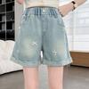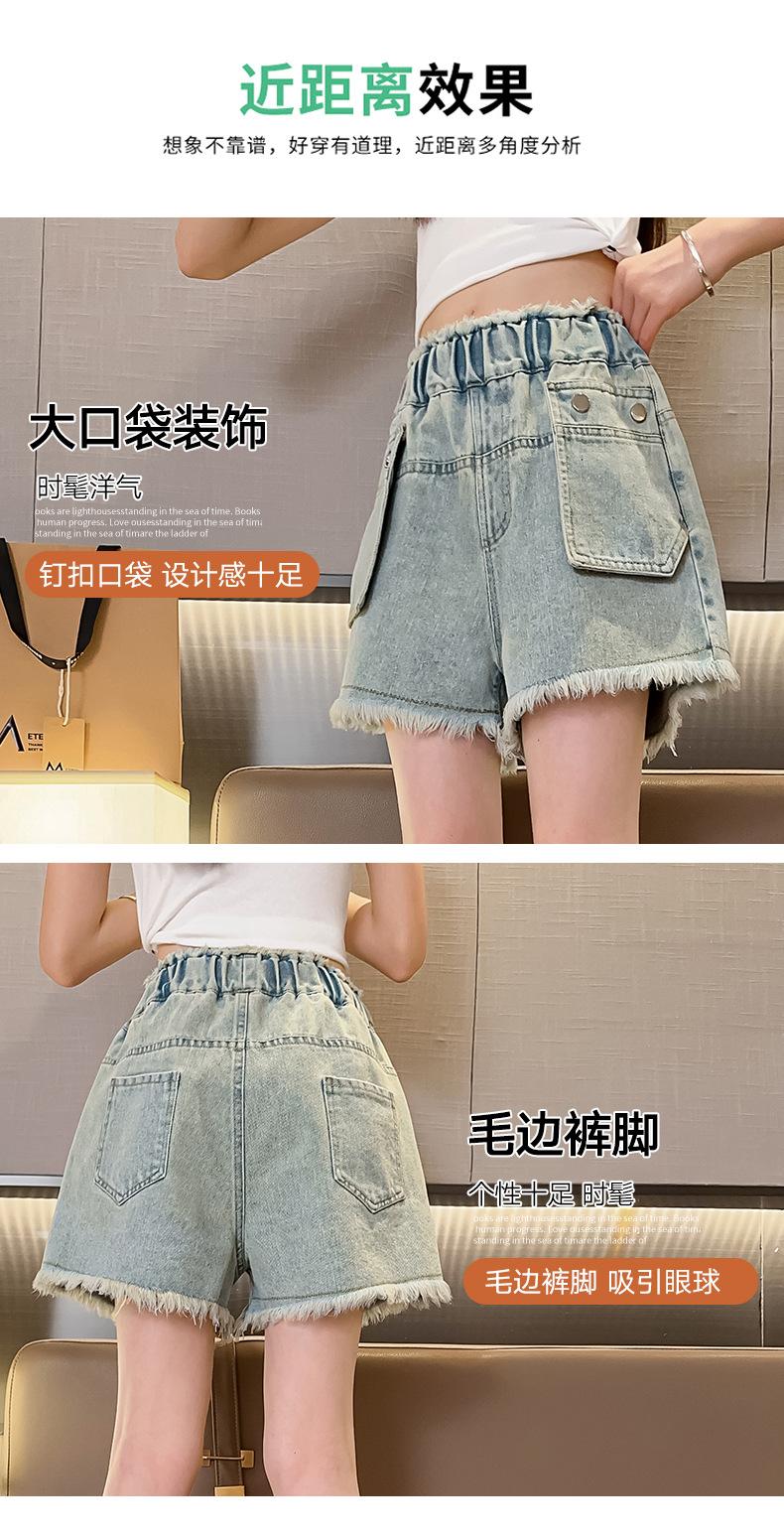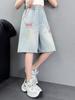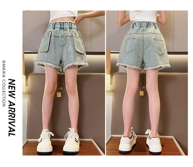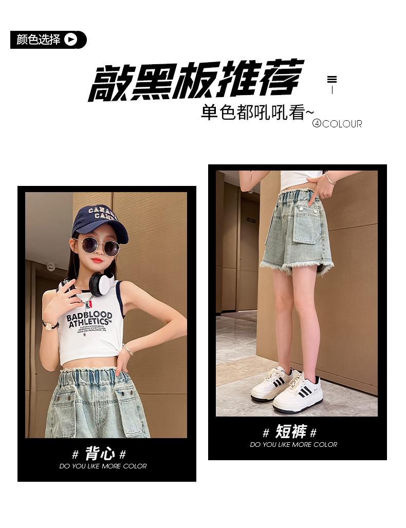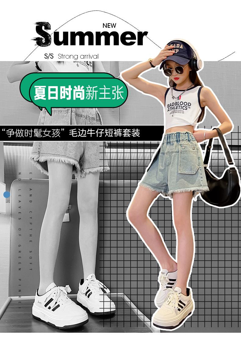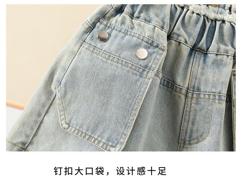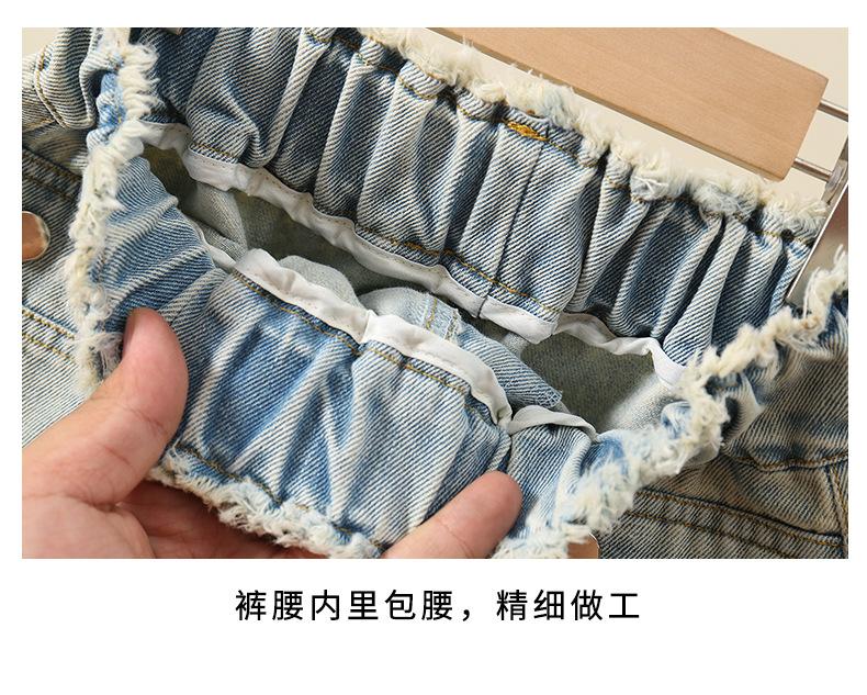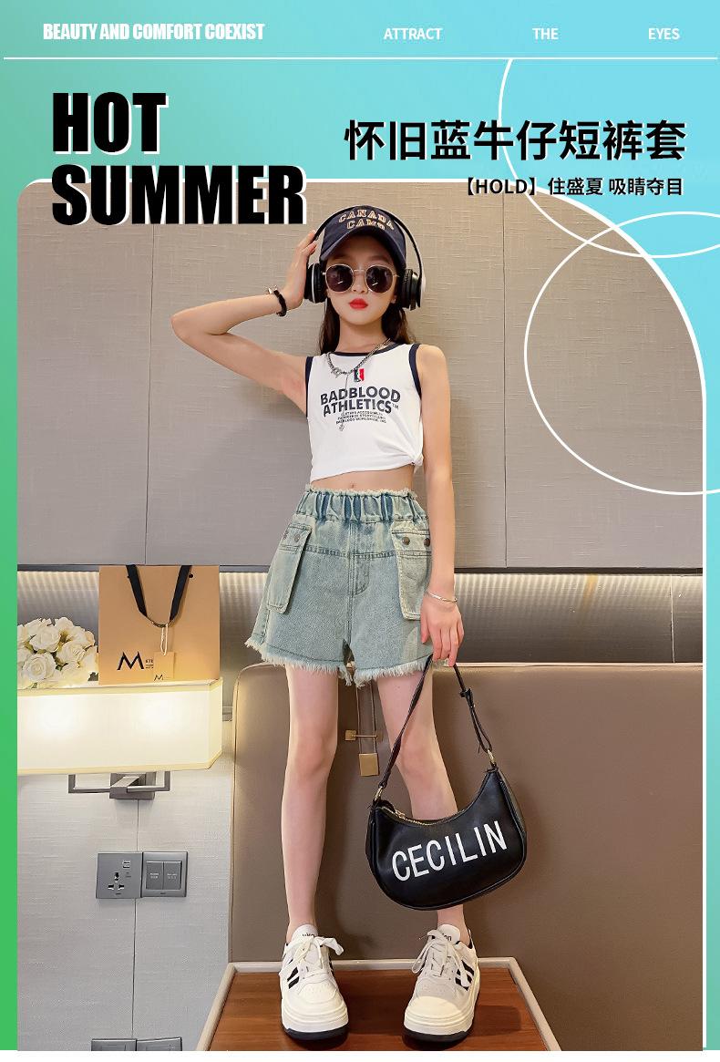 Shorts de mezclilla para niñas Verano 2025 Nuevo conjunto de pantalones delgados para niños para niñas mayores, shorts hasta la rodilla para uso veraniego