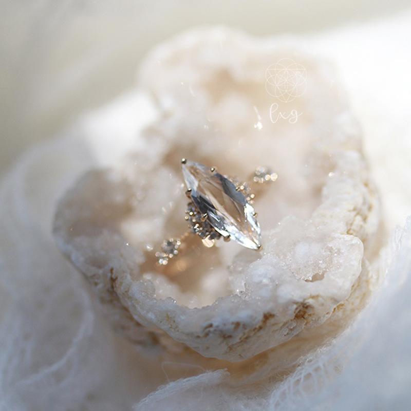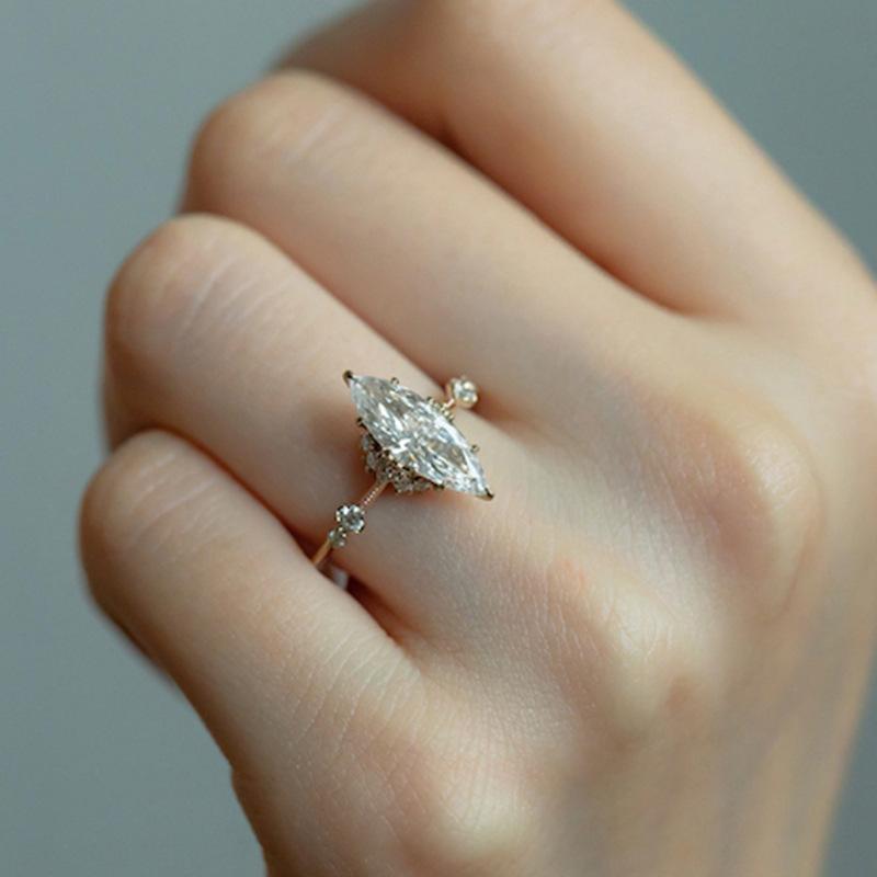 Xiangxu Taiyin "Valle de Verano", anillo francés retro de diamantes con partículas grandes, transparente y hermoso, venta directa de fábrica.