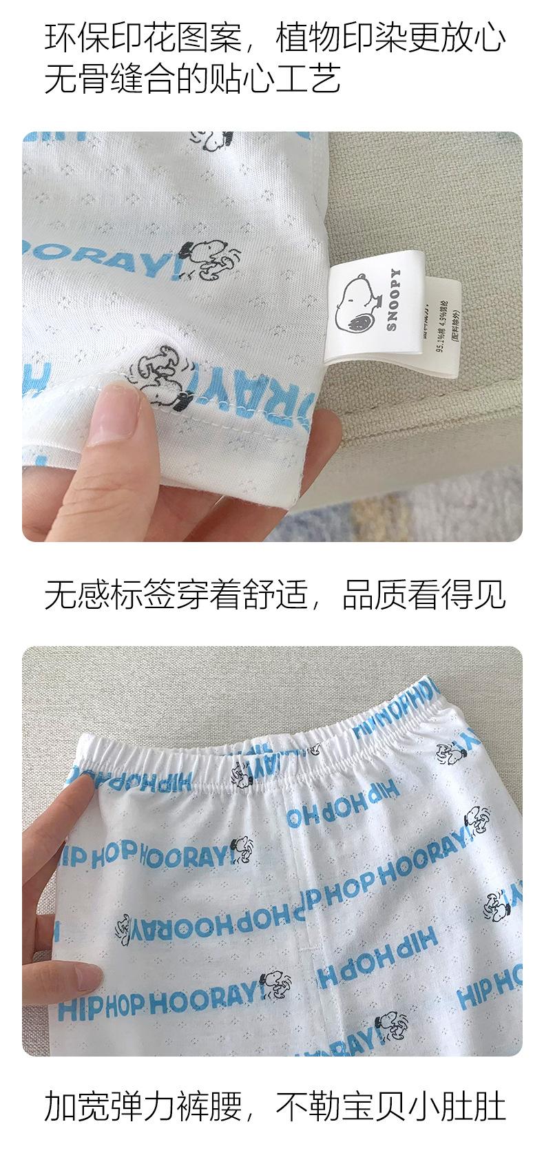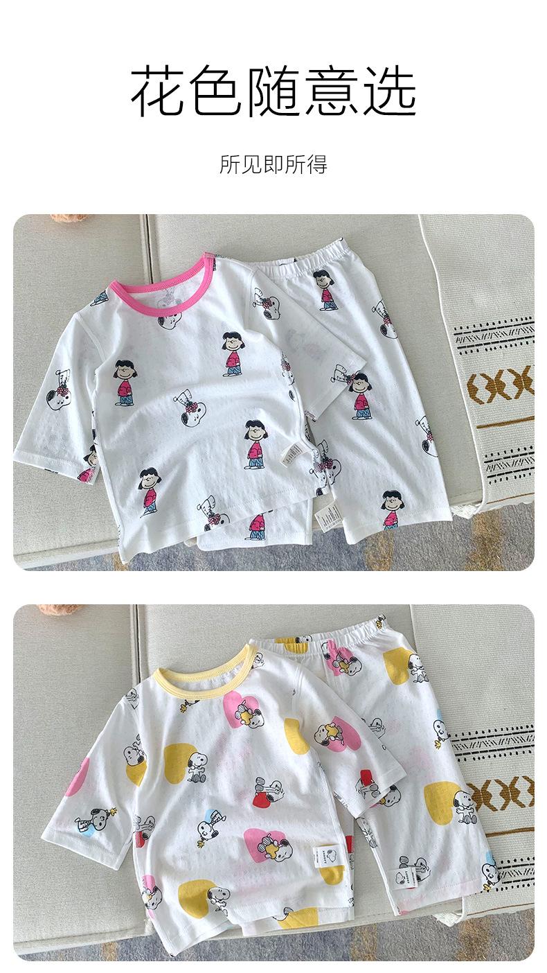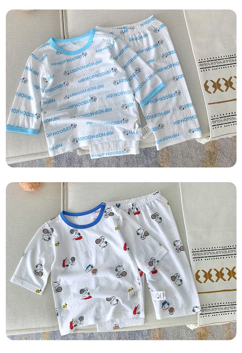 Ropa infantil de Snoopy Ropa de verano para niños con aire acondicionado Ropa para el hogar Pijamas de algodón 95 para niños Clase A Conjunto de pantalones de siete mangas finos