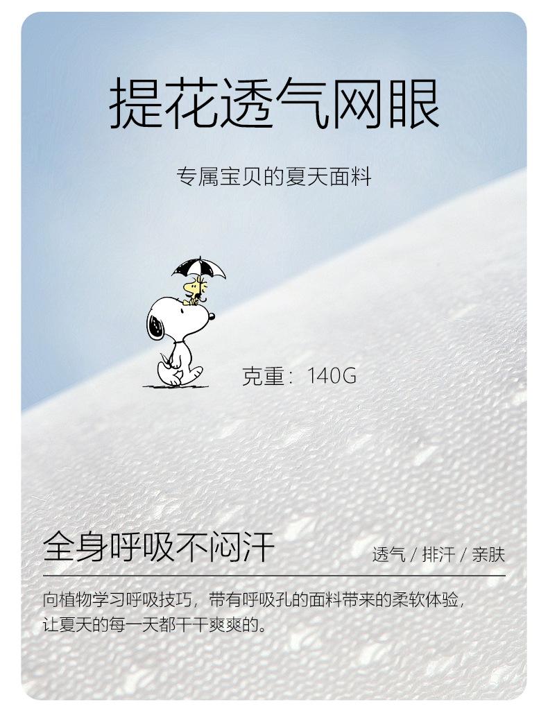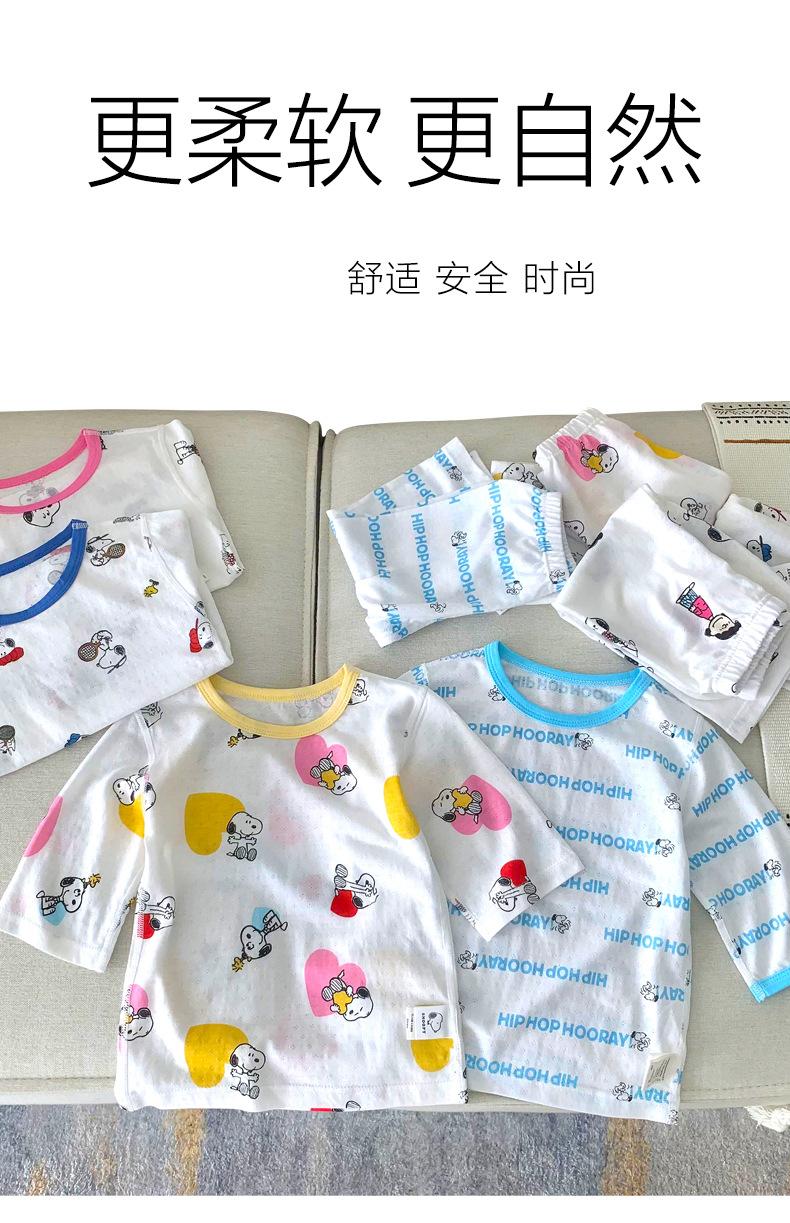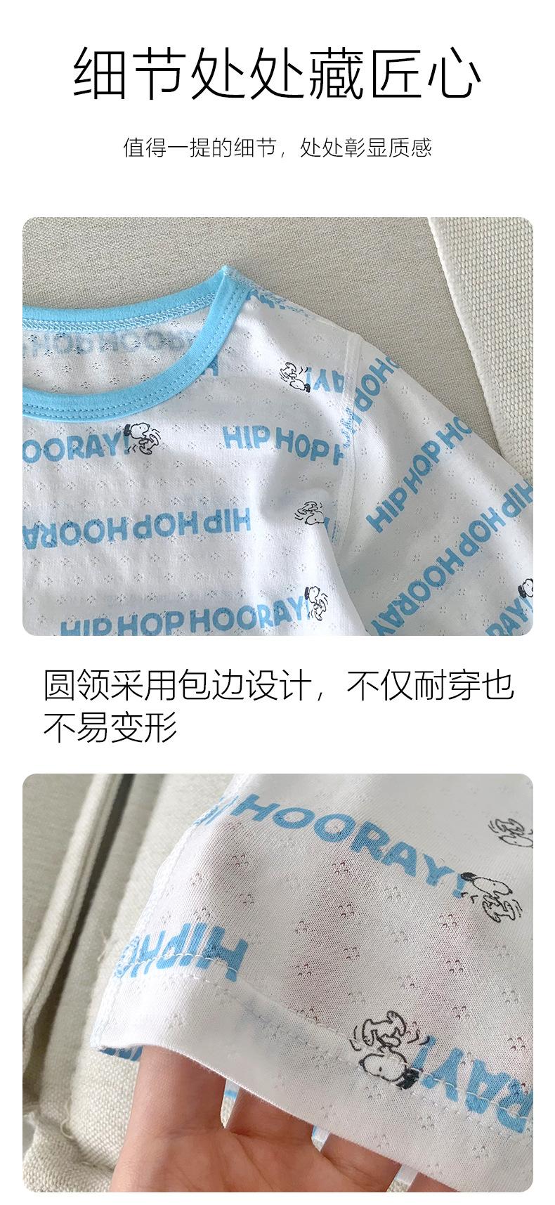 Ropa infantil de Snoopy Ropa de verano para niños con aire acondicionado Ropa para el hogar Pijamas de algodón 95 para niños Clase A Conjunto de pantalones de siete mangas finos