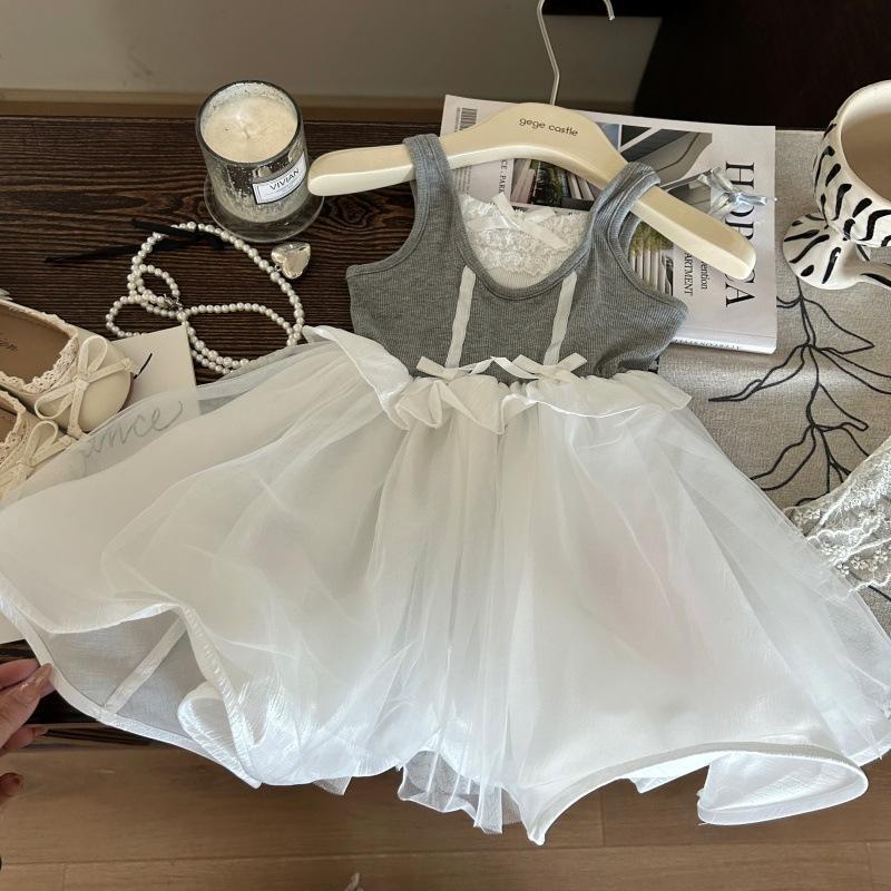 Versión coreana de ropa para niños 2025 nuevo verano niñas vestido de temperamento tirantes para niños vestido de princesa vestido de bebé de un año