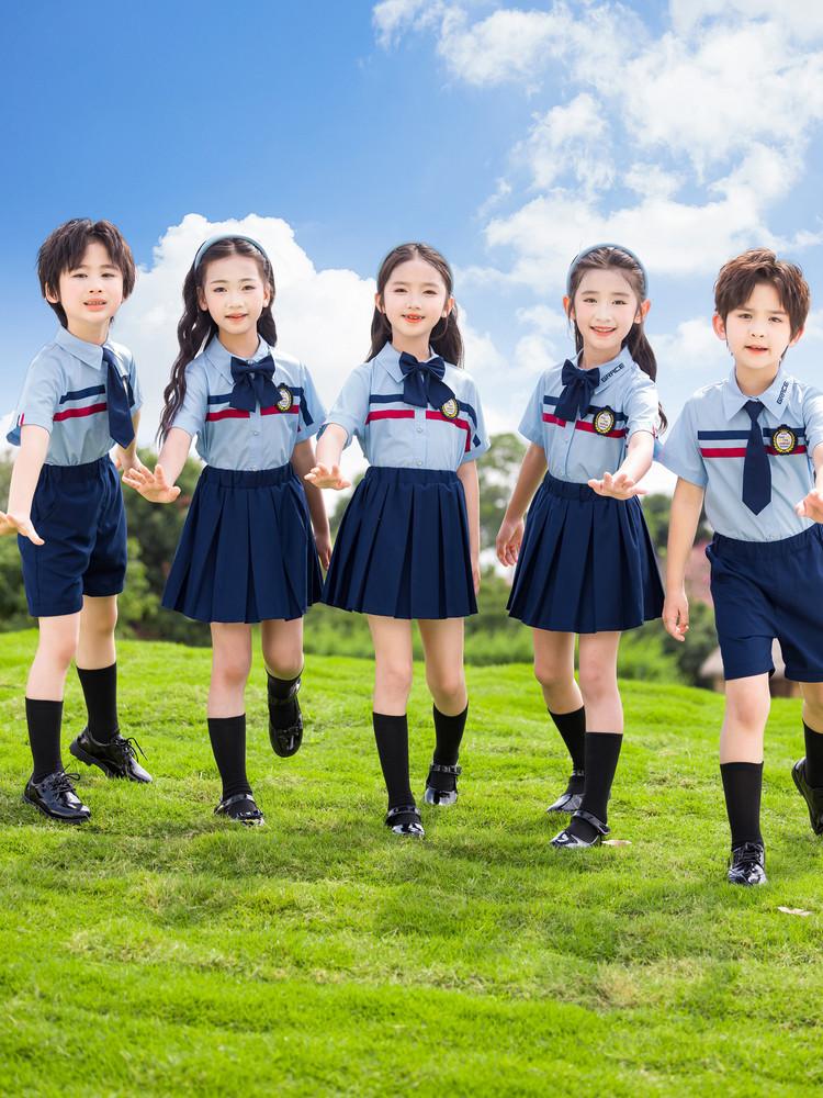 Uniformes de Jardín de Niños, Ropa de Verano, Uniformes de Primer Grado para Niños, Uniformes de Escuela Primaria de Algodón Puro, Trajes de Manga Corta para Reunión Deportiva de Verano