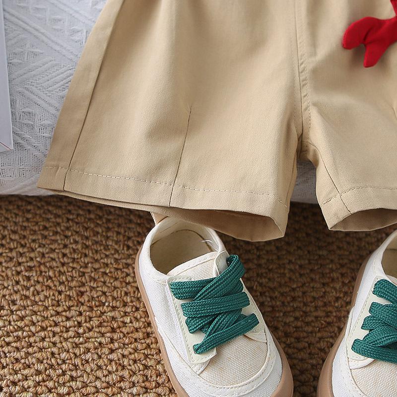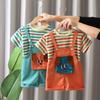 Traje de verano para niño 2025 nuevo ropa de dos piezas de manga corta con cuello redondo de dibujos animados estilo occidental para niños una generación de cabello
