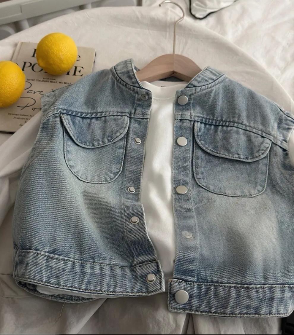Chaleco de mezclilla retro estilo coreano para niños y niñas, para usar sobre la ropa, estilo occidental infantil, nuevo de primavera y otoño, chaleco de bebé que combina con todo