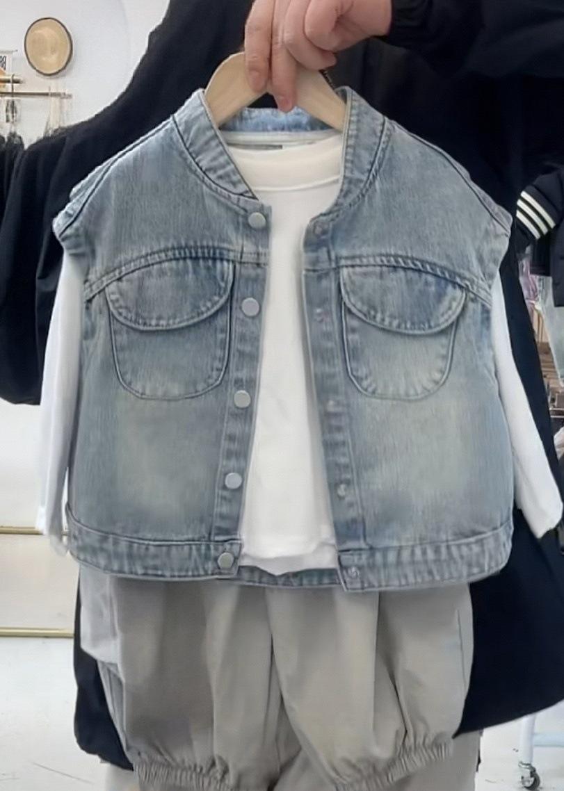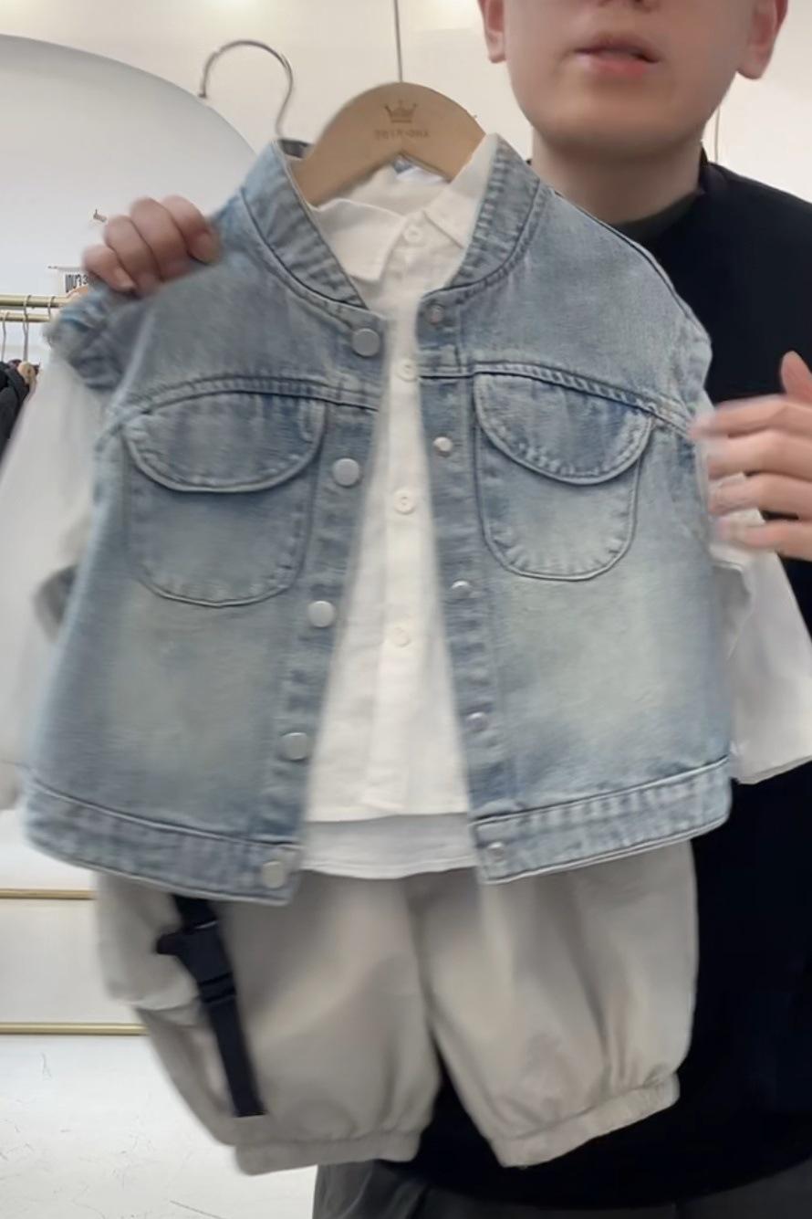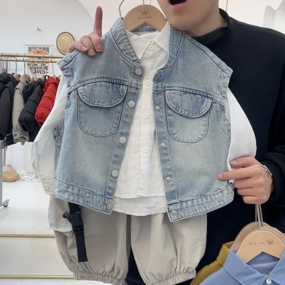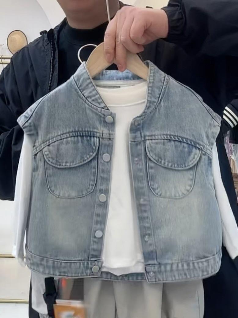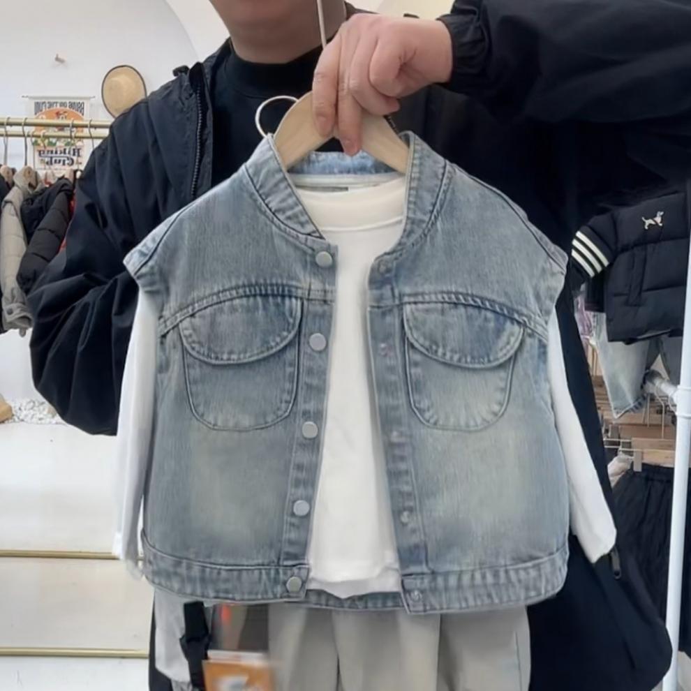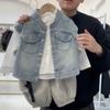 Versión coreana para niños y niñas, chaleco de mezclilla retro para exterior, chaleco de moda para bebé nuevo de primavera y otoño, chaleco versátil
