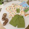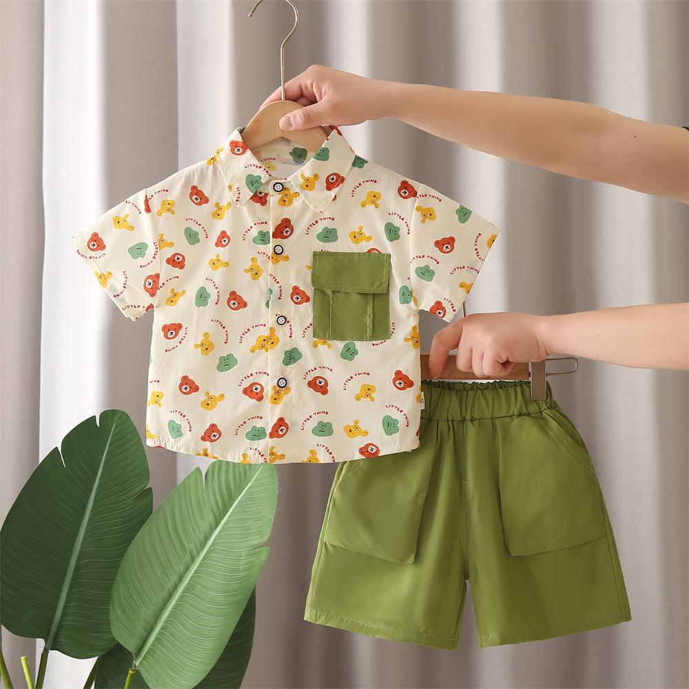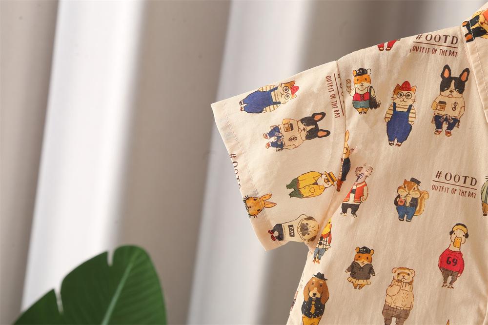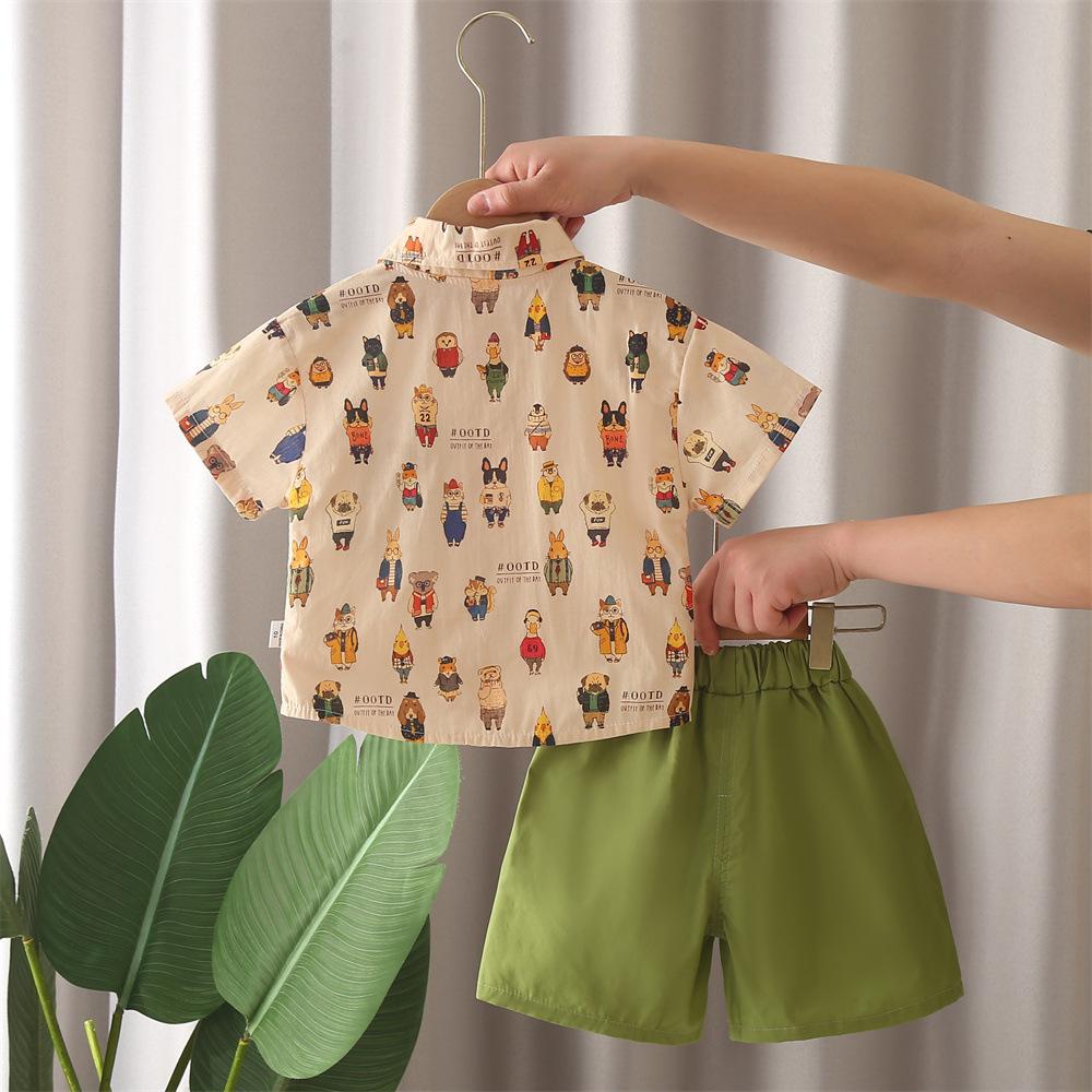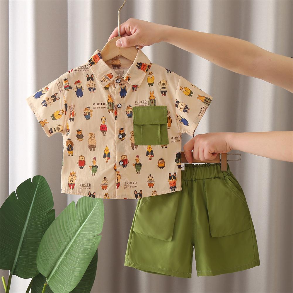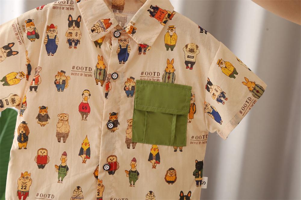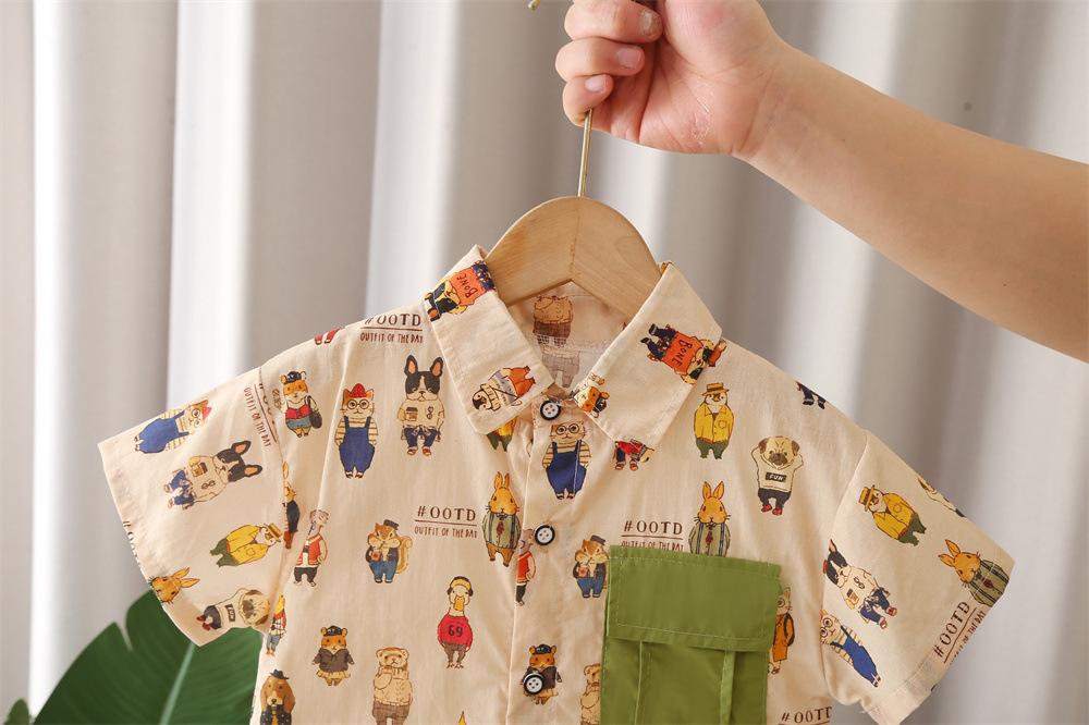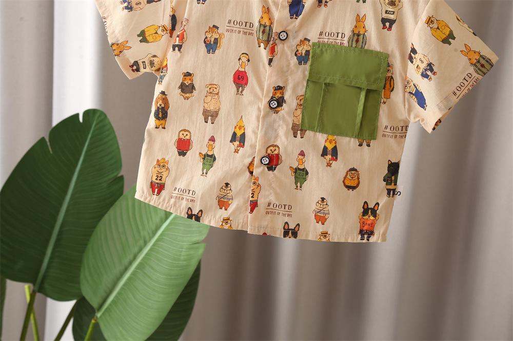 Khaki j all-over printed frog and bear short-sleeved shirt suit