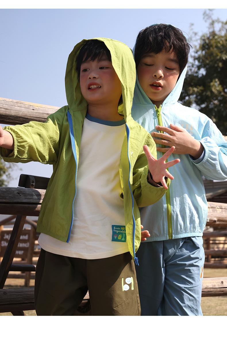 Ropa de Protección Solar para Niños Bbqb Primavera Nueva Arrugada Anti-Uv Ropa para la Piel para Niños y Niñas Chaqueta con Capucha Ligera y Delgada