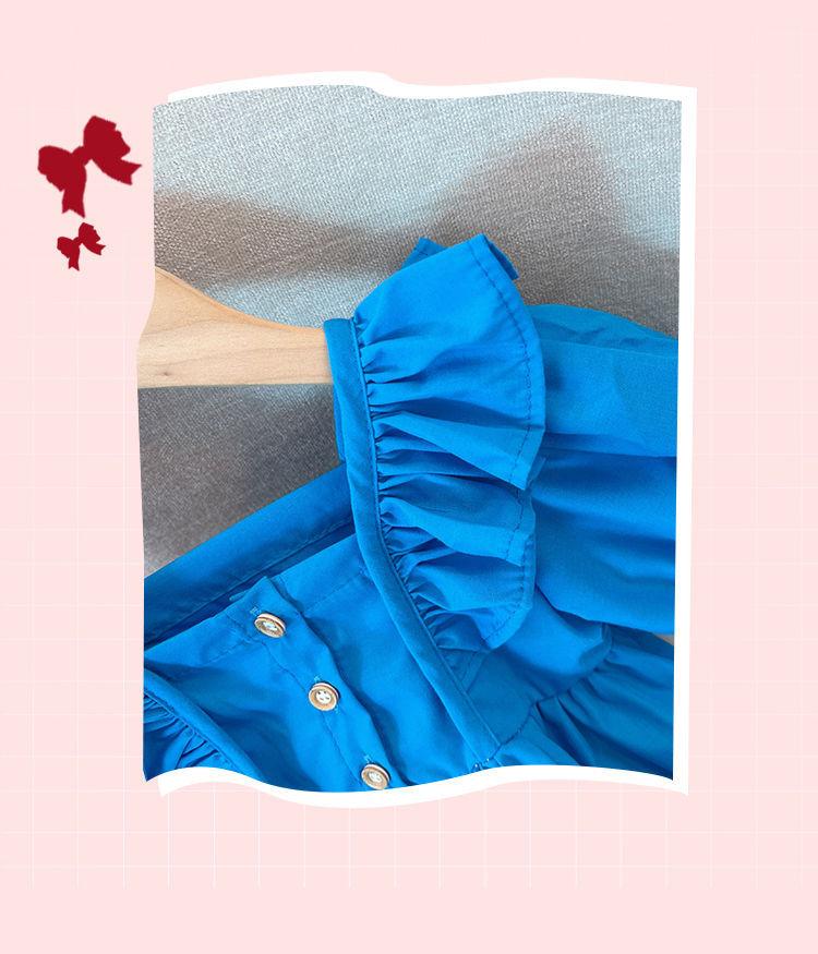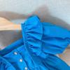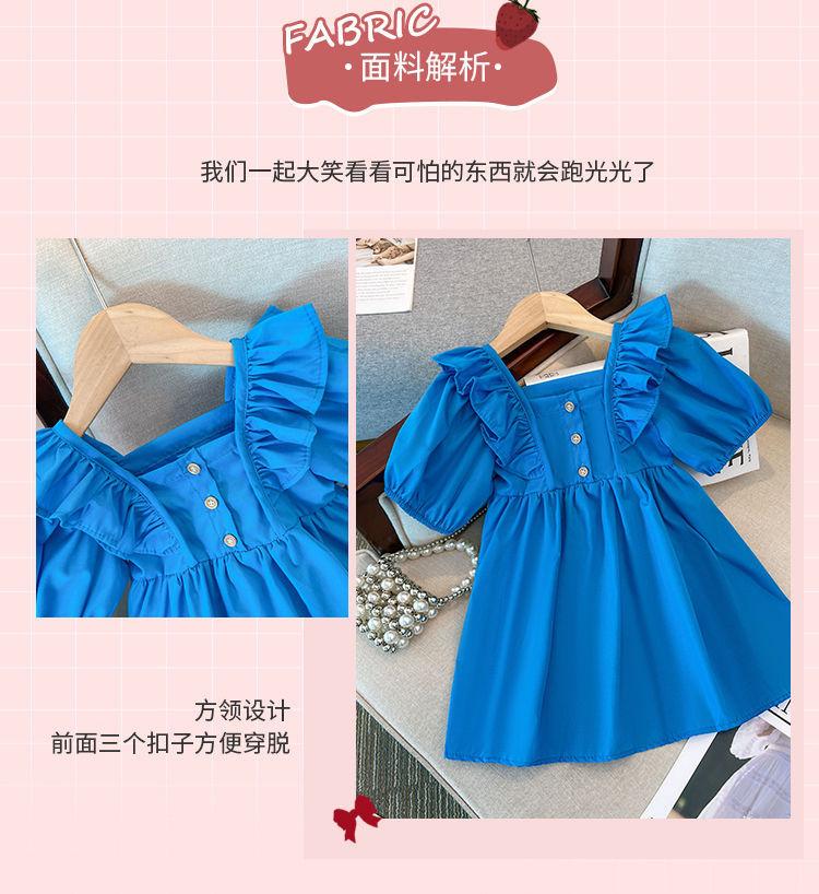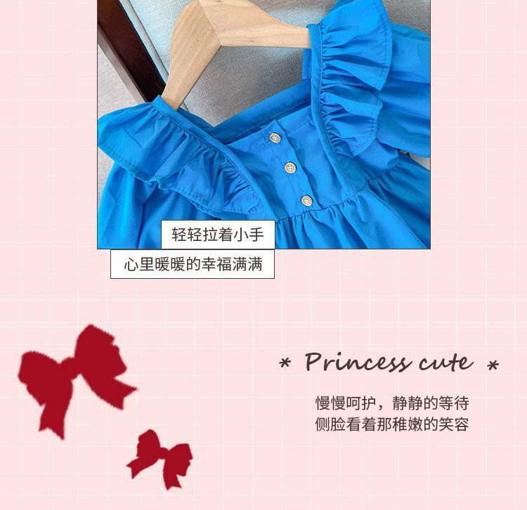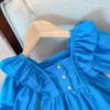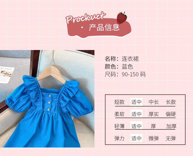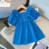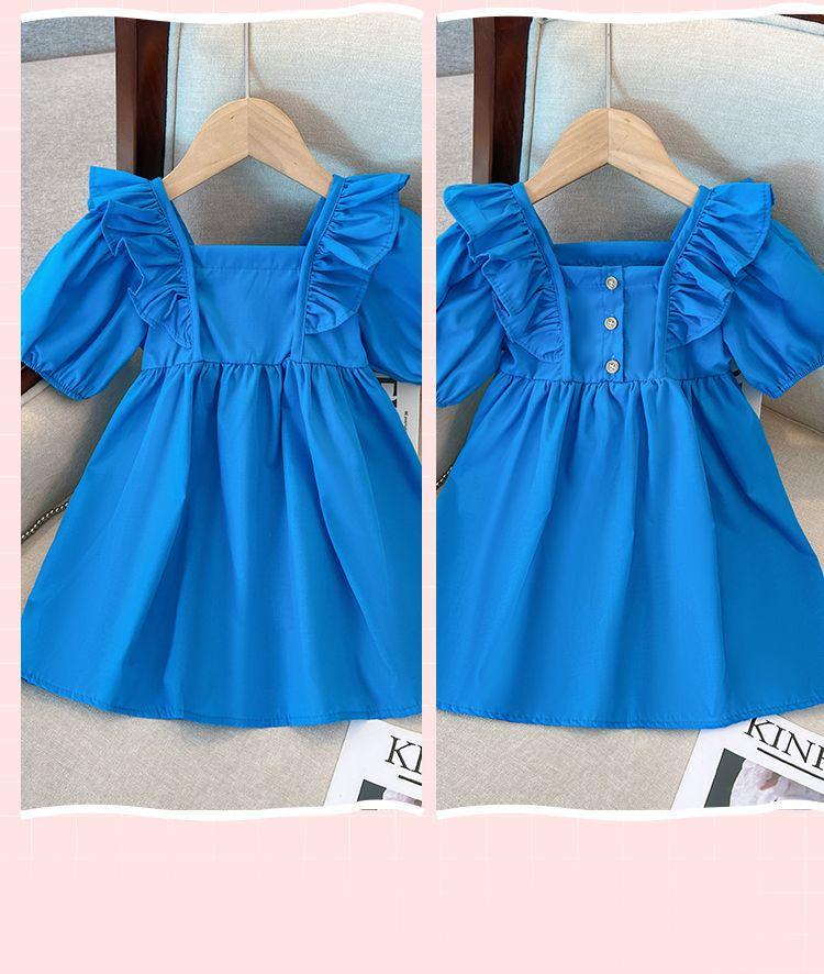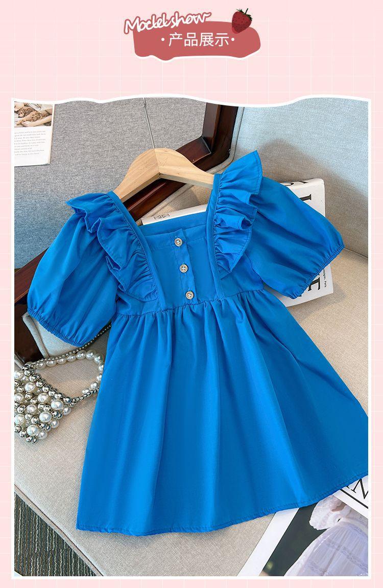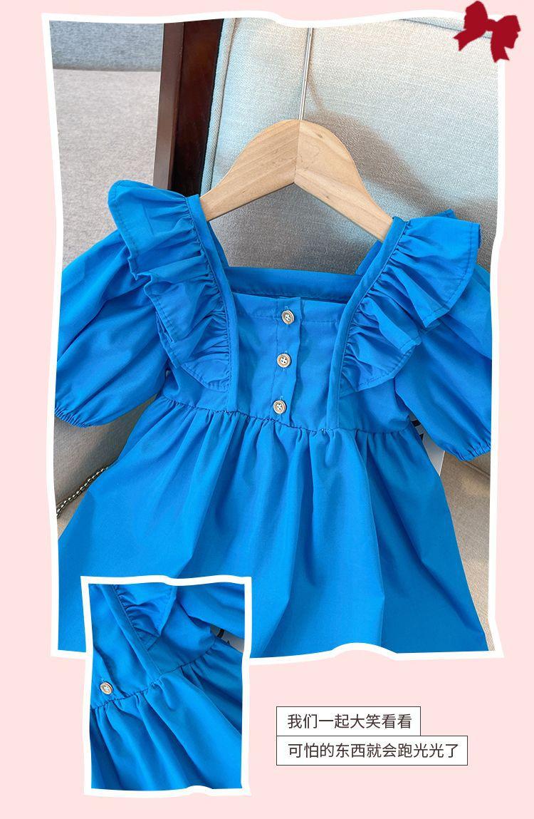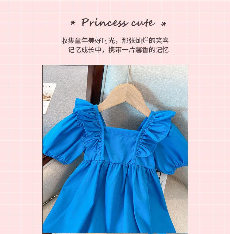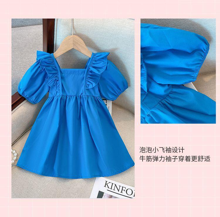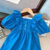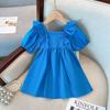 Vestido de verano 2025 para niña, cuello cuadrado, azul, elegante, de princesa.