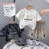 Traje de Verano para Niño 2025 Nuevo Traje de Verano para Niños Algodón Puro Dos Piezas Bebé Verano Manga Corta Guapo y a la Moda