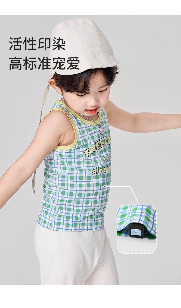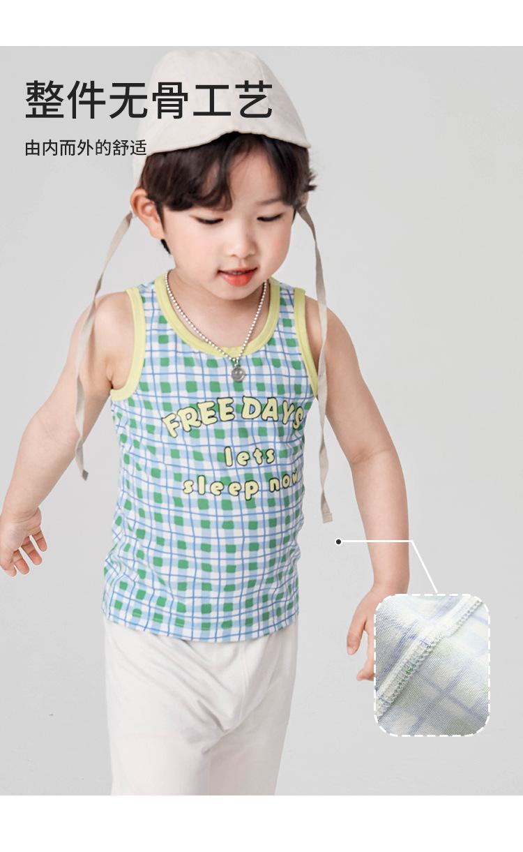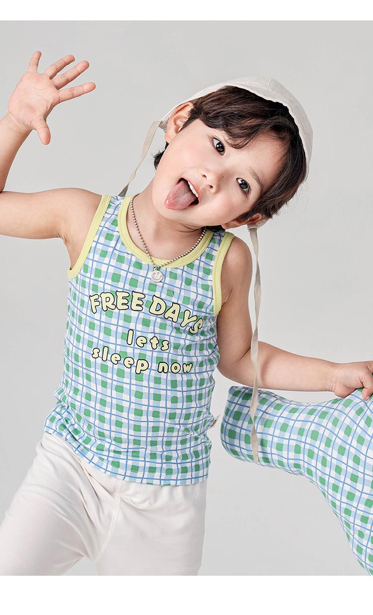 Pijama infantil de diseño J143 con estampado de cuadros y letras, chaleco de verano de clase A para niños