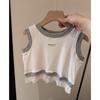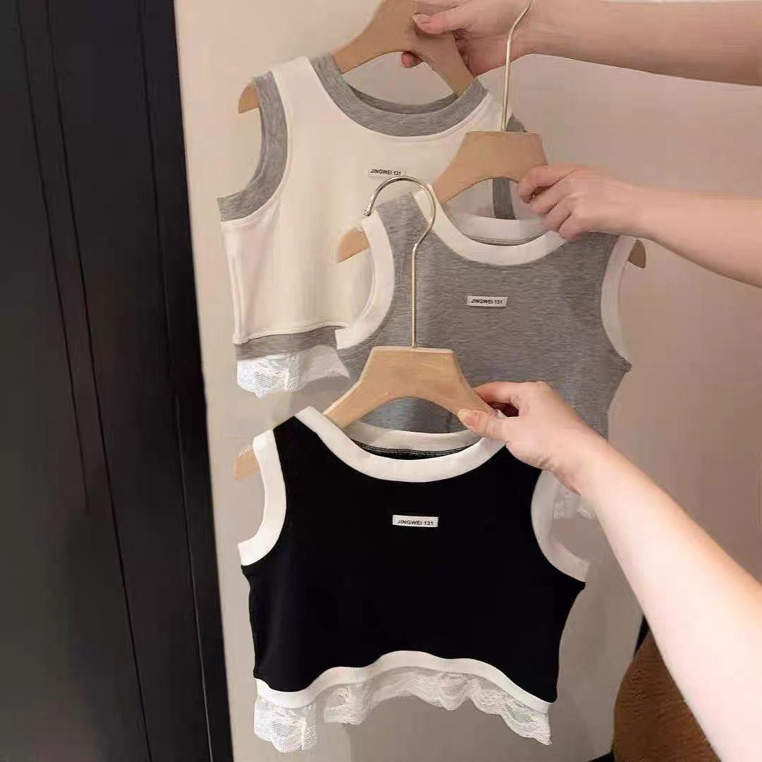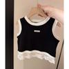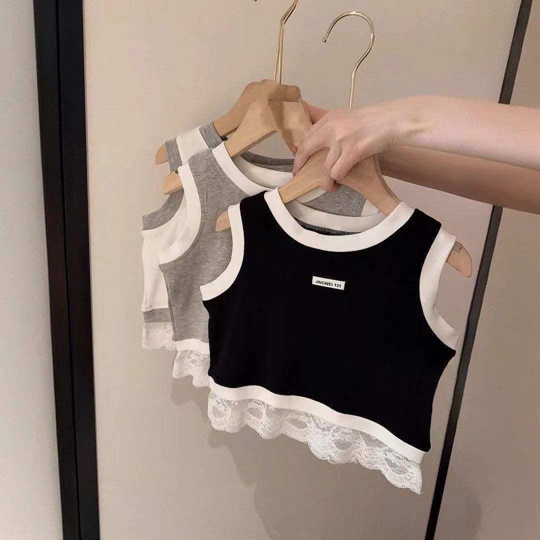 Chaleco de Verano para Niñas Estilo Western para Bebé Personalizado de Marca Moderna para Niños Letra Coreana Color Encaje Encaje Corto Danza Urbana