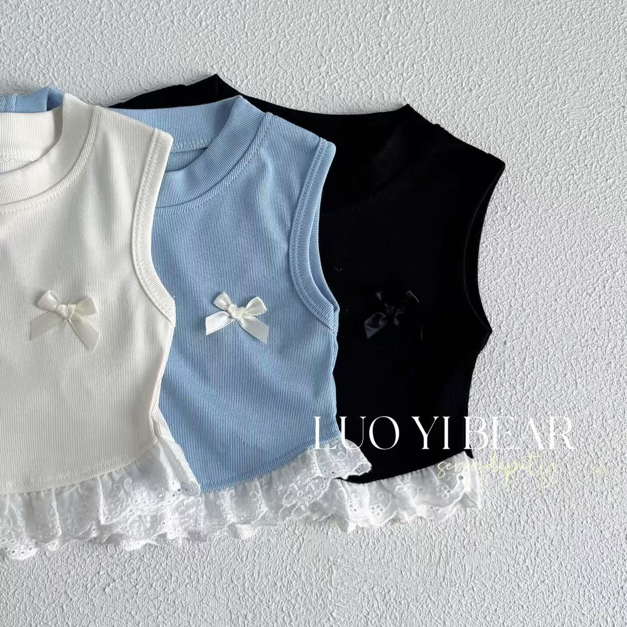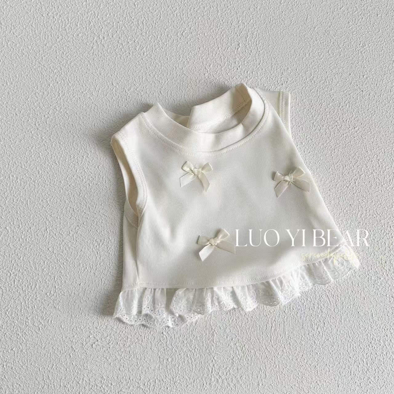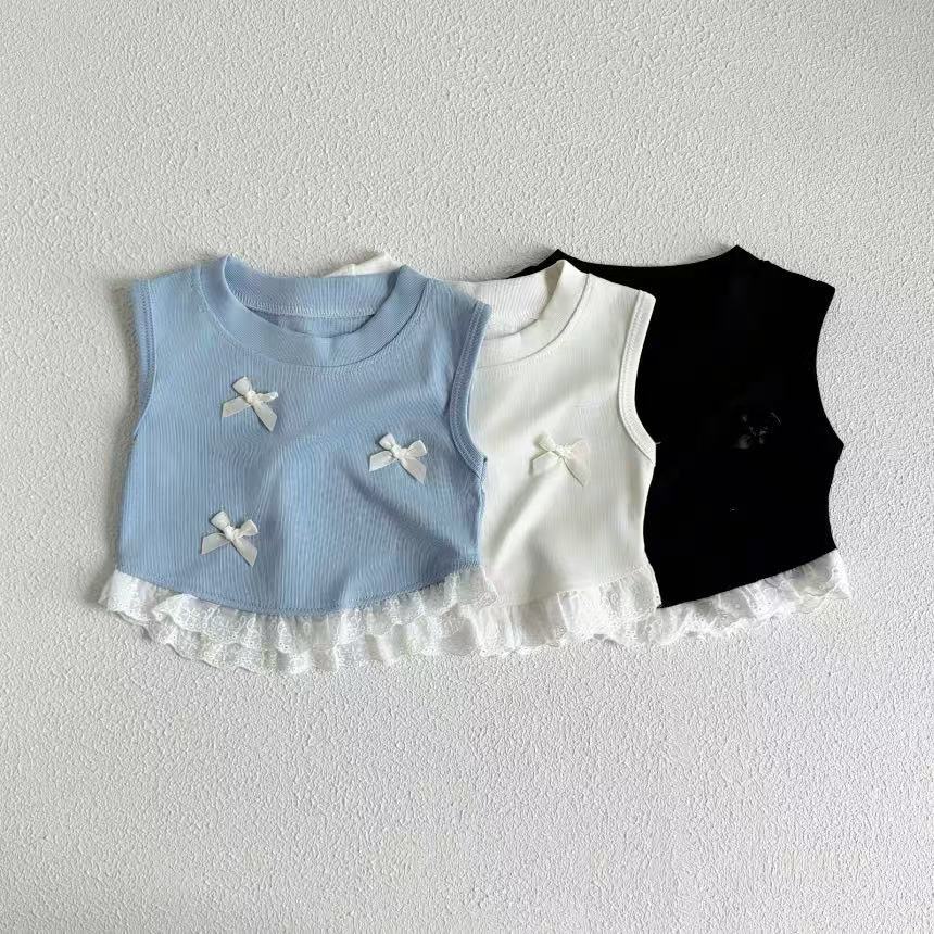 2025 Ropa Nueva para Niñas Chaleco con Lazo Sin Mangas Ropa de Verano Nueva Camiseta sin Mangas Dulce con Parches para Niños