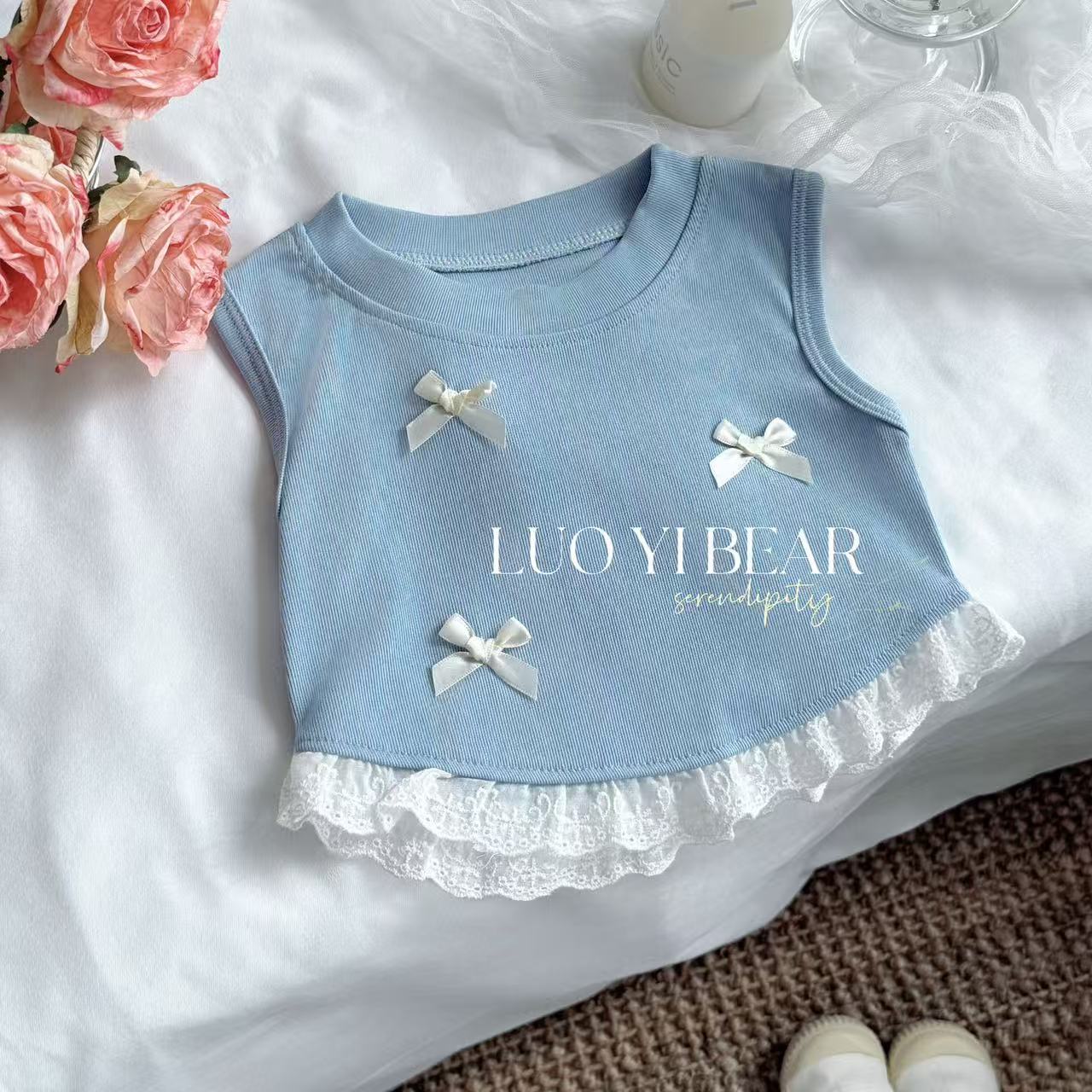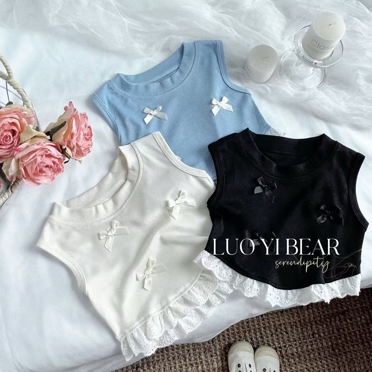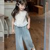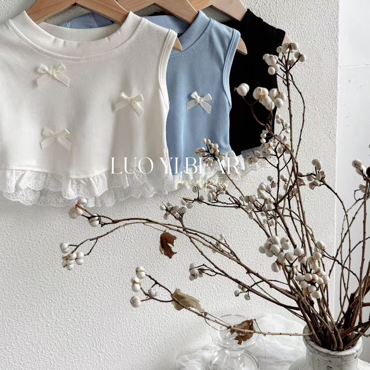 2025 Ropa Nueva para Niñas Chaleco con Lazo Sin Mangas Ropa de Verano Nueva Camiseta sin Mangas Dulce con Parches para Niños