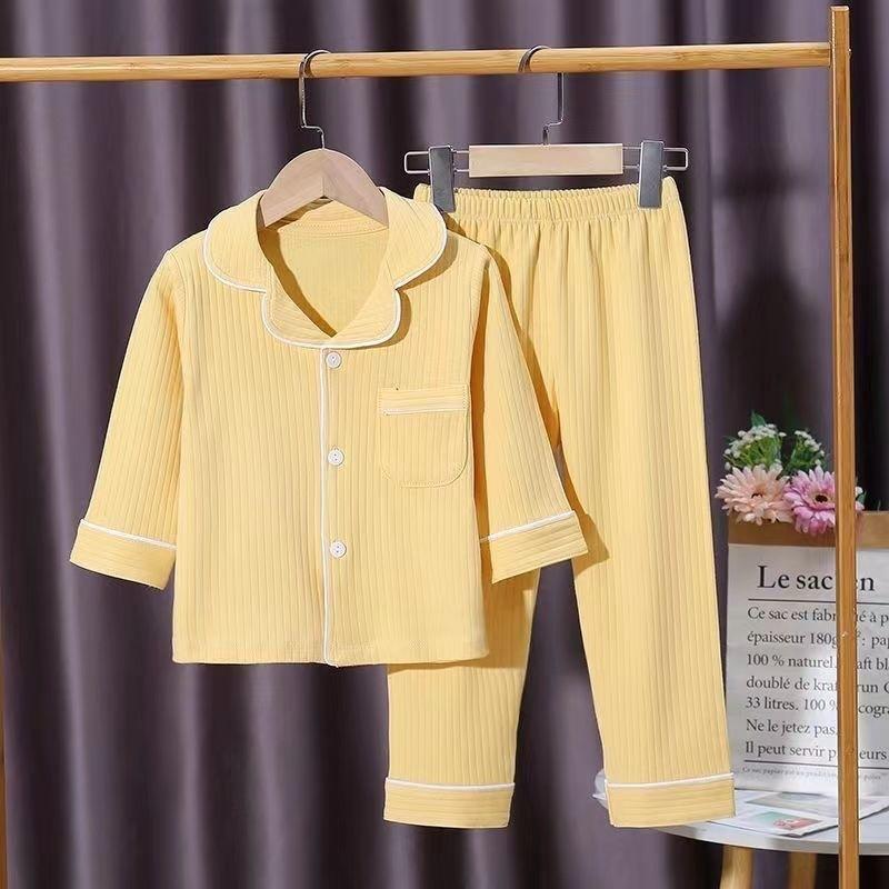 Conjunto de Pijama Infantil de Algodón Puro, Estilo Primavera y Otoño, Niños y Niñas, Ropa de Casa Larga, Clase A, Estilo Lindo
