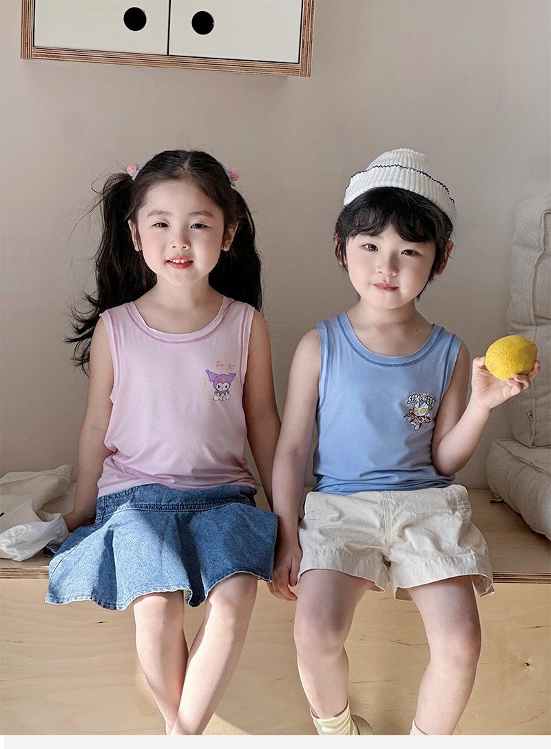 Chaleco para niños, novedad de verano 2025, estilo coreano, modal, estampado de dibujos animados, top sin mangas para bebés, niños y niñas