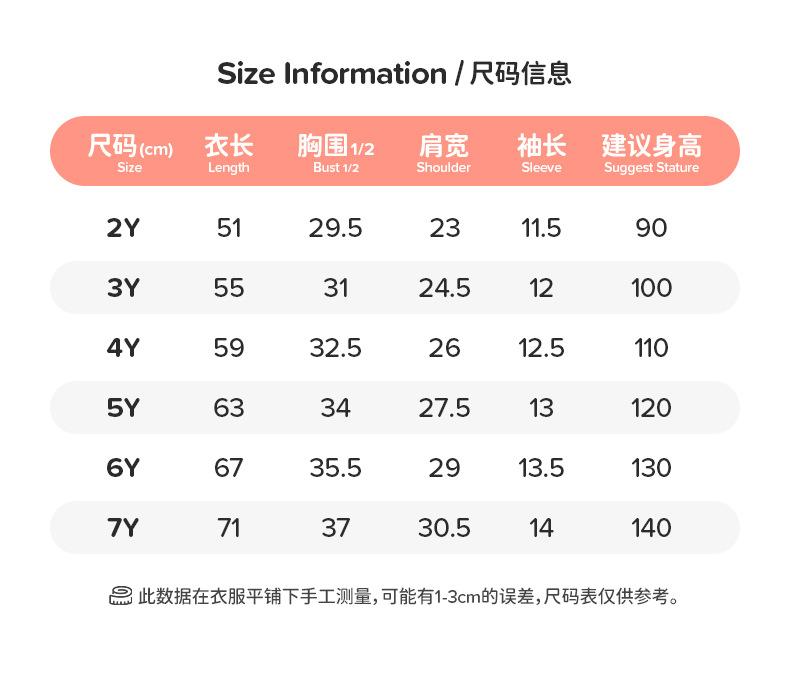 2Y(90cm), 3Y(100cm), 4Y(110cm), 5Y(120cm), 6Y(130cm), 7Y(140cm)