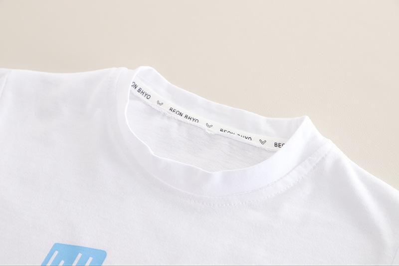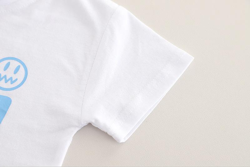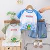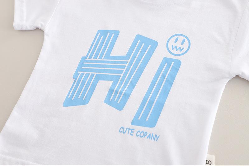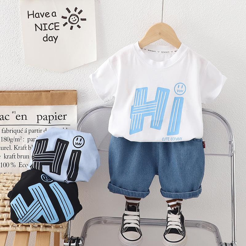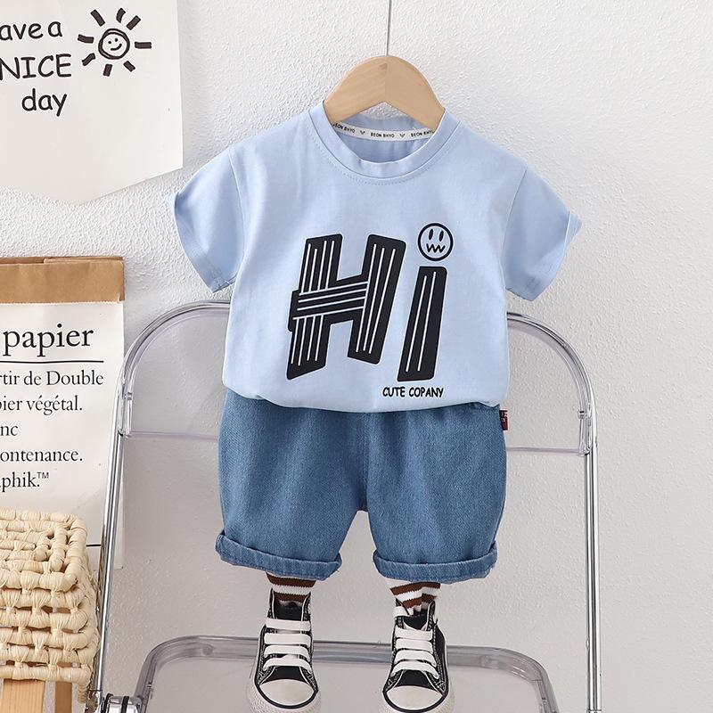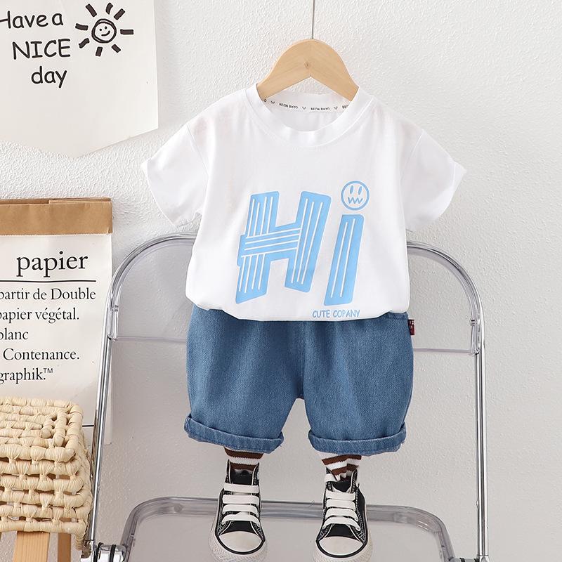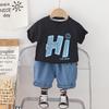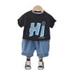 Traje de verano para niños Algodón Letra Camiseta de manga corta Mezclilla Manga corta Bebé Dos piezas Estilo occidental Ropa de verano para niños 1