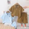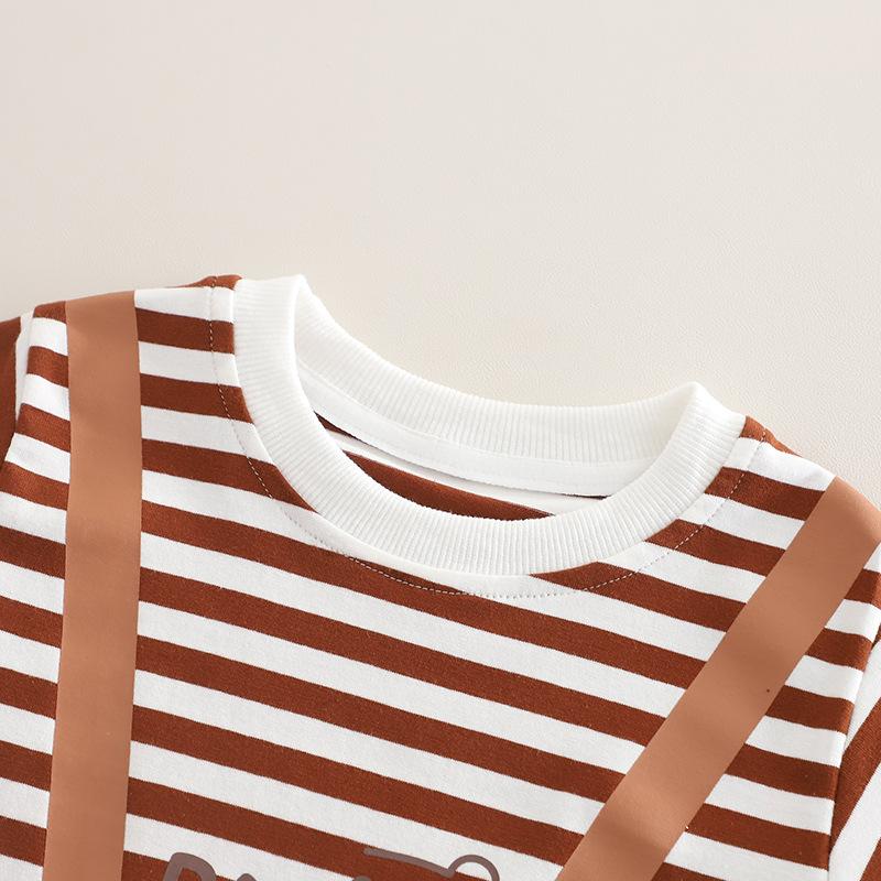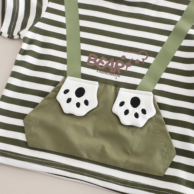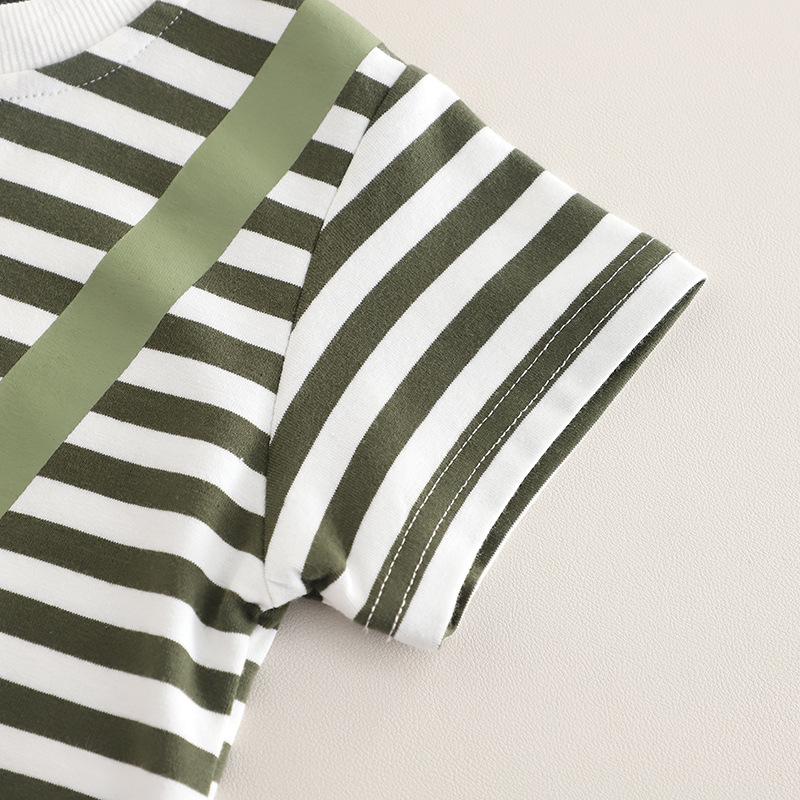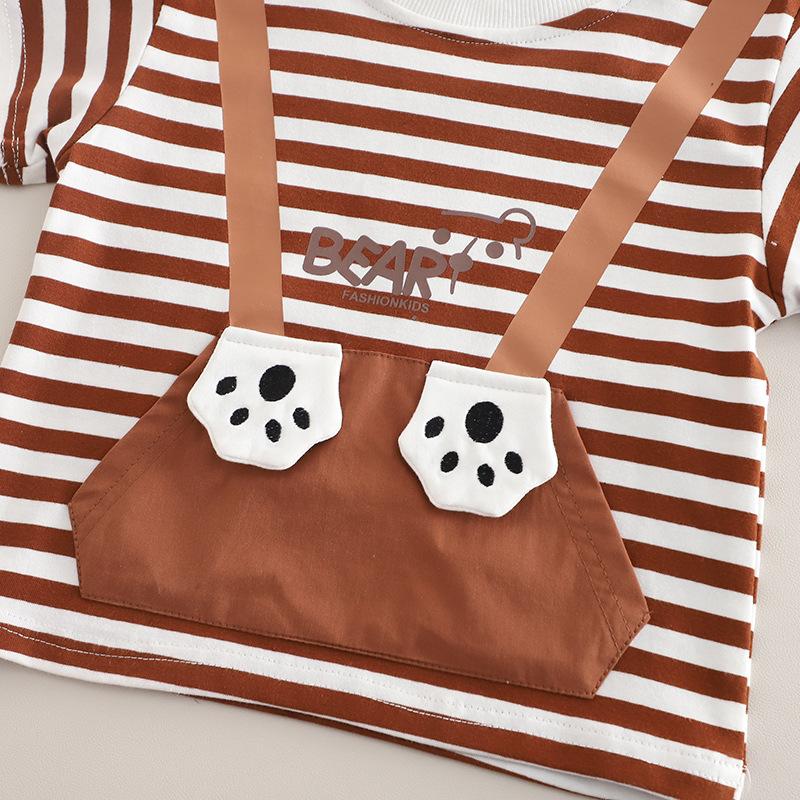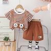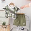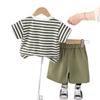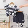 Traje de verano para niños 2025 nuevo conjunto de dos piezas de manga corta a rayas para bebés de 1 a 5 años 3 ropa de verano para bebés marea
