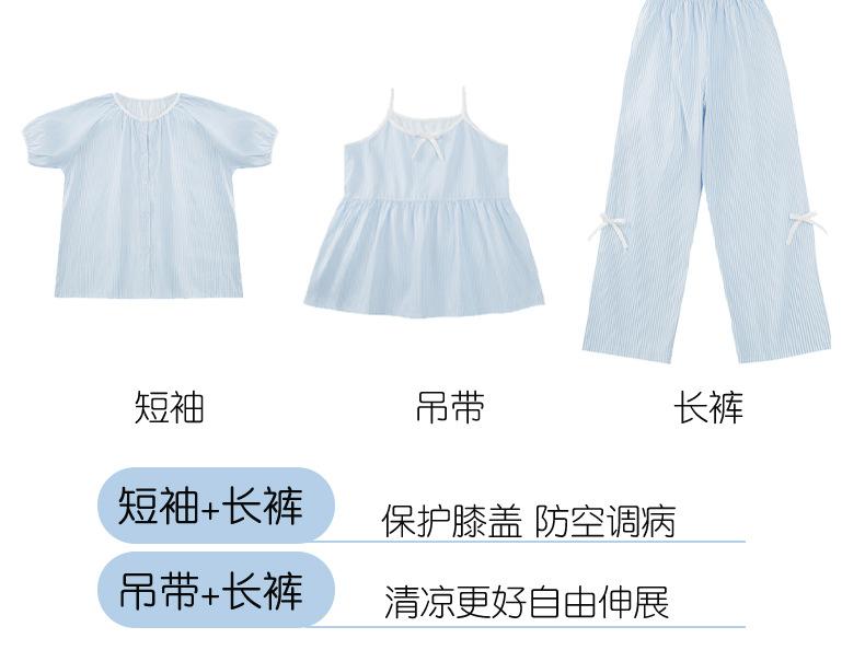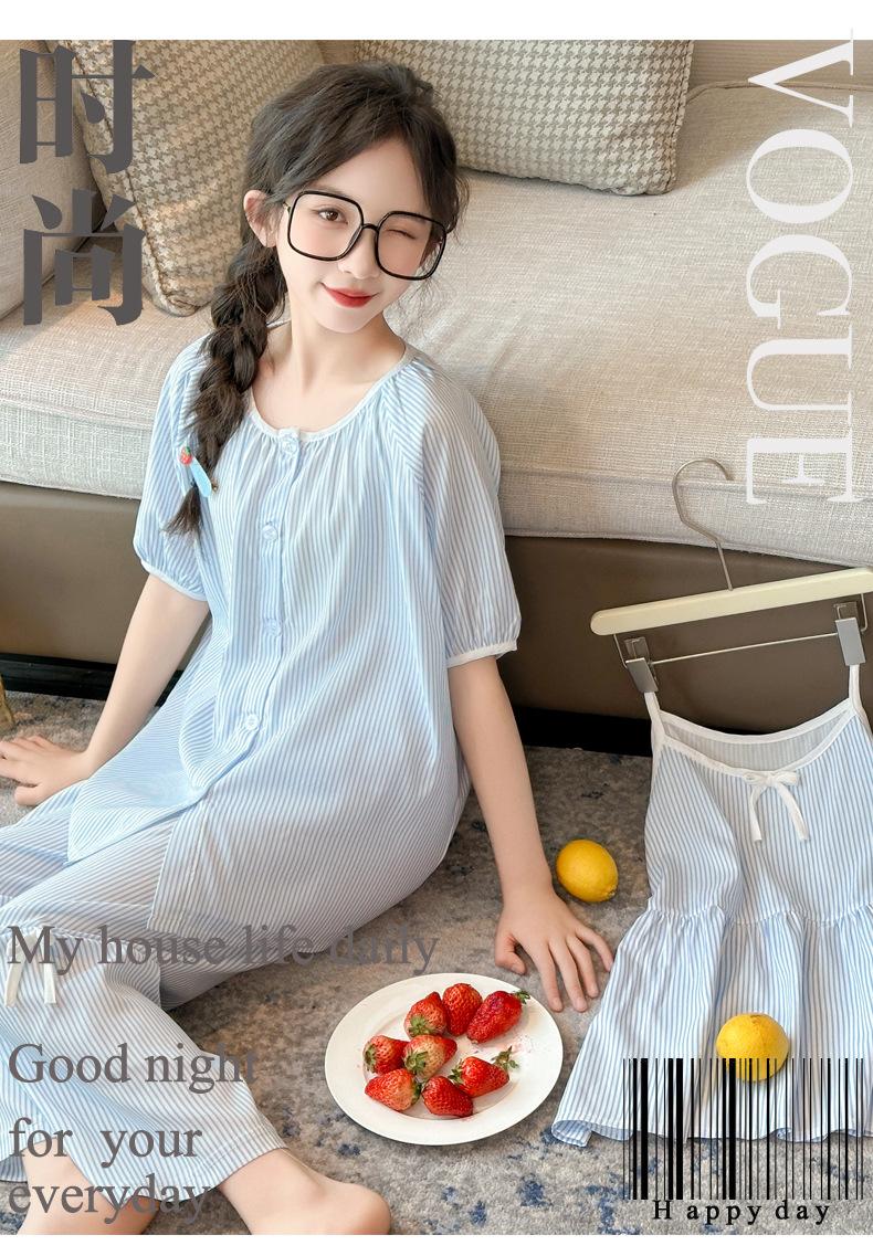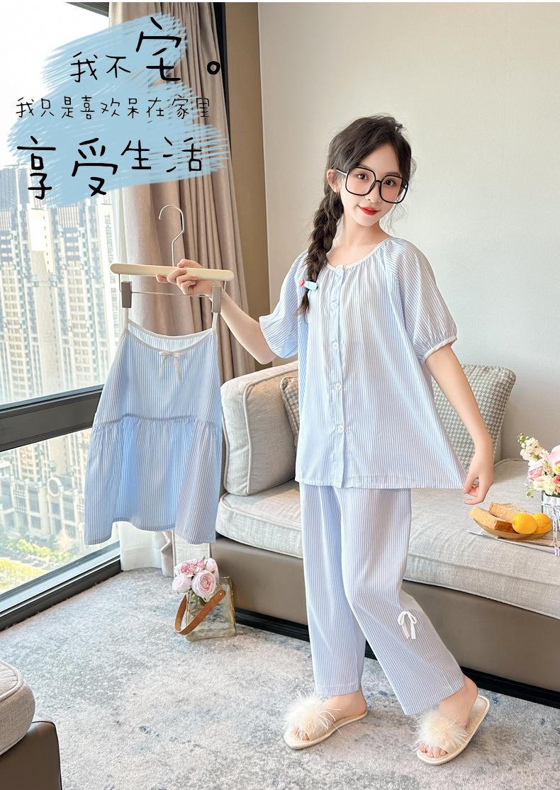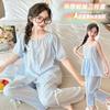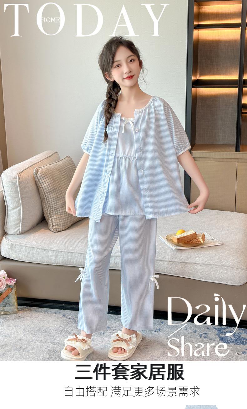 Pijamas de Seda de Hielo para Niños Verano 2025 Nuevo Ropa Popular para el Hogar de Celebridad de Internet para Niñas Conjunto de Tres Piezas de Manga Corta para Niñas