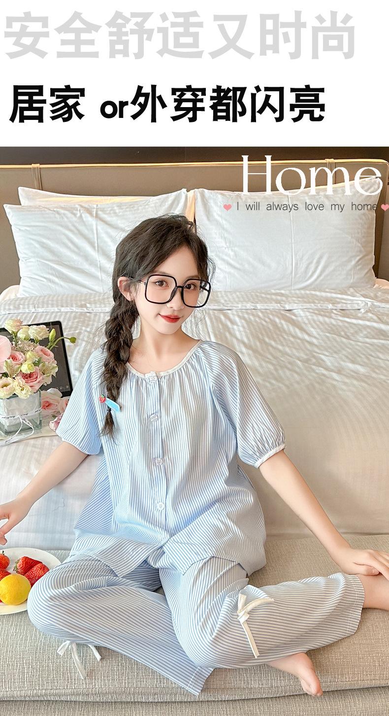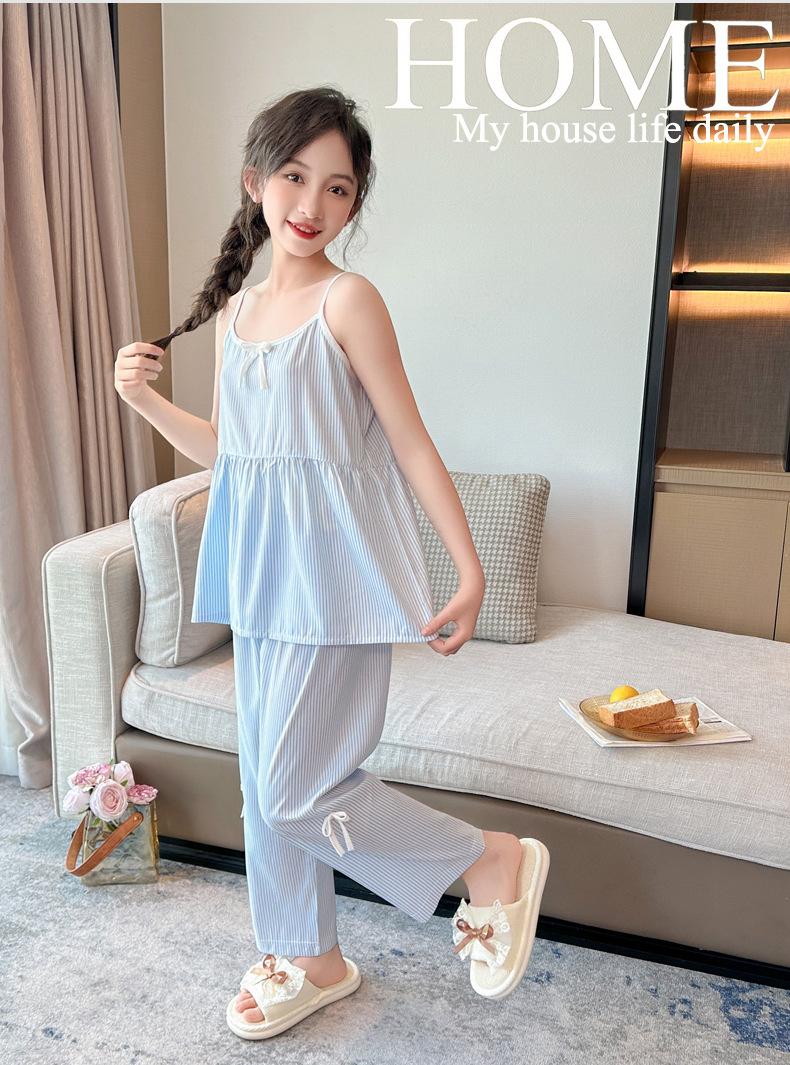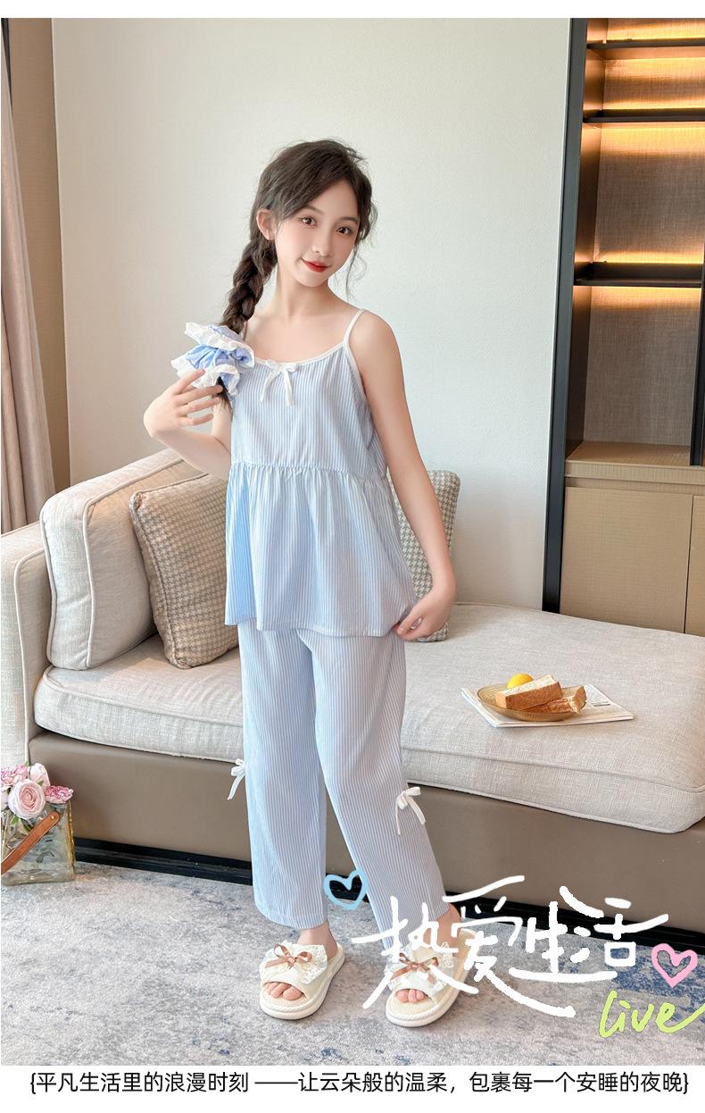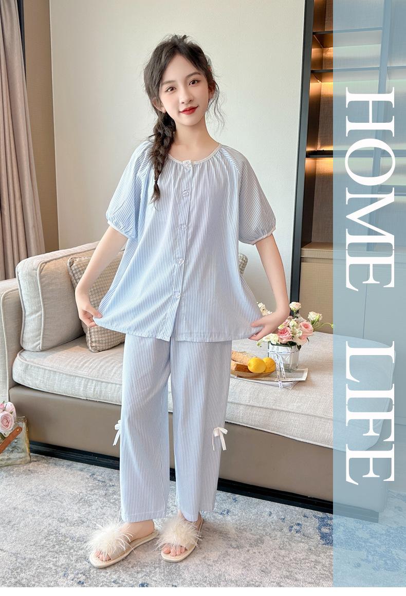 Pijamas de Seda de Hielo para Niños Verano 2025 Nuevo Ropa Popular para el Hogar de Celebridad de Internet para Niñas Conjunto de Tres Piezas de Manga Corta para Niñas