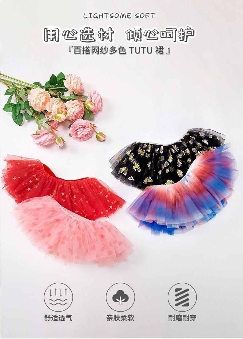 Venta al por mayor transfronteriza de ropa de primavera y verano 2024 para niñas, falda tutú con estampado multicolor de tela de malla de alta calidad para niñas pequeñas