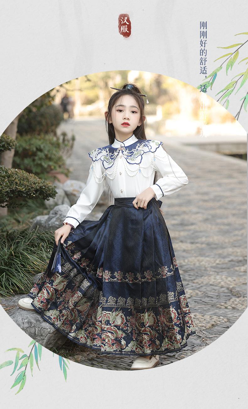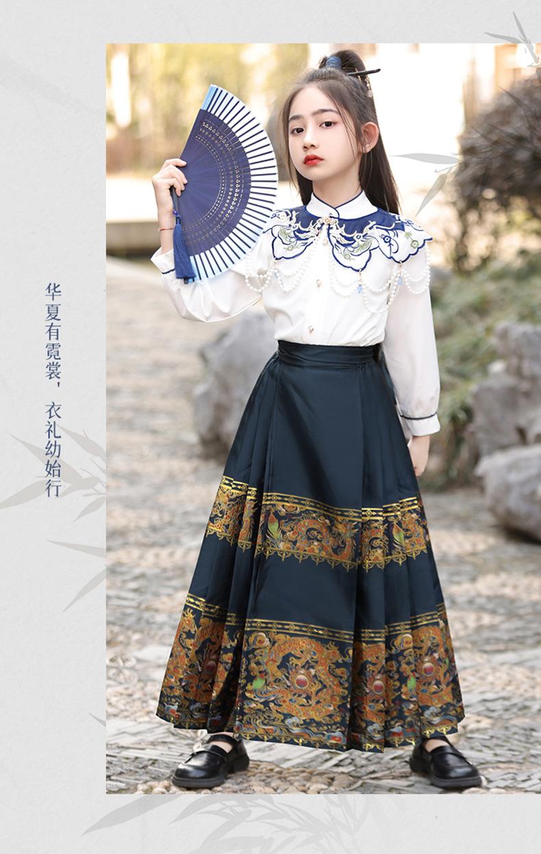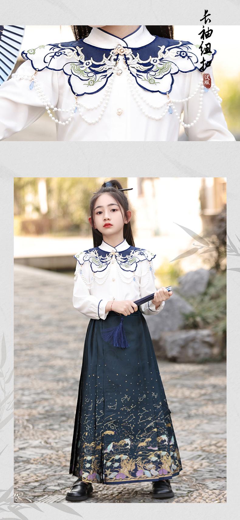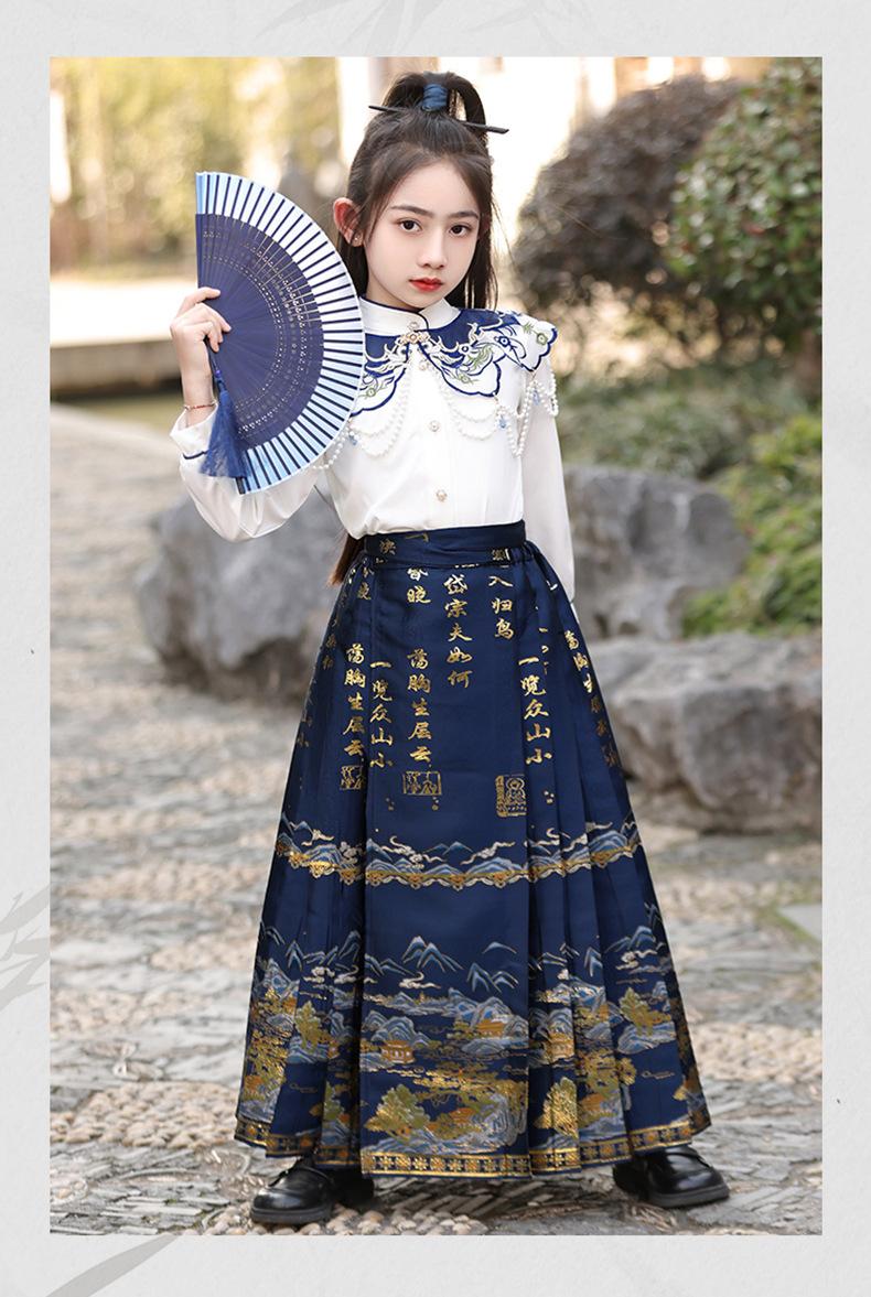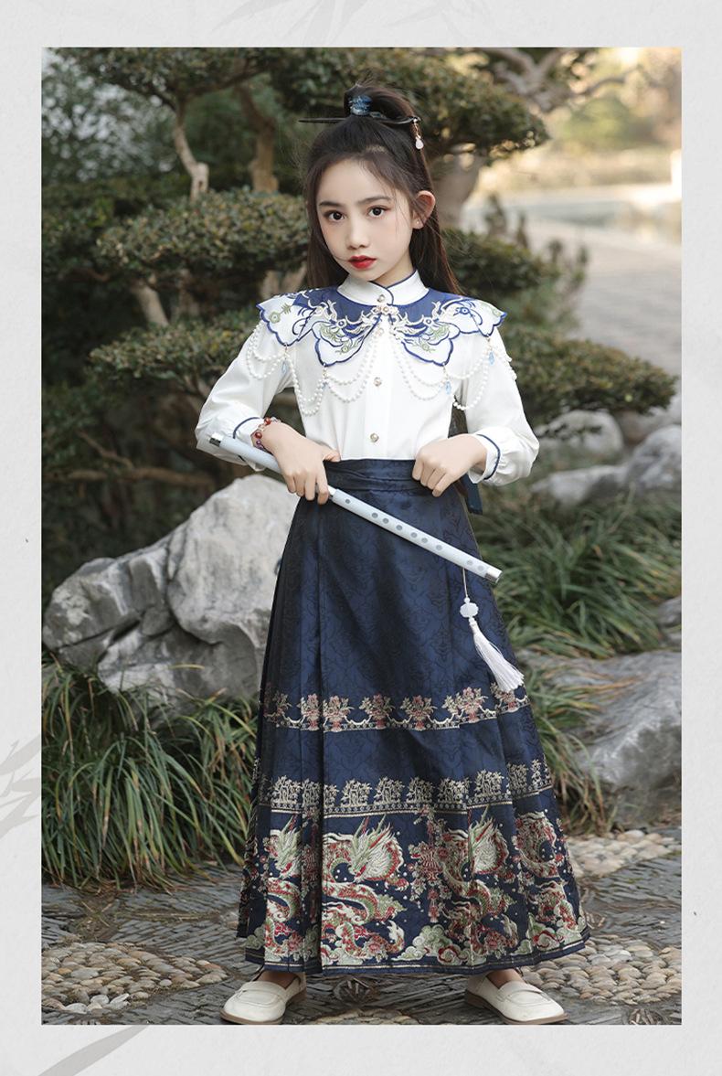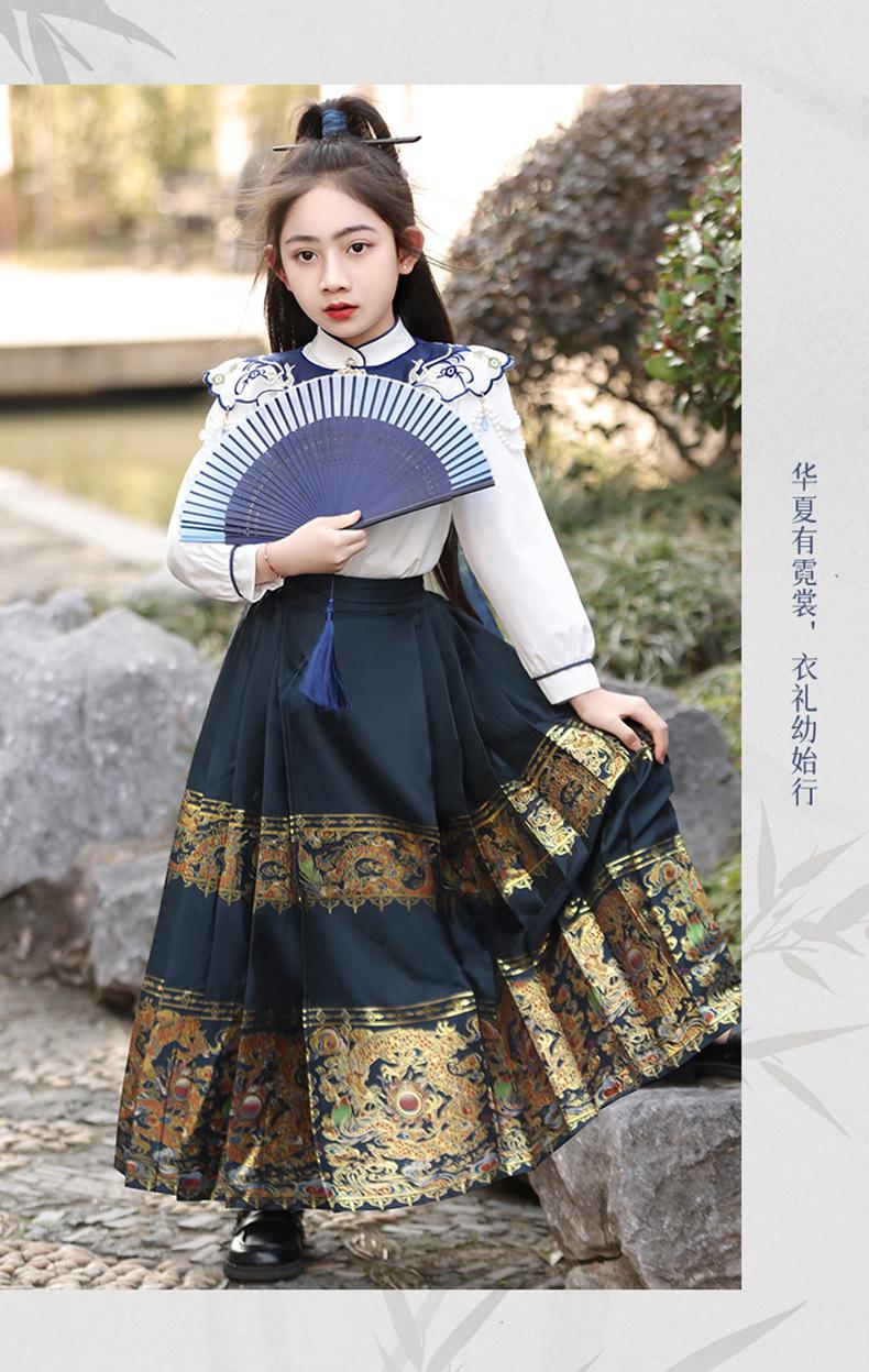 Conjunto de Falda Cara de Caballo para Niñas Traje Tradicional Atuendo para Actuación Traje Tang para Niños Estilo Otoño Hanfu Estilo Ming Mejorado Estilo Chino