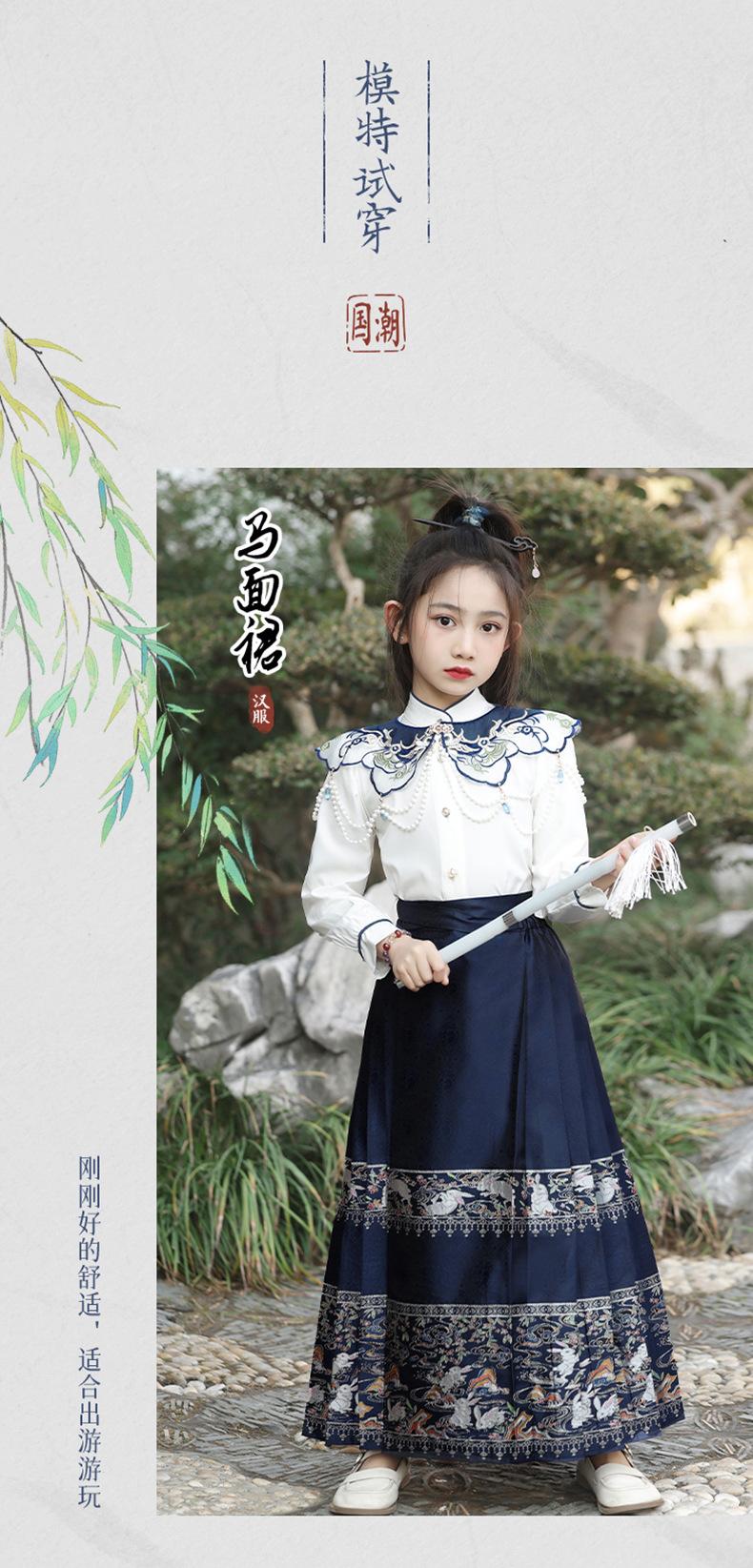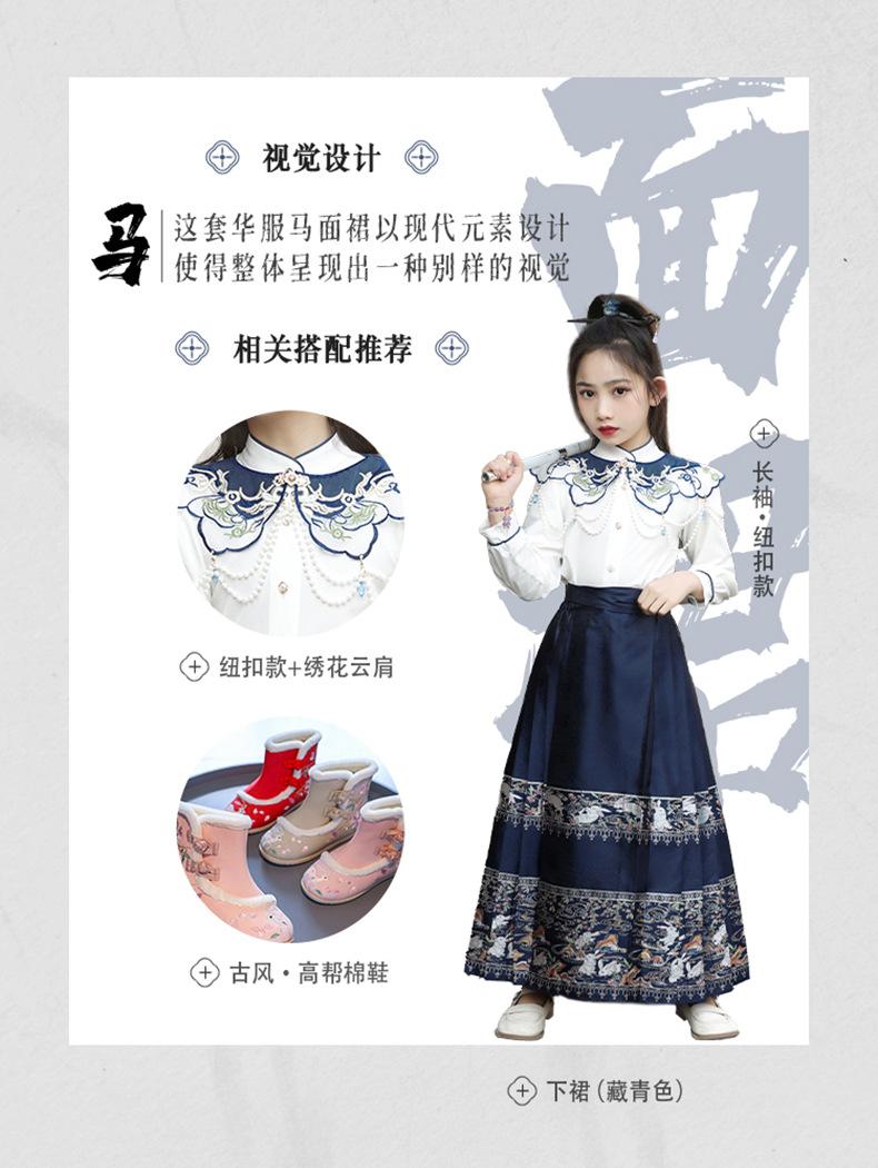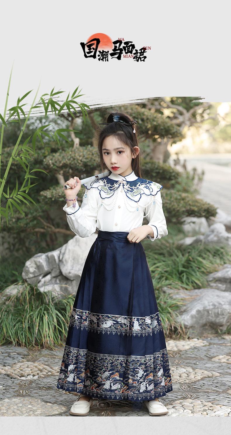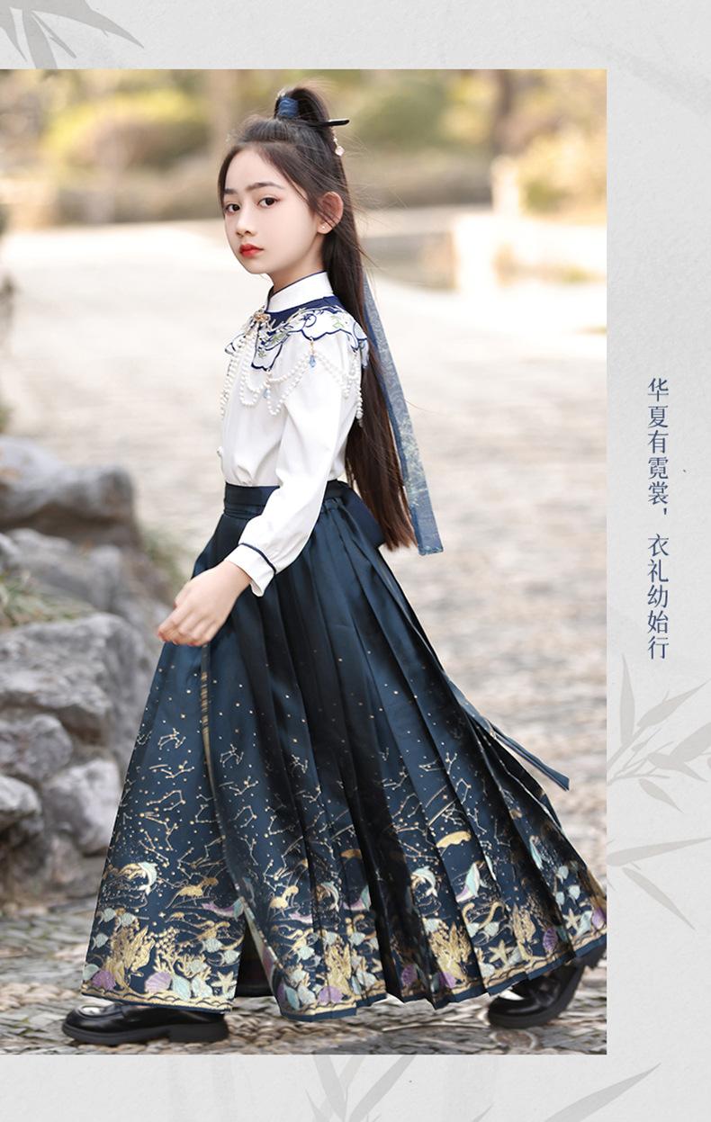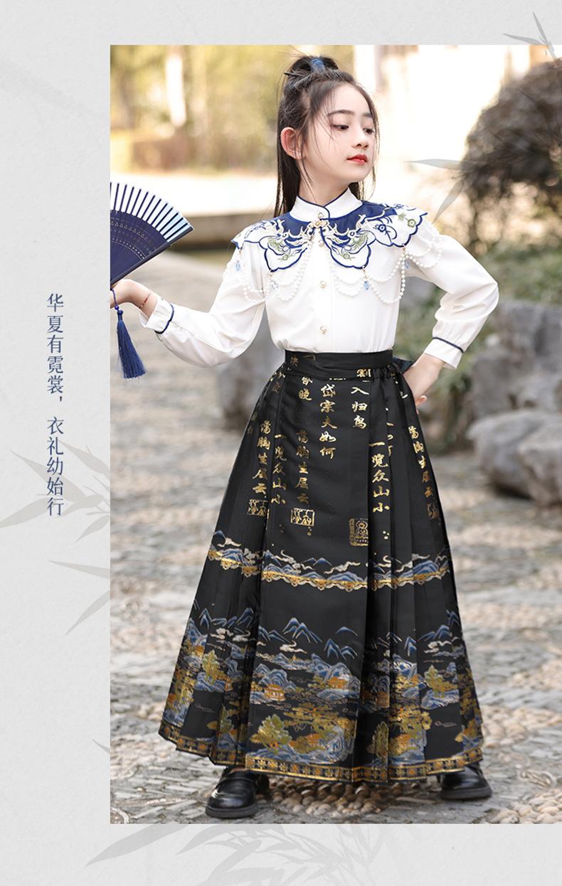 Conjunto de Falda Cara de Caballo para Niñas Traje Tradicional Atuendo para Actuación Traje Tang para Niños Estilo Otoño Hanfu Estilo Ming Mejorado Estilo Chino