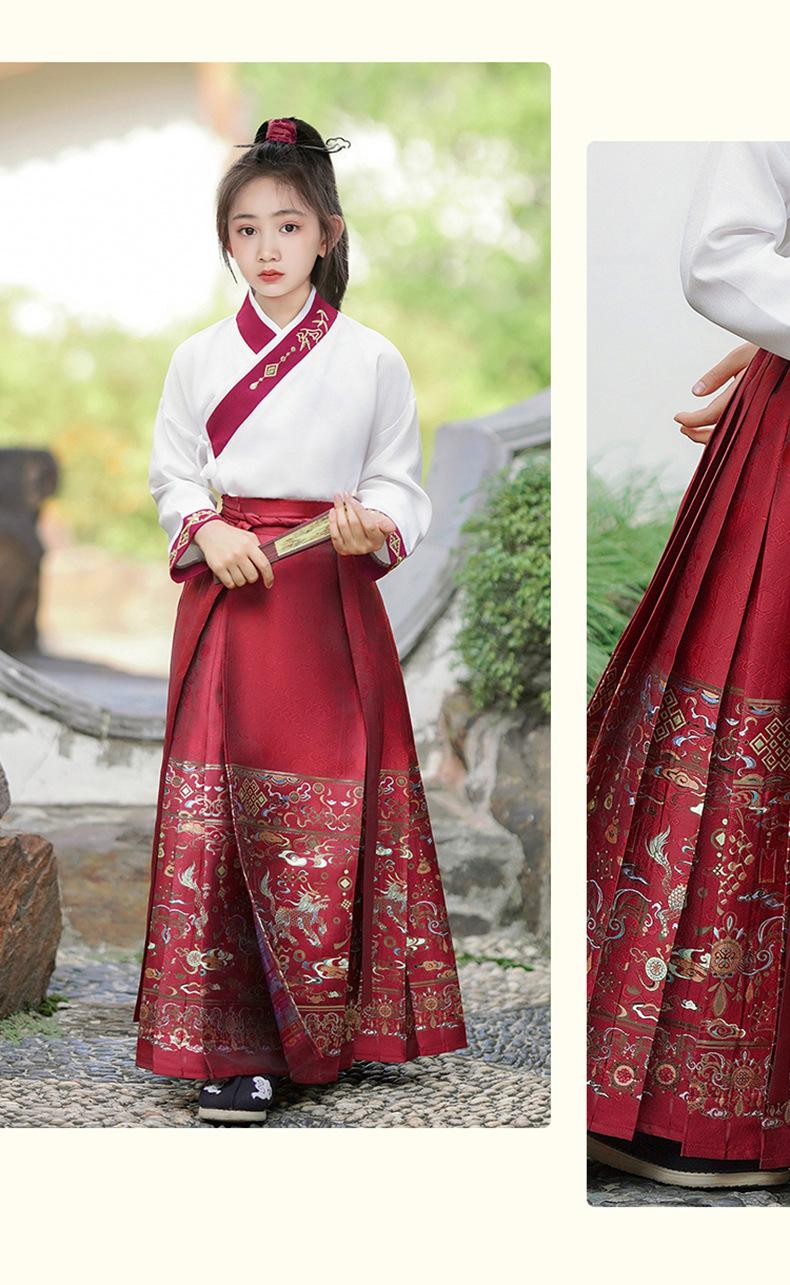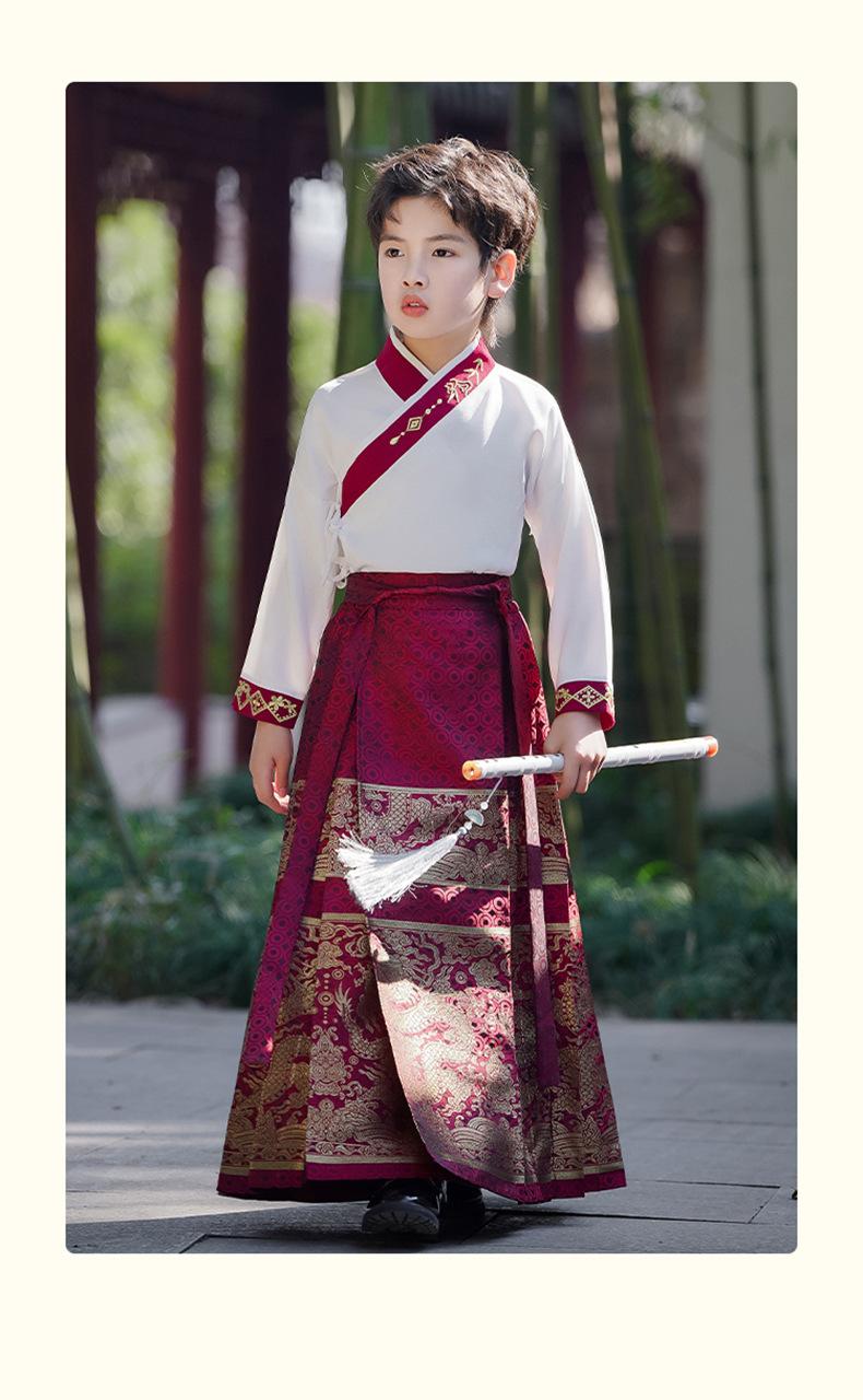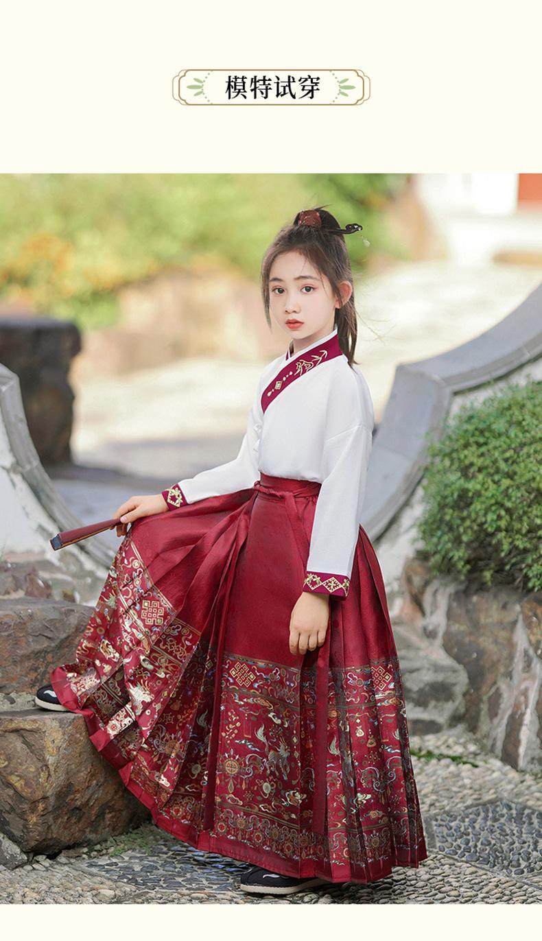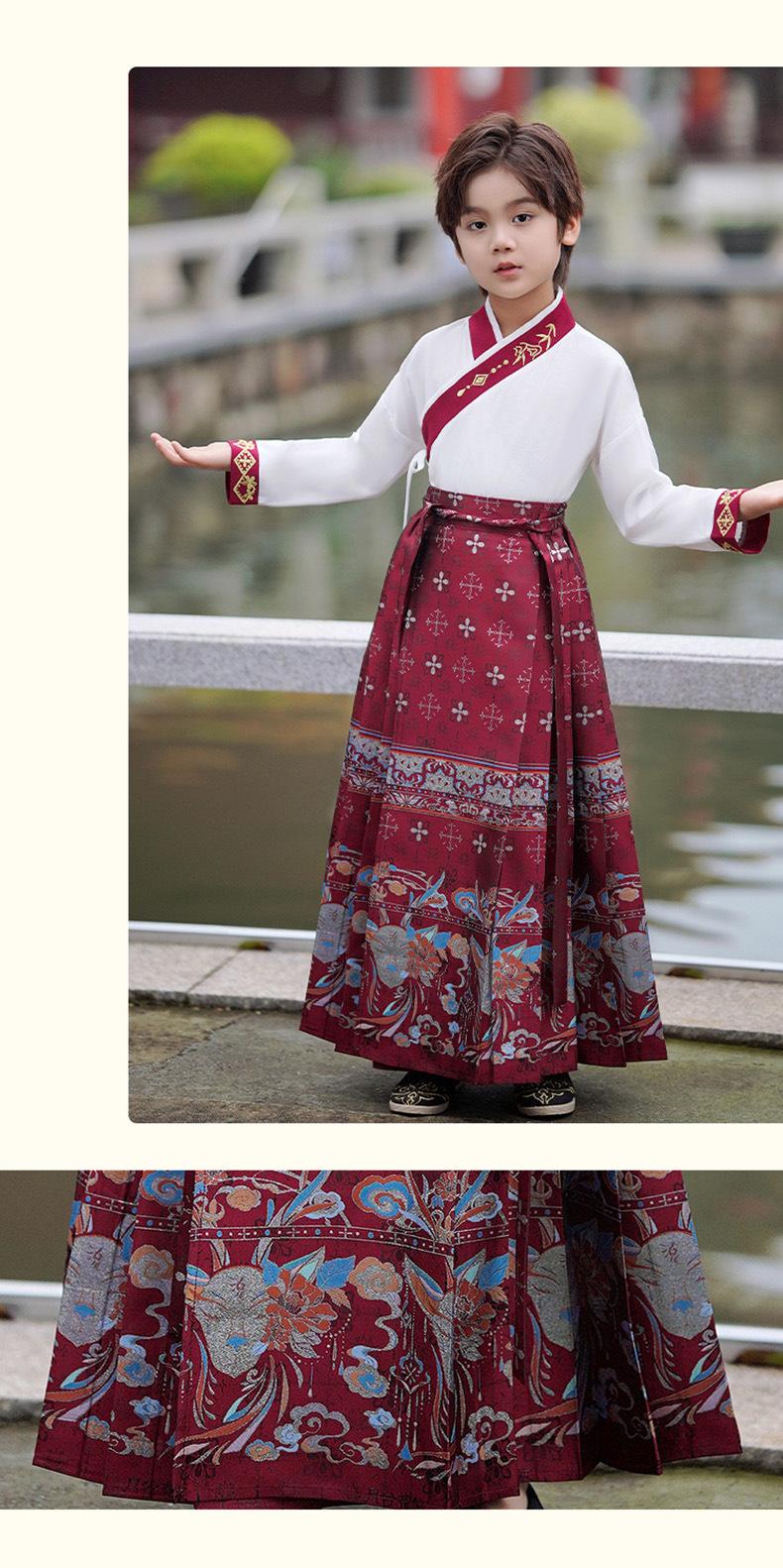 Traje de falda con cara de caballo para niños Hanfu 2025, nuevo traje Guoxue Tang para niños, libro de estilo chino, disfraz antiguo para niños, disfraz de actuación