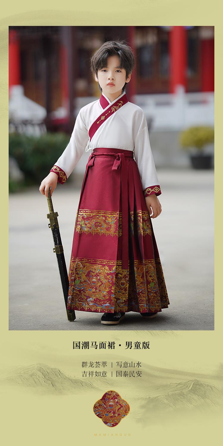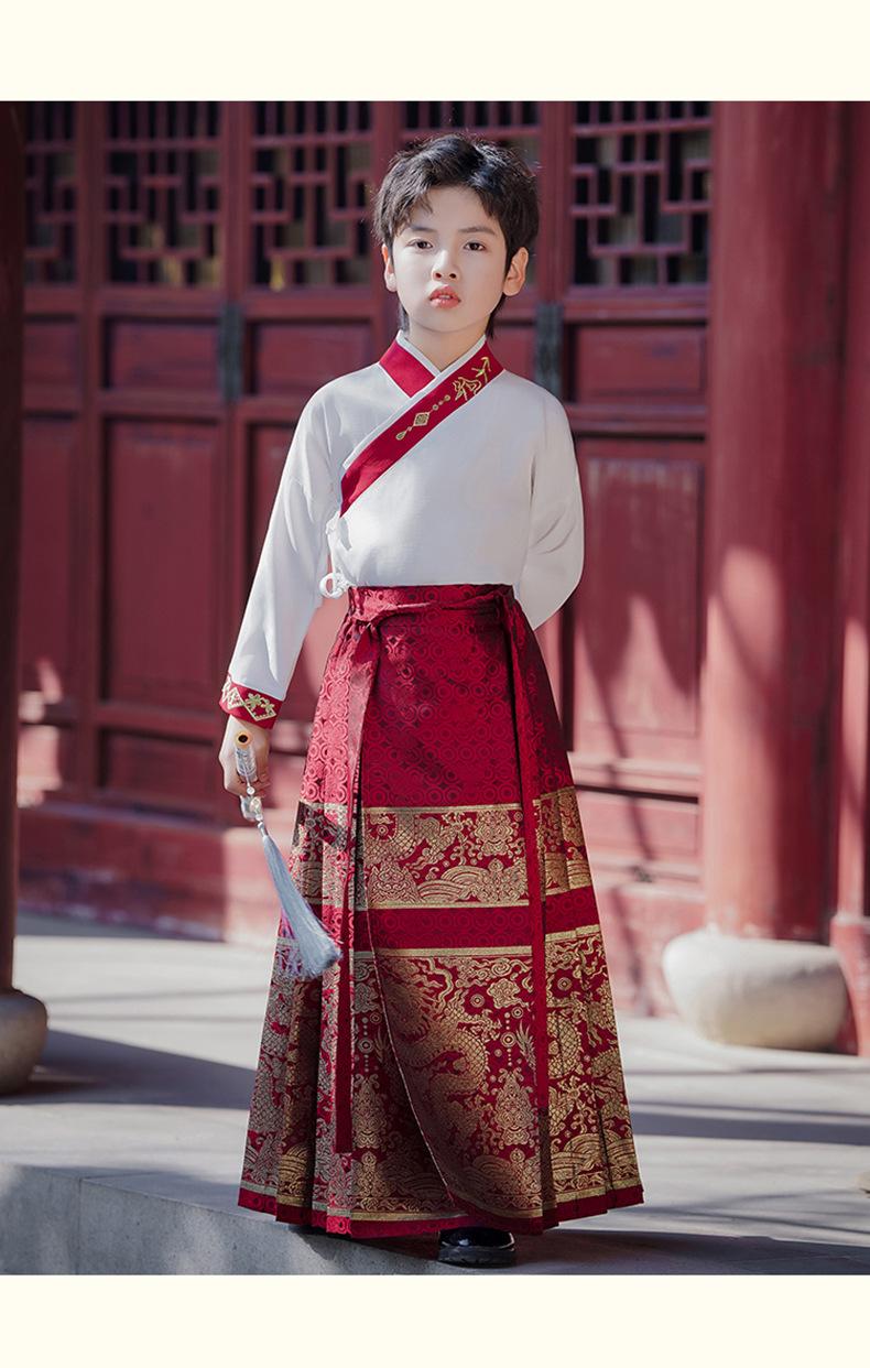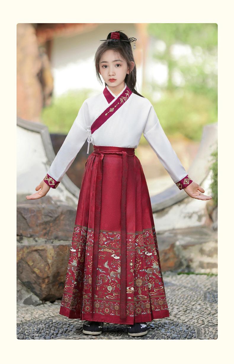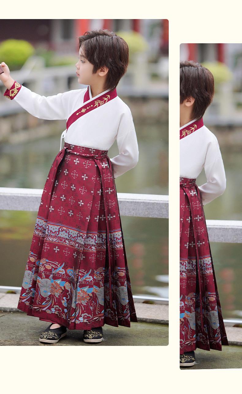 Traje de falda con cara de caballo para niños Hanfu 2025, nuevo traje Guoxue Tang para niños, libro de estilo chino, disfraz antiguo para niños, disfraz de actuación