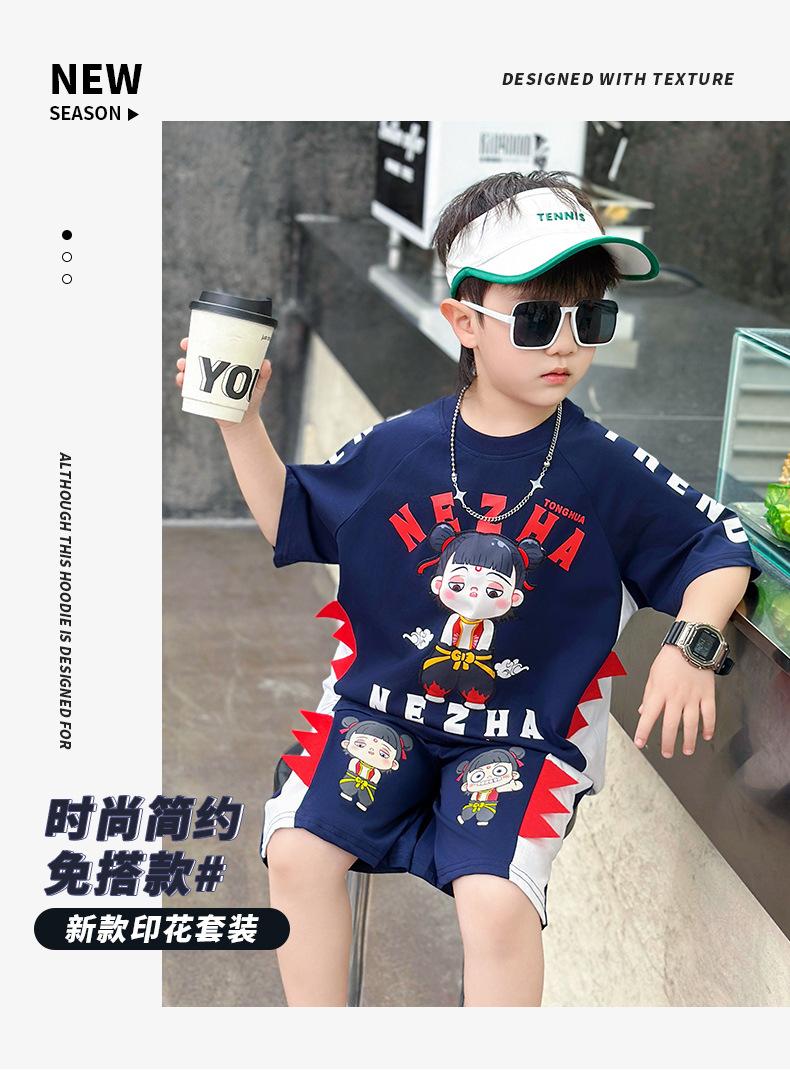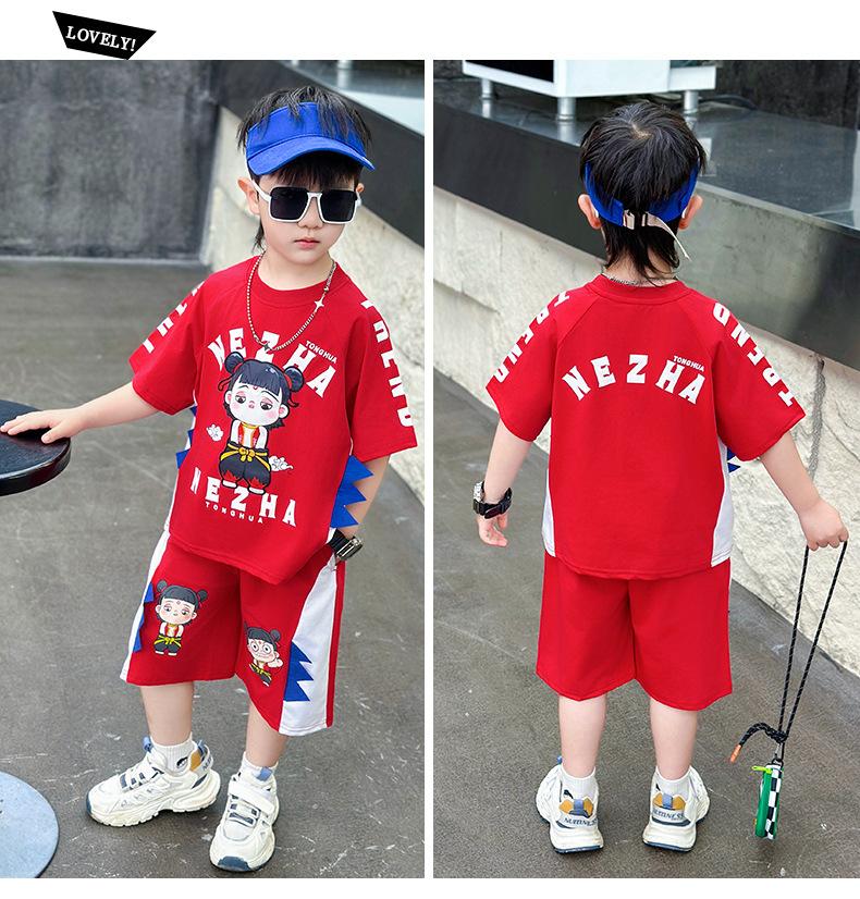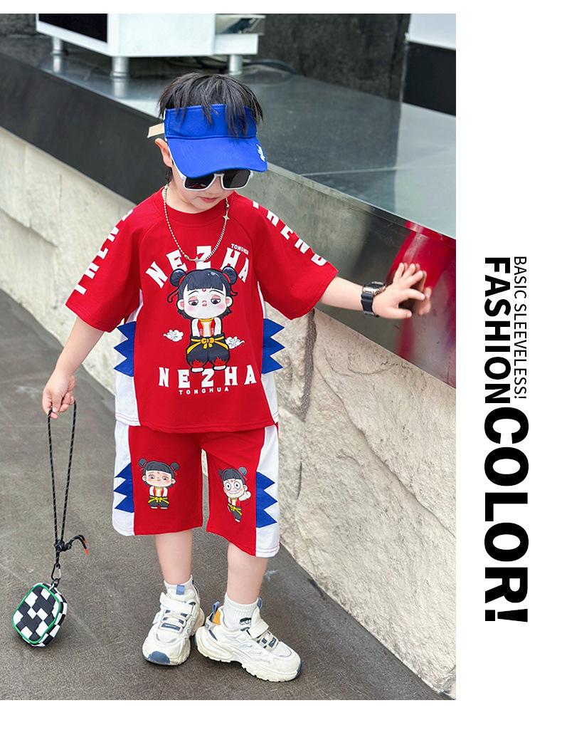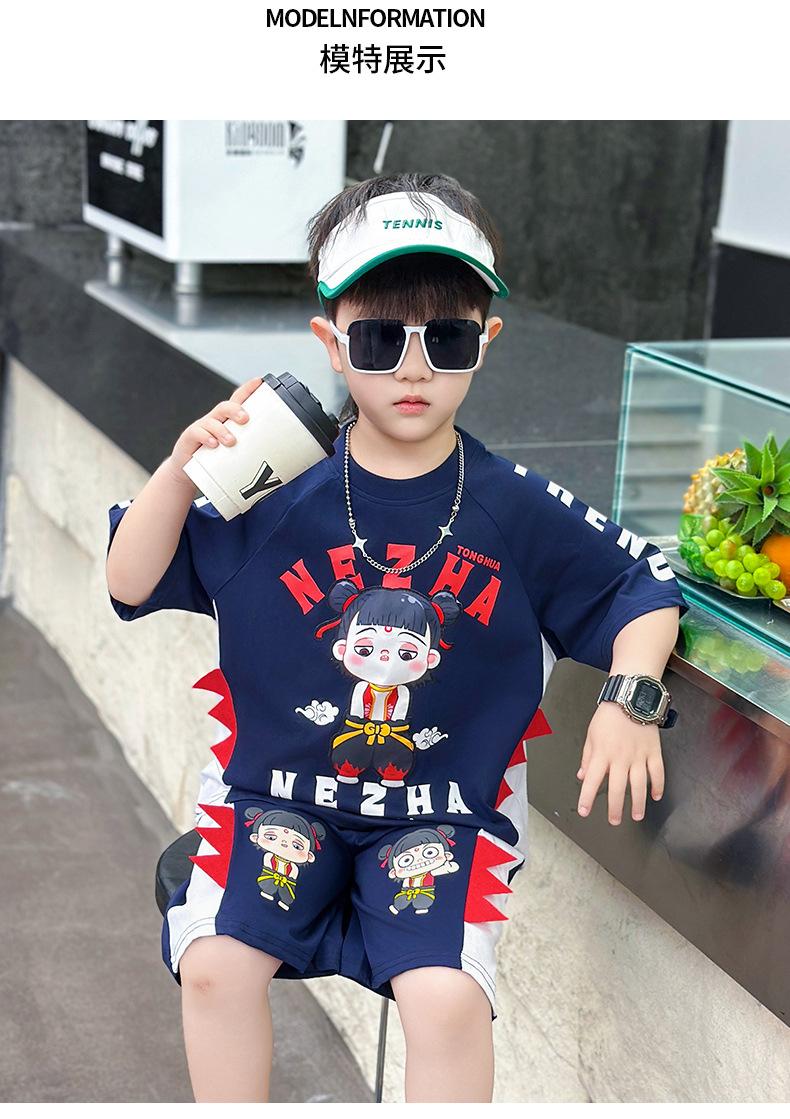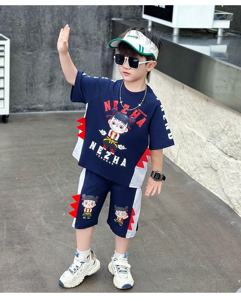 Conjunto de Verano para Niños 2025 Nuevo Ropa Elegante y Moderna de Manga Corta para Niños Bebé Verano Iluminación Ropa de Nezha