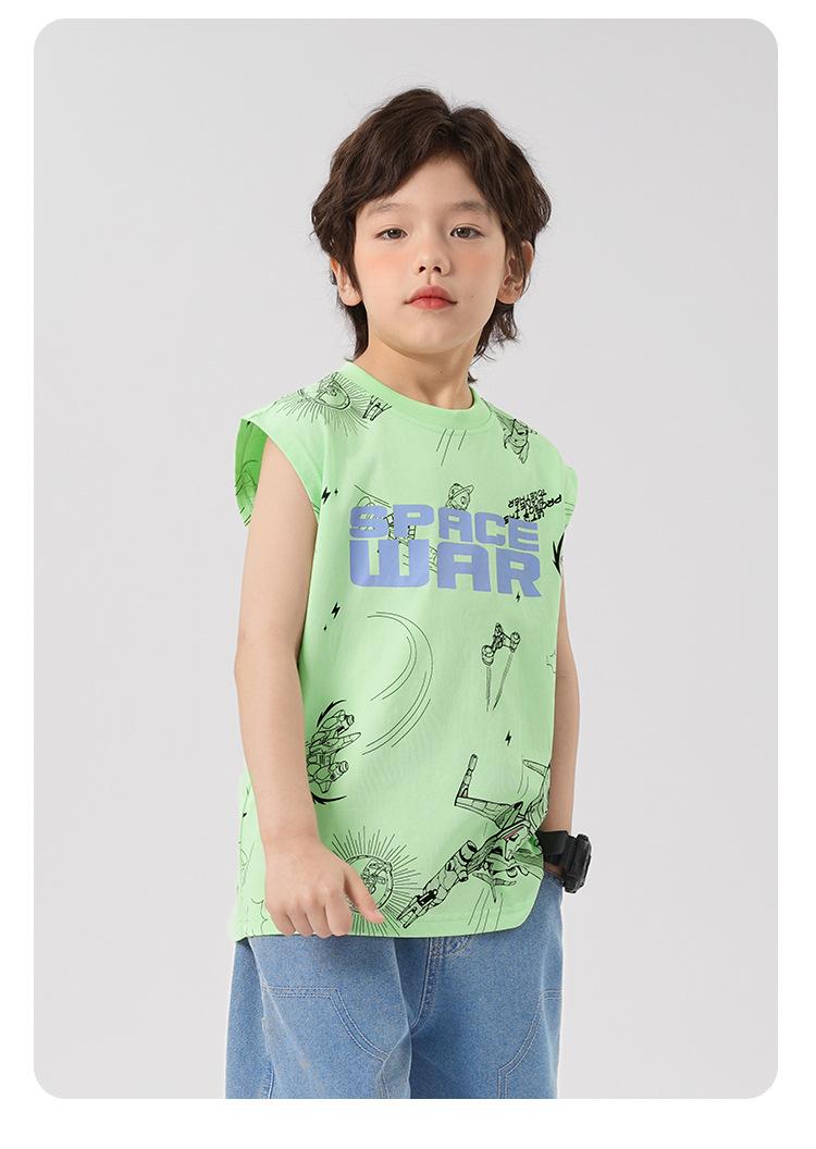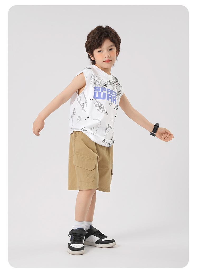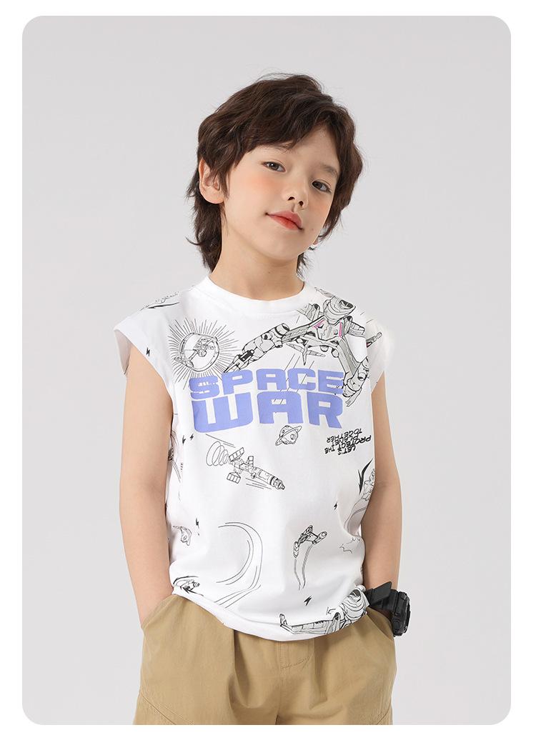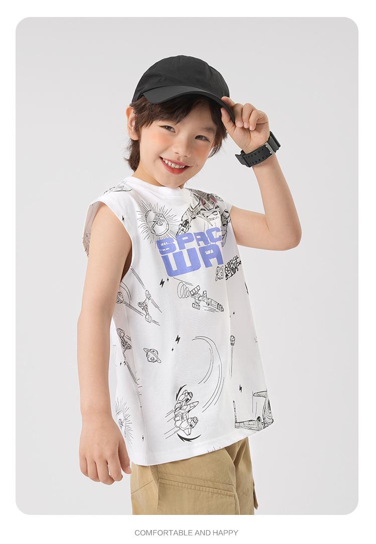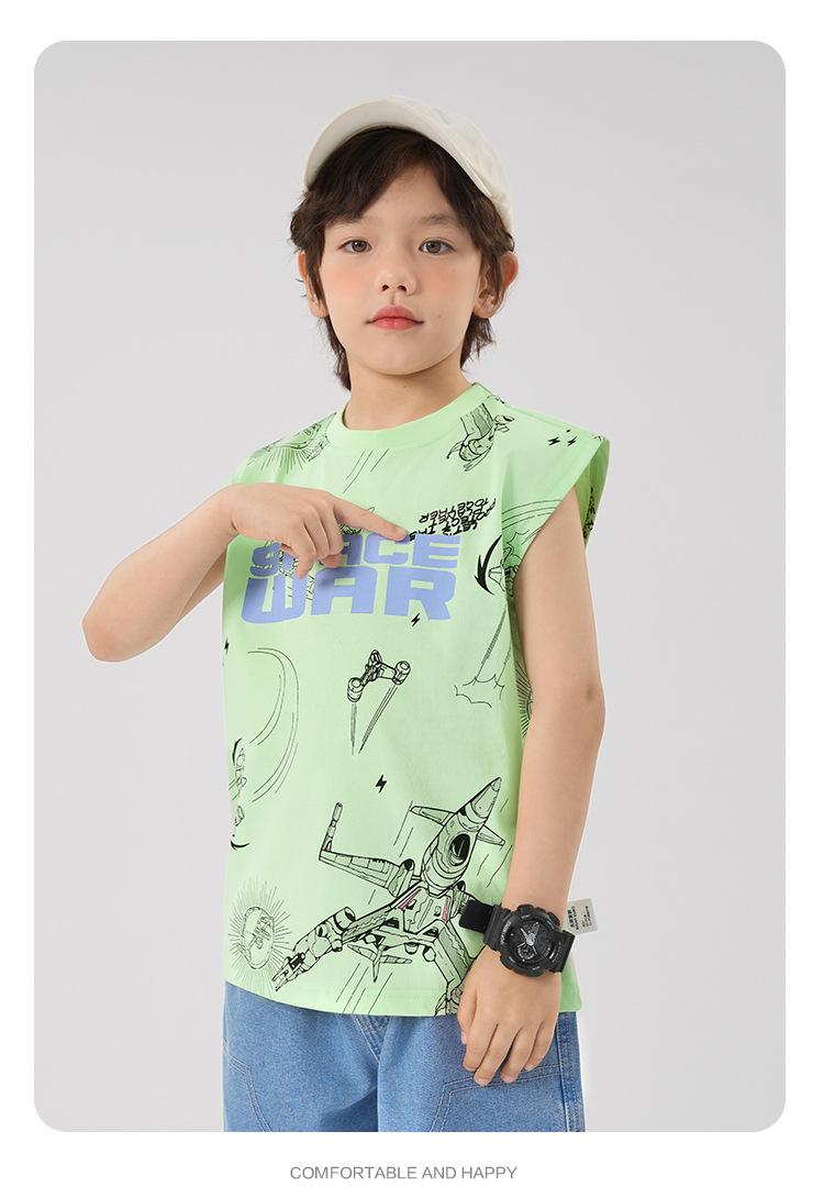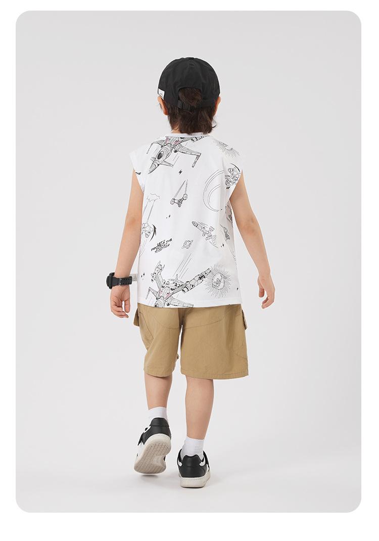 Chaleco estampado sin mangas para niño Ropa de verano 2025 Nuevo estilo de verano Tops para niños pequeños, medianos y grandes Ropa infantil de tendencia