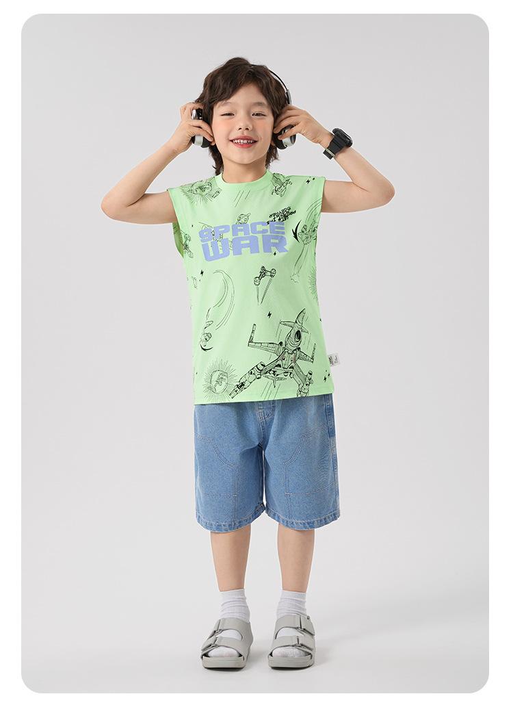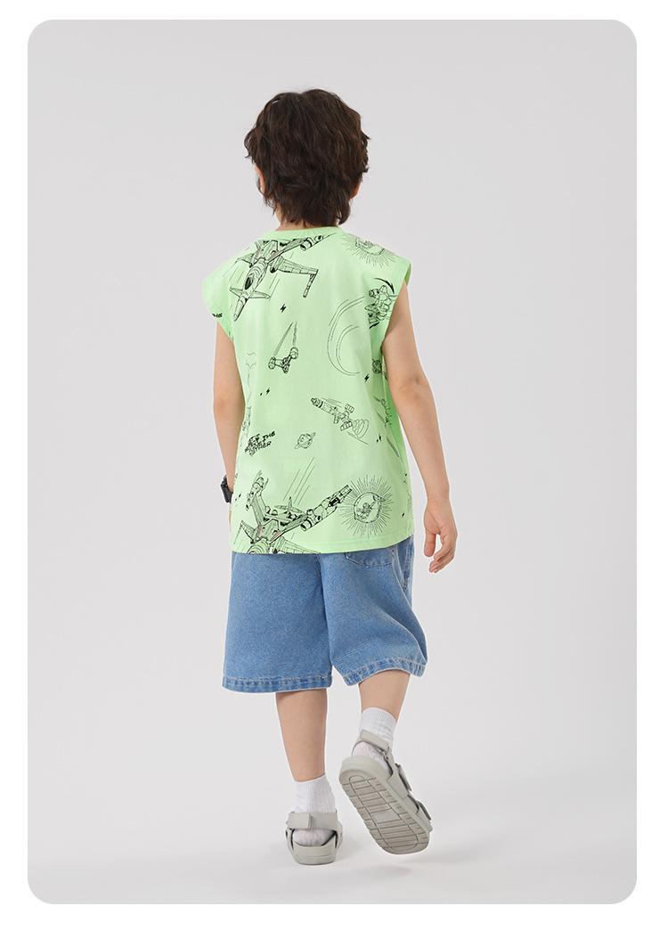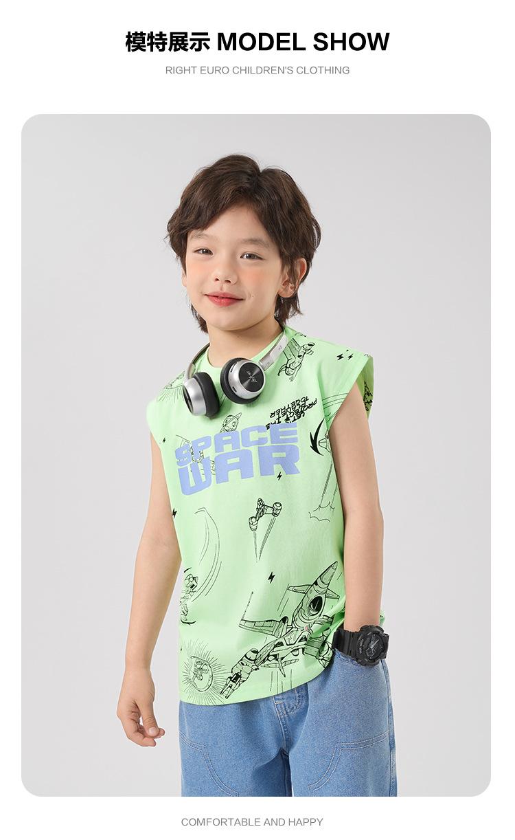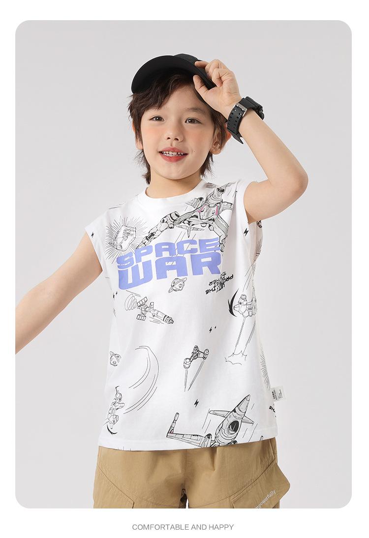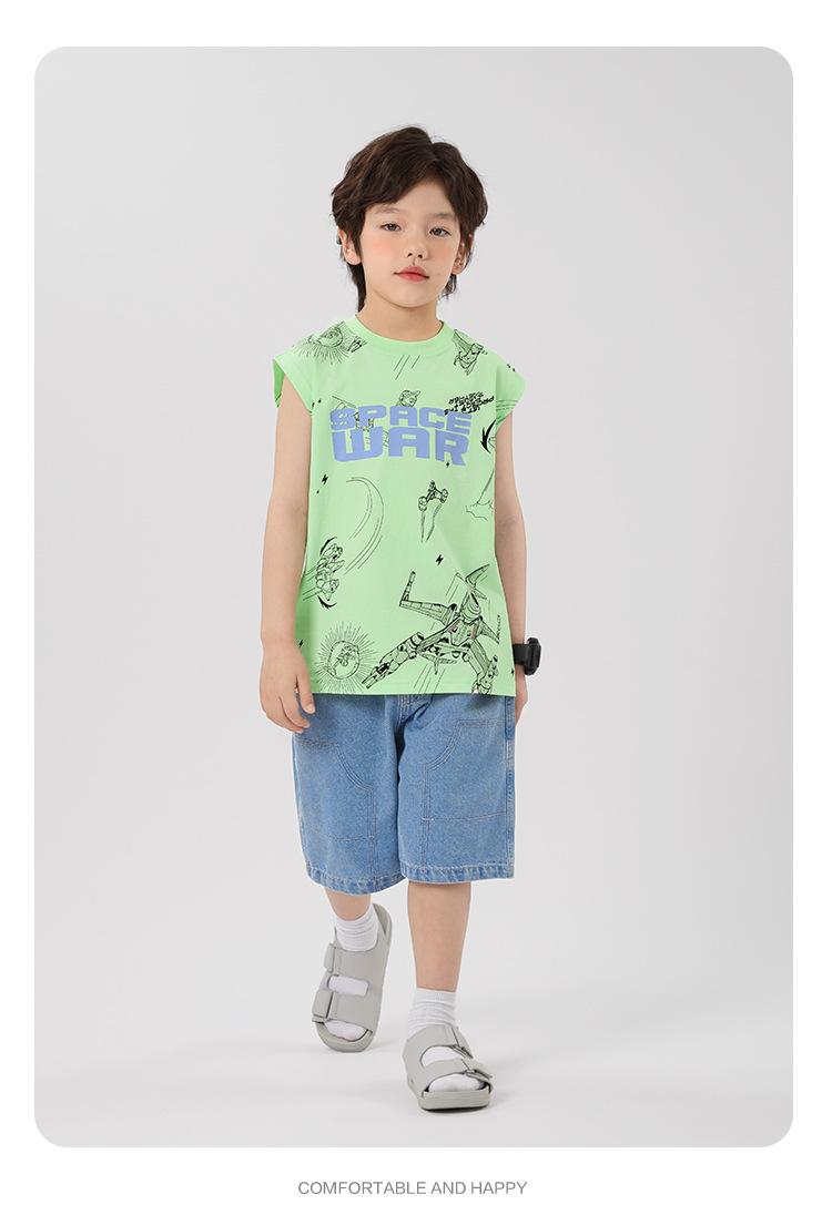 Chaleco estampado sin mangas para niño Ropa de verano 2025 Nuevo estilo de verano Tops para niños pequeños, medianos y grandes Ropa infantil de tendencia