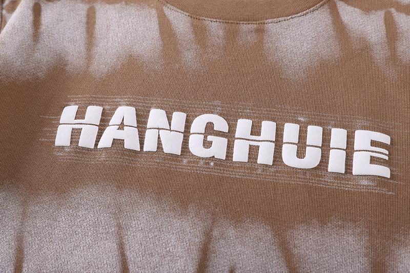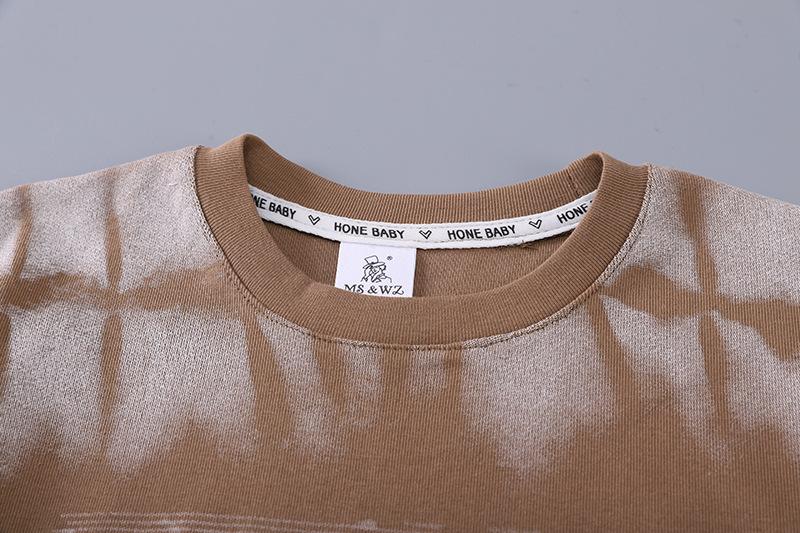Brown all-over printed english crew neck shirt with washed cotton short-sleeved suit, White all-over printed e...