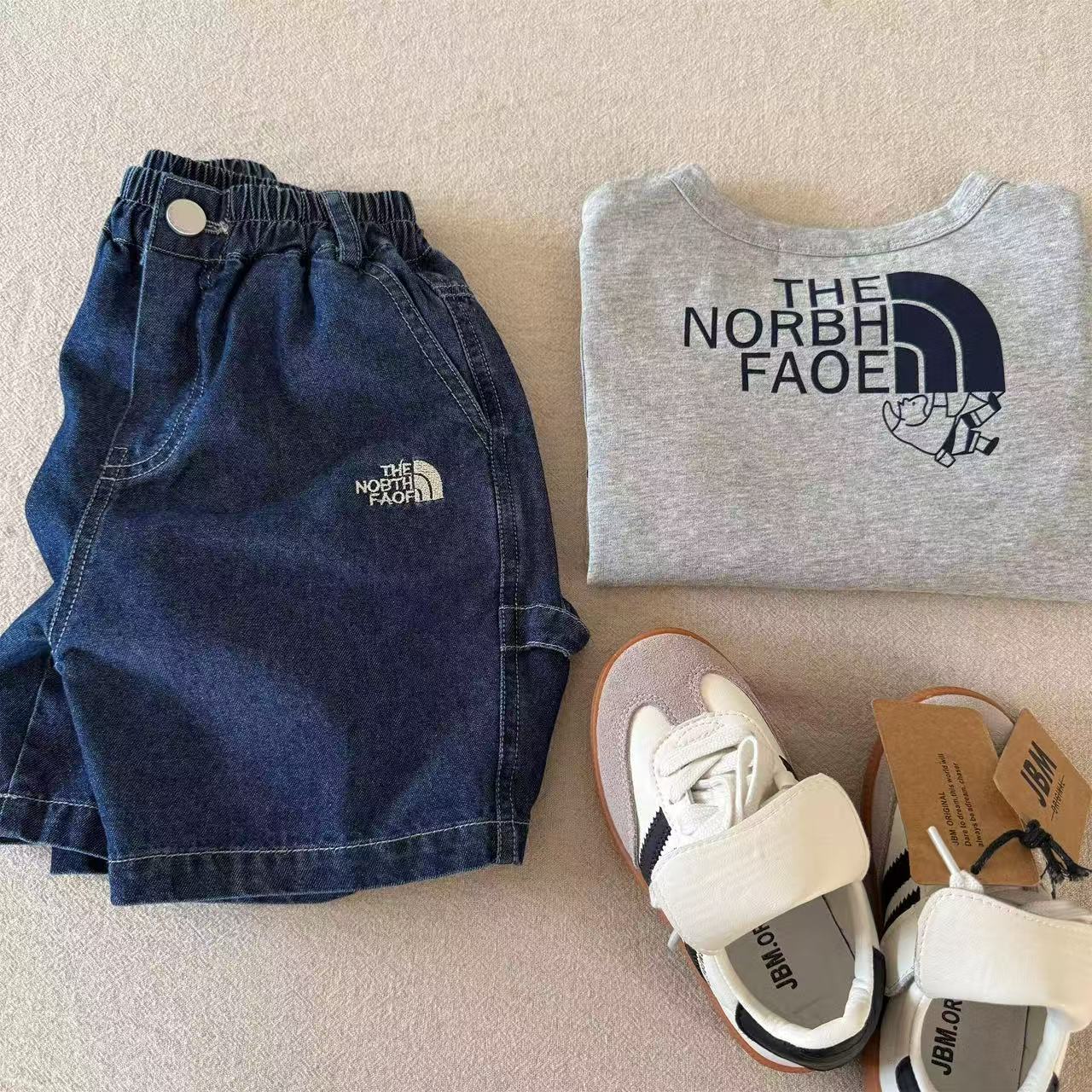 Jeans para niños 2025 Verano Marca Japonesa de Moda Bolsillo con Letra Pantalones con Grulla Shorts para Bebé y Niño de Estilo Occidental
