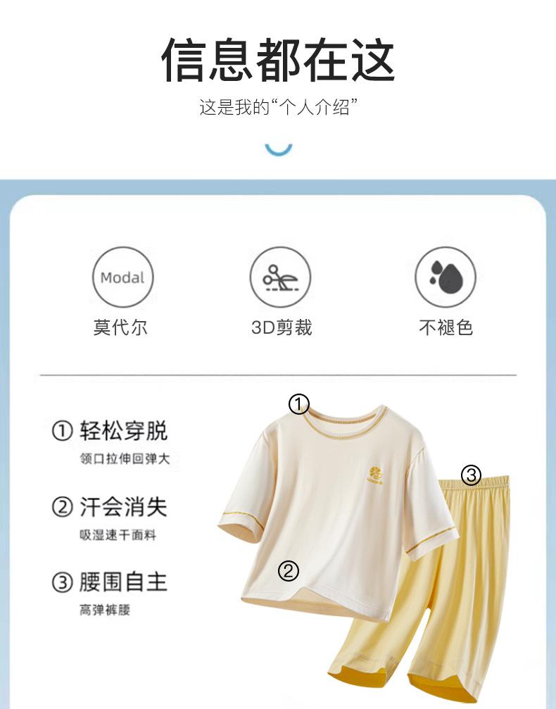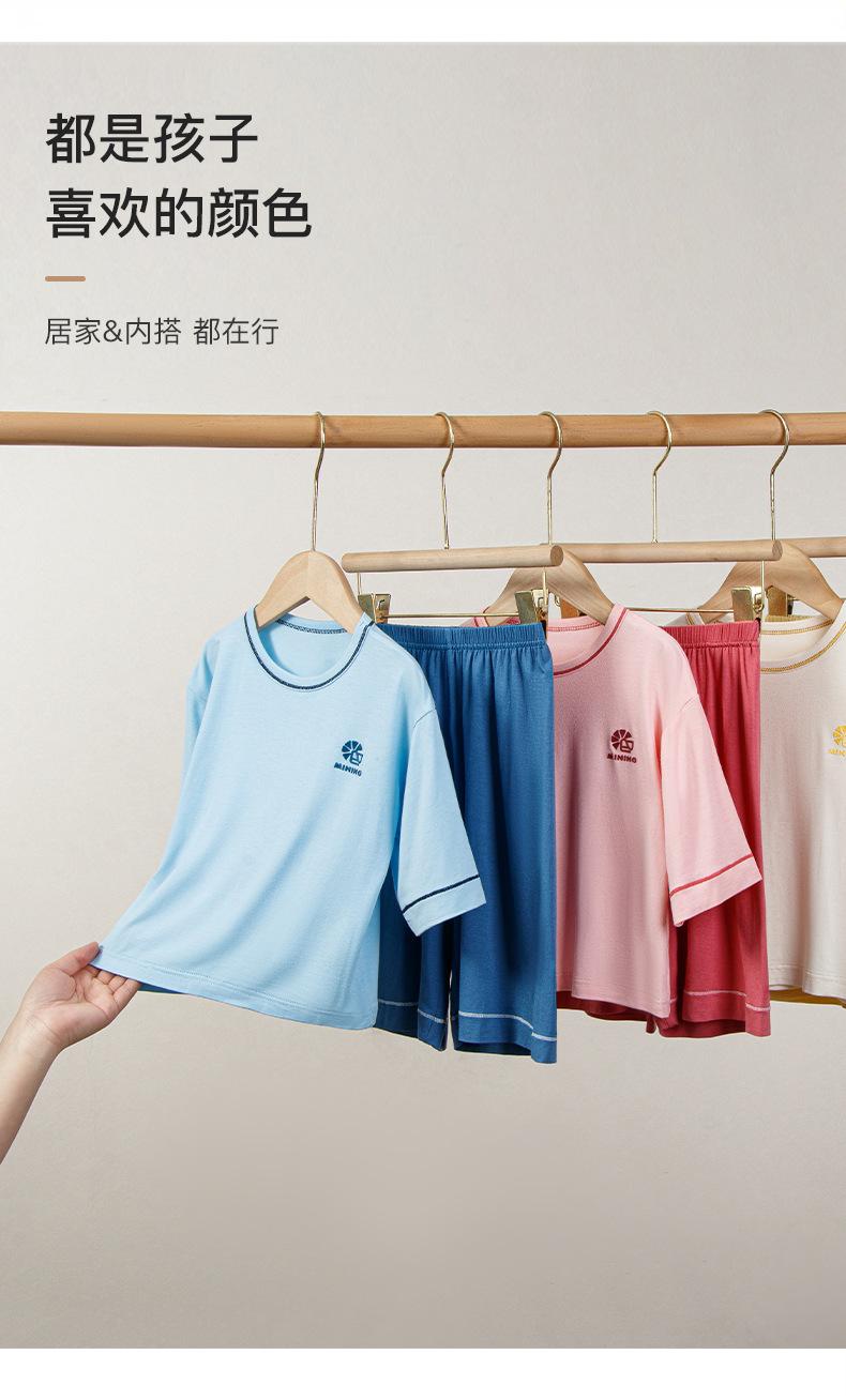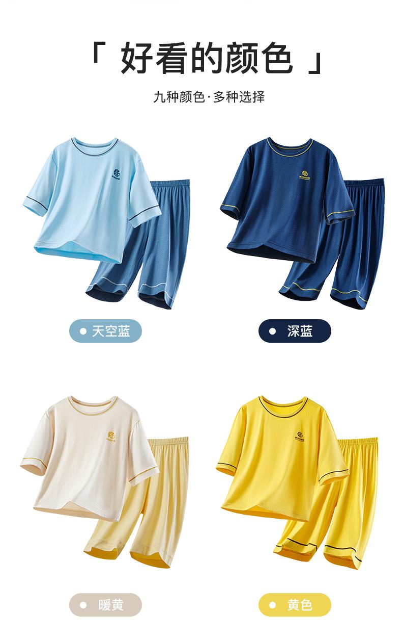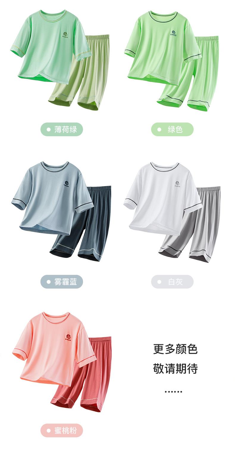 Pijamas para niños, Trajes de manga tres cuartos de modal de verano para niños, Ropa de seda de hielo para niños grandes, Ropa de casa para bebés y niñas