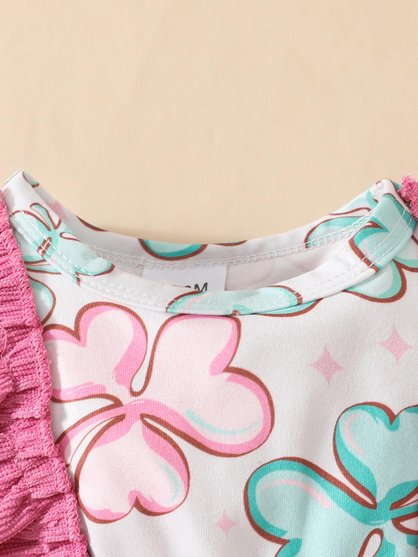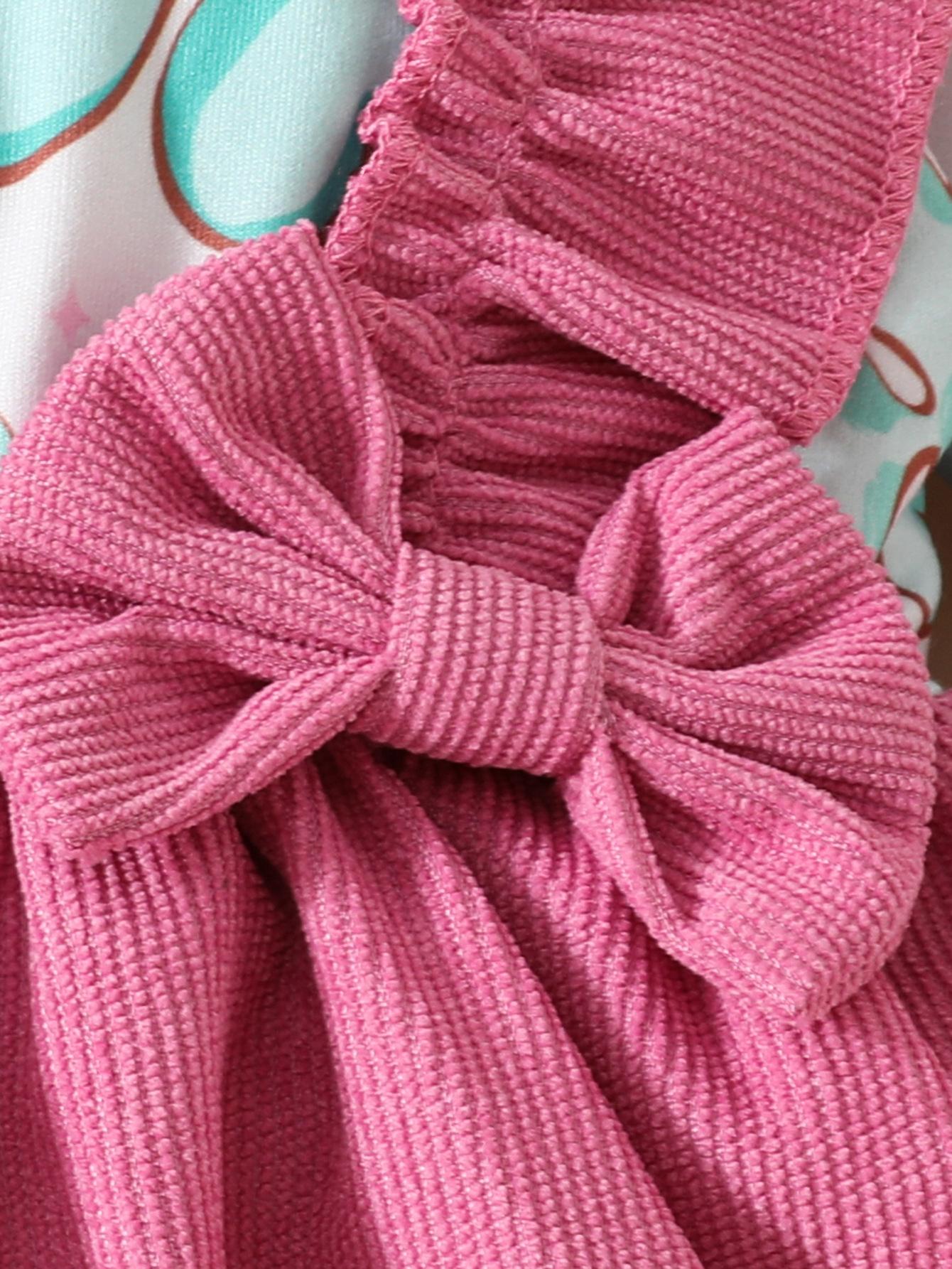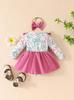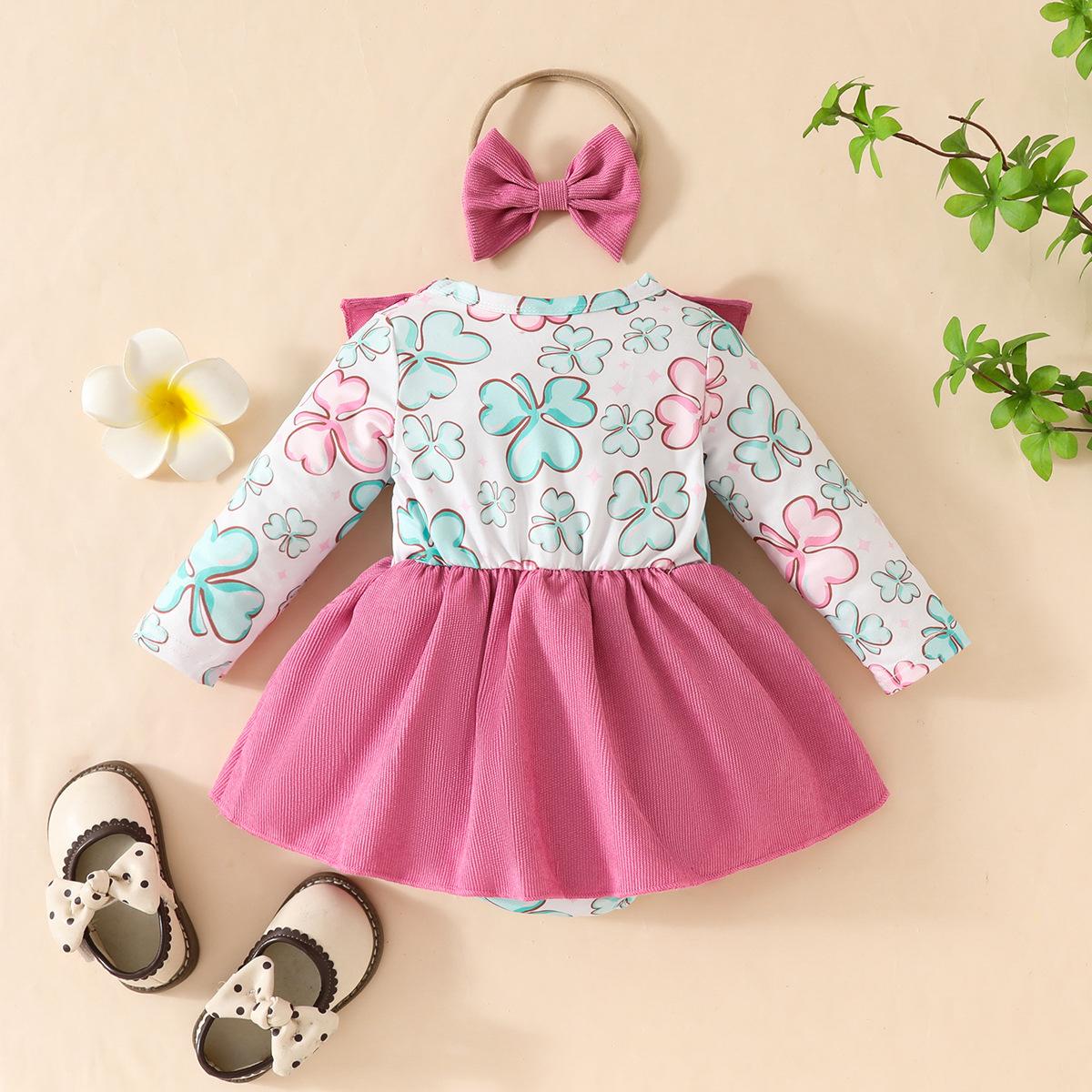 Bebé Niña Primavera Verano Nuevo Rosa Azul Trébol Infantil Manga Larga Lazo Vestido Lindo para Niños Moda