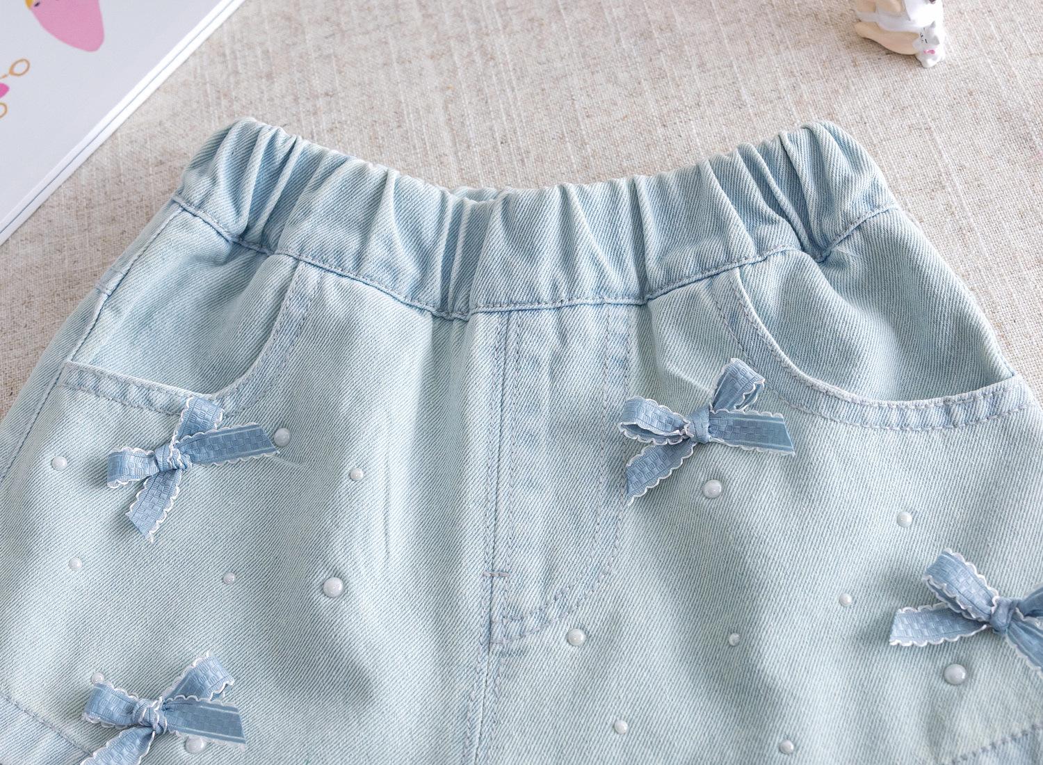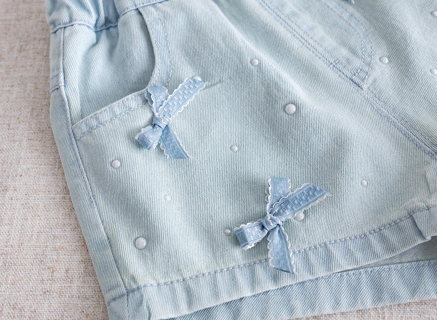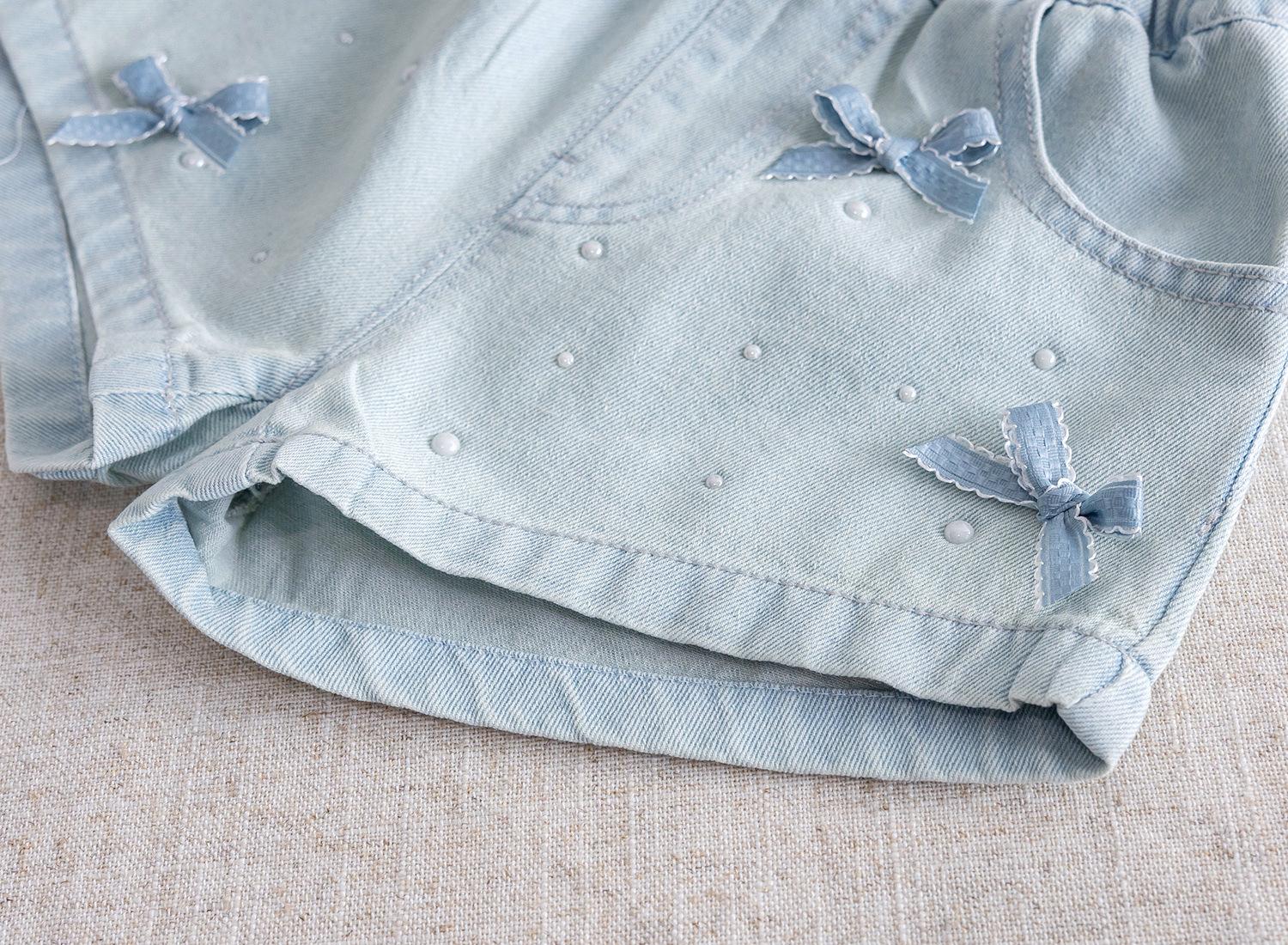 Pantalones cortos vaqueros para niñas, novedad de verano 2025, elegantes y a la moda, con lazo, combinables, para bebés y niños.