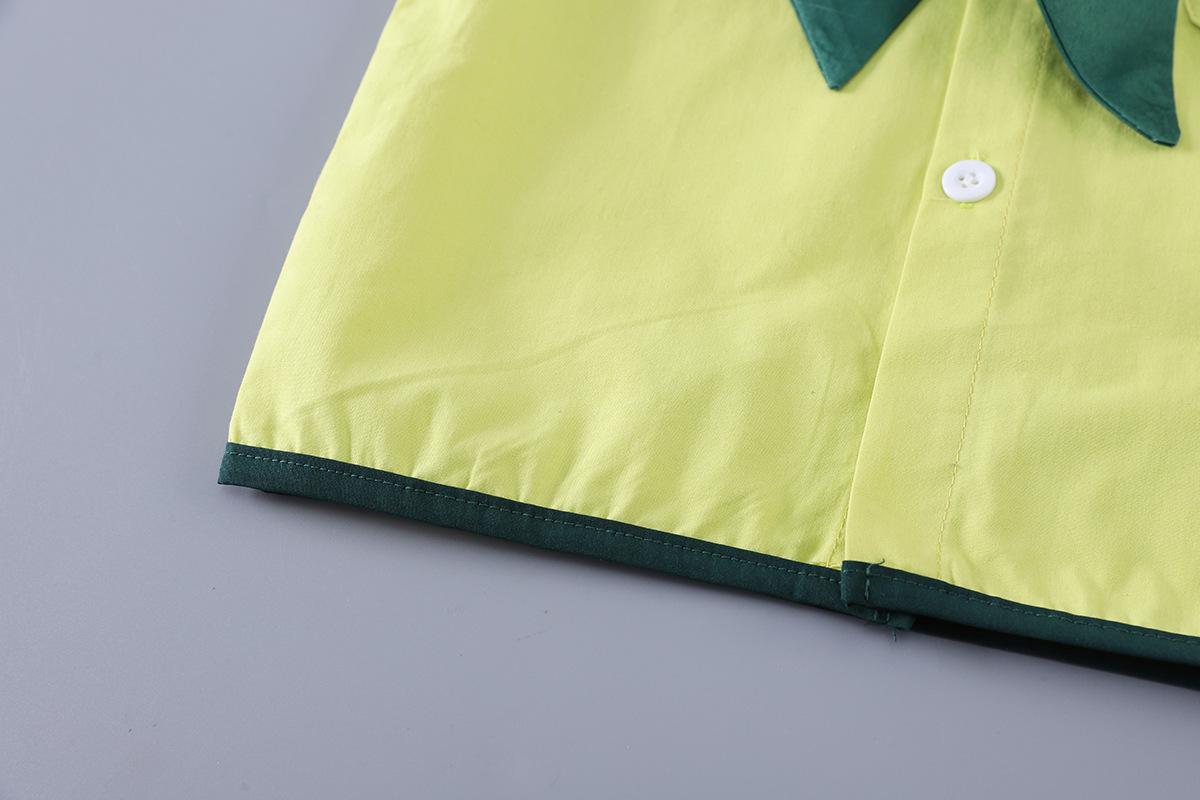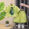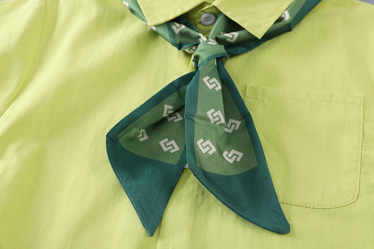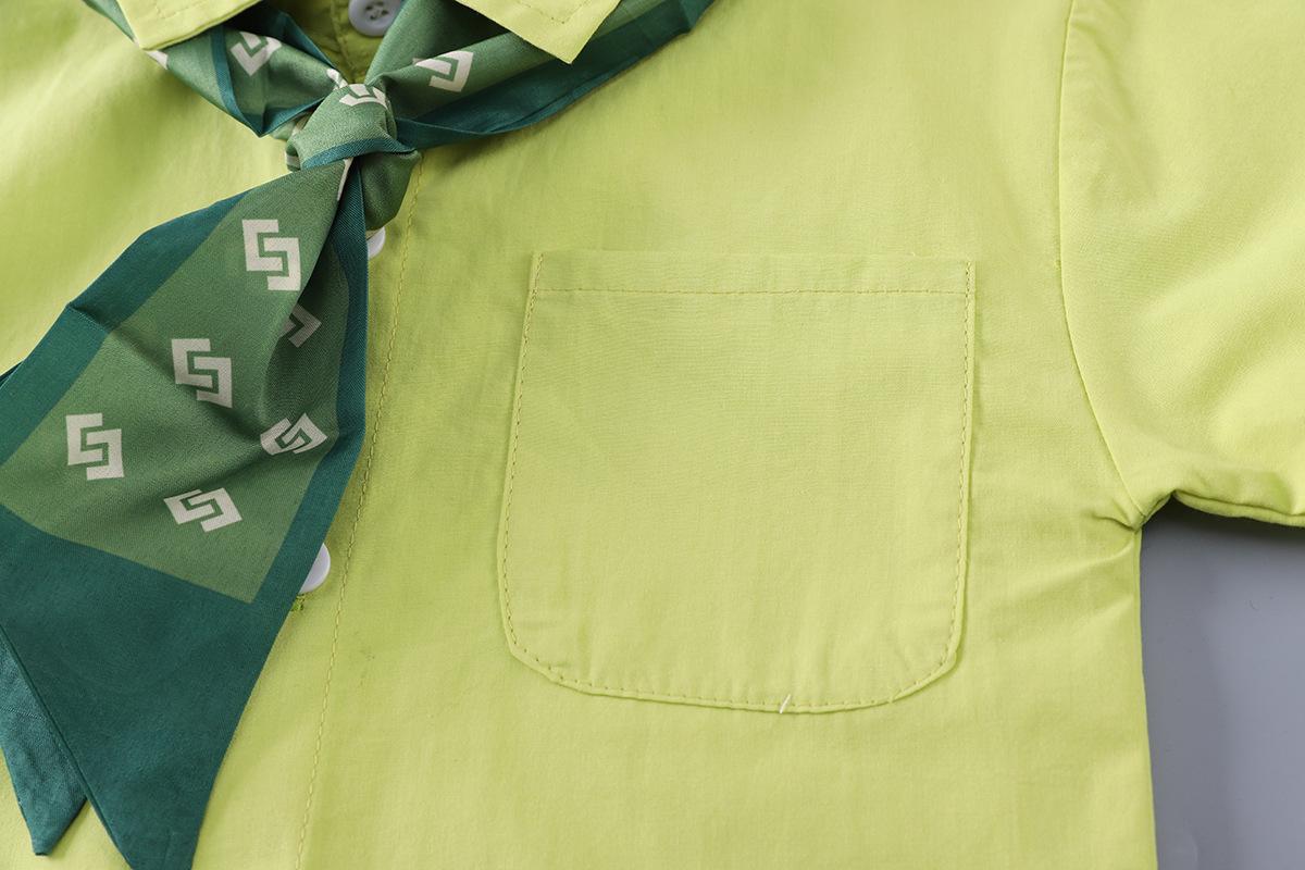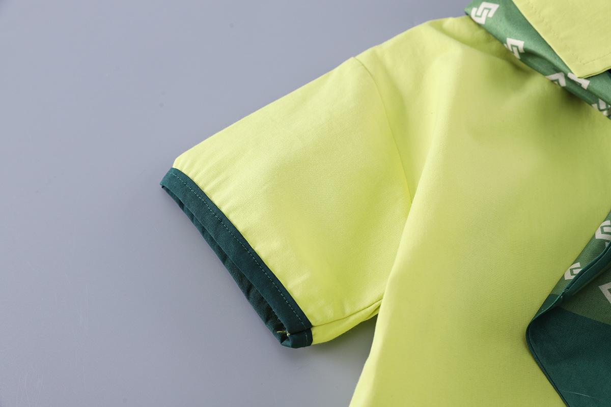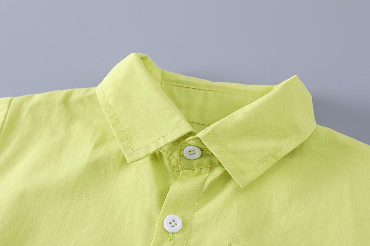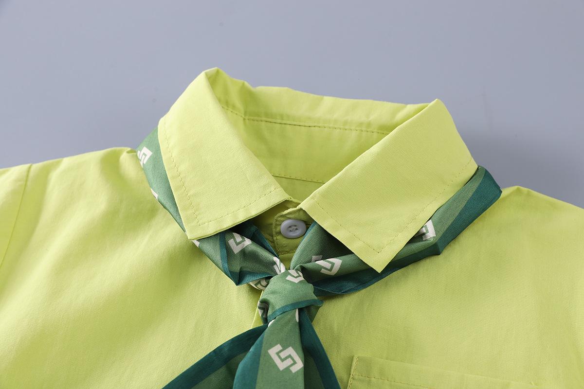 Blue xy25048 solid color shirt short-sleeved two-piece set, Green xy25048 solid color shirt short-sleeved two-piece set